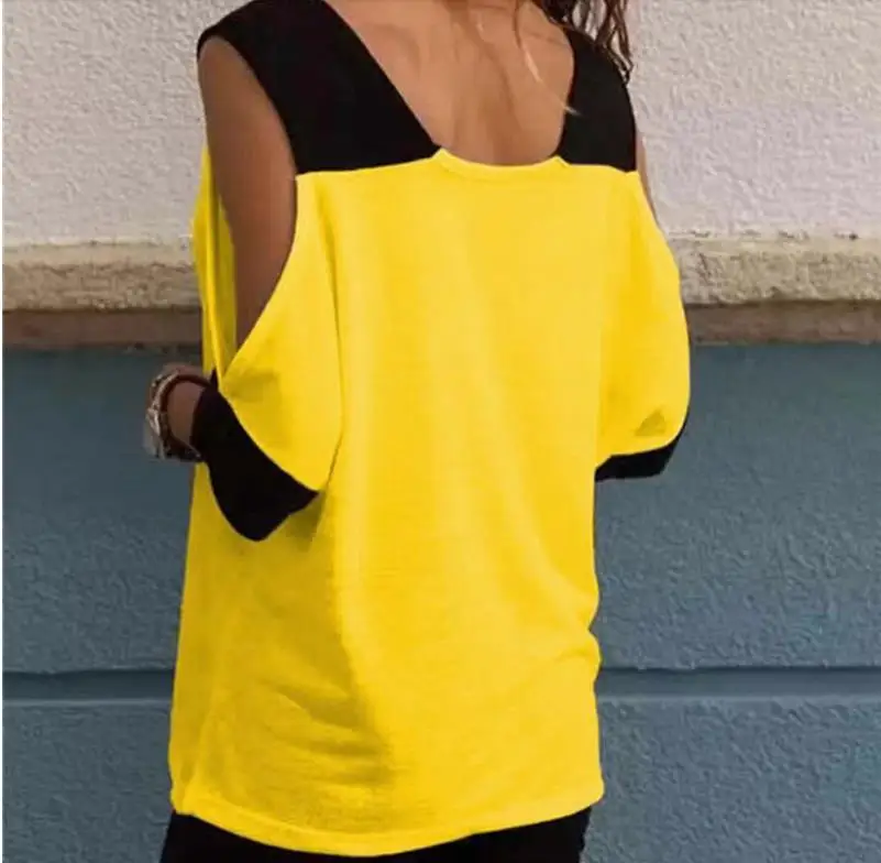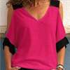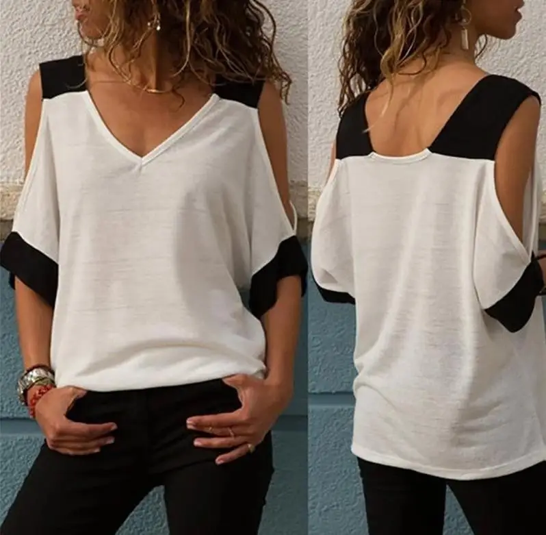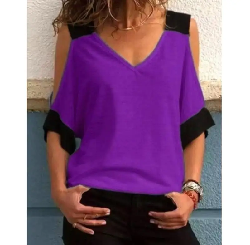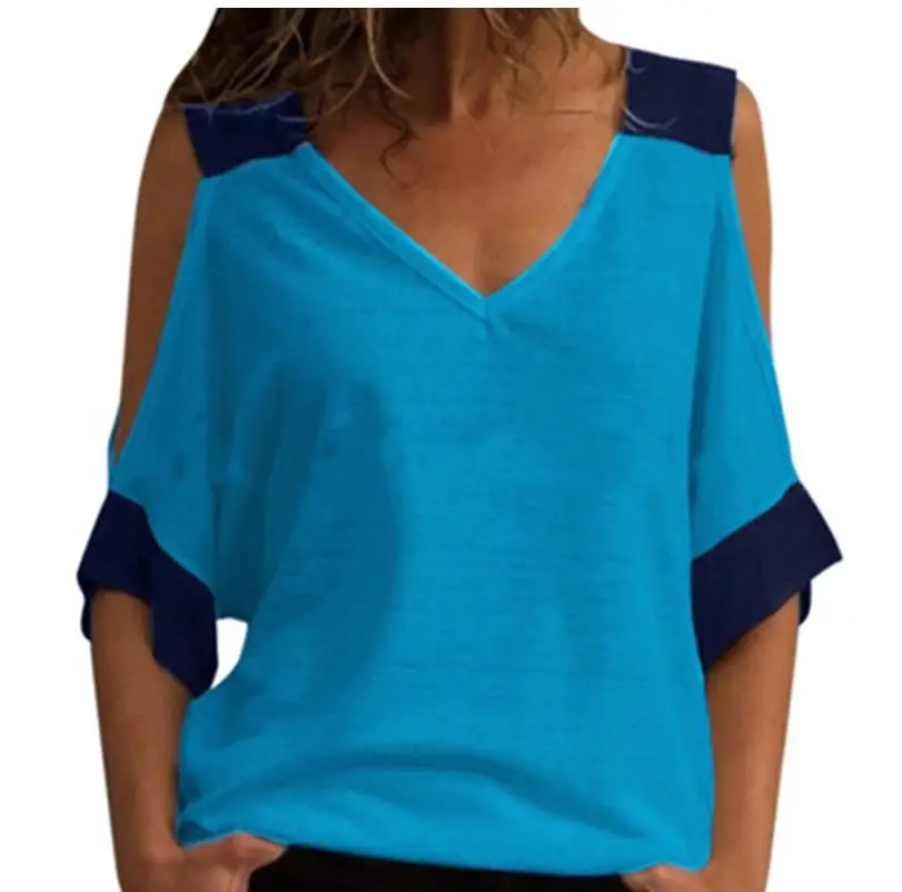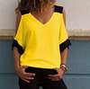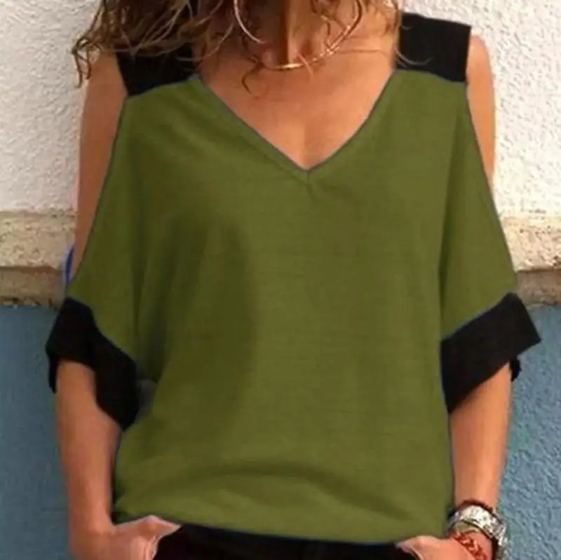 Women Blouse Patchwork Cold Shoulder shirt 5XL Plus Size Tops V-Neck Half Sleeve Female Tee Shirt Summer Casual Shirt