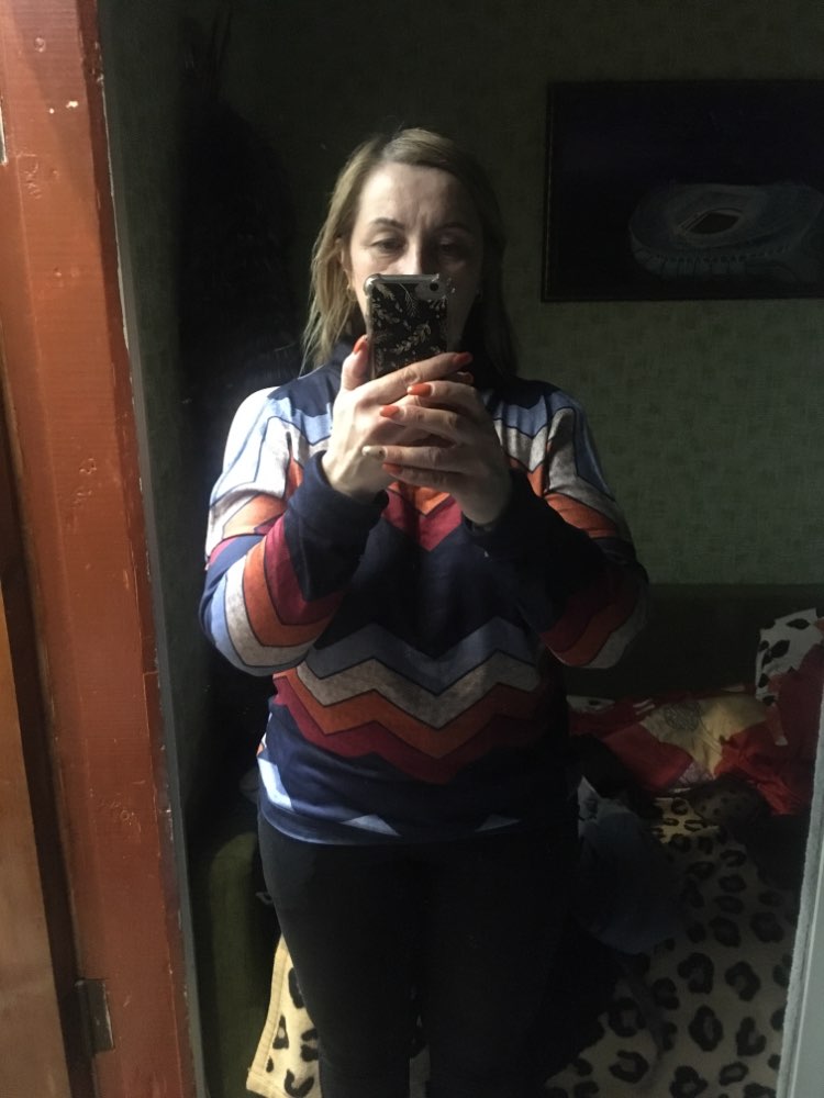 Delivery in time, quality at the level. On me not there is smart as in the picture. Almost a turtleneck with slits on the sleeves. I will definitely wear it.) thanks to the store.