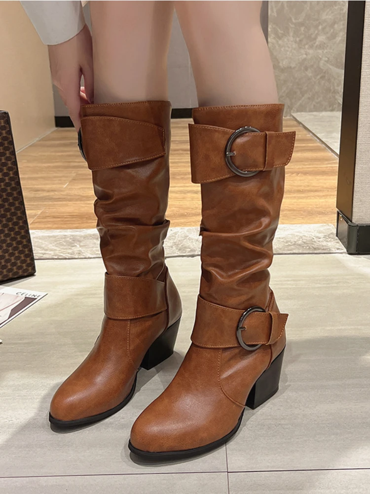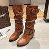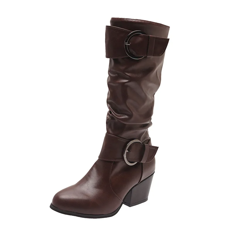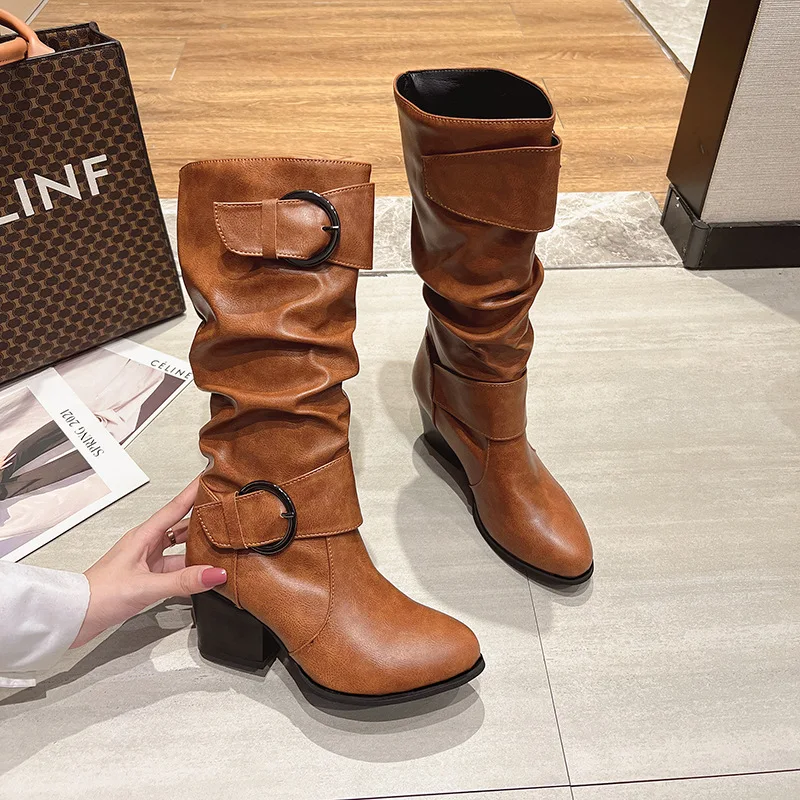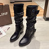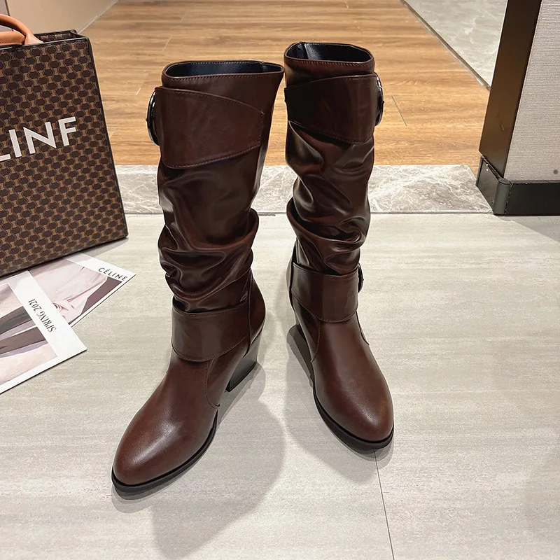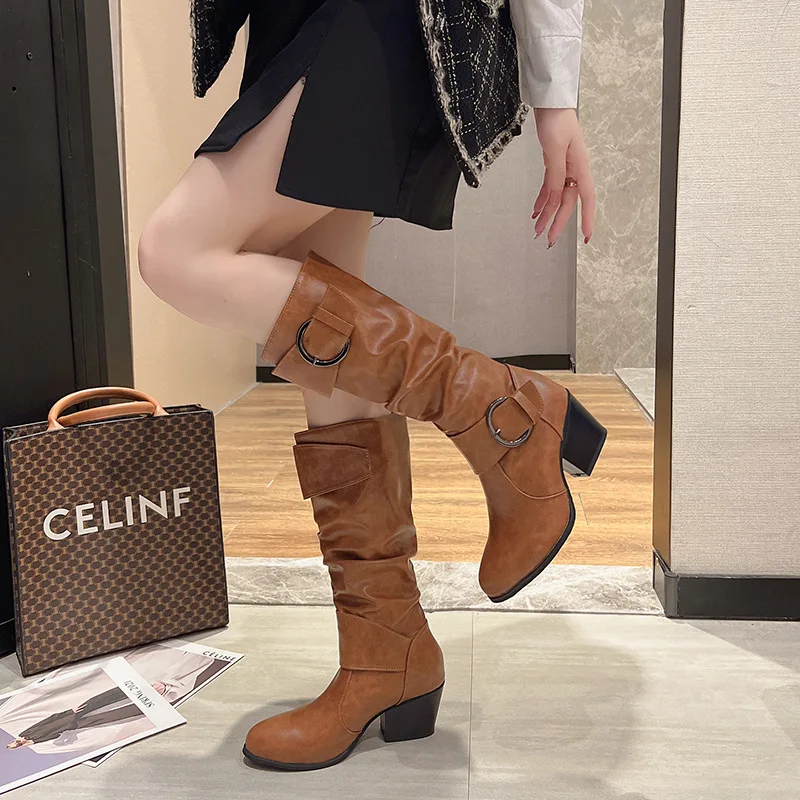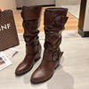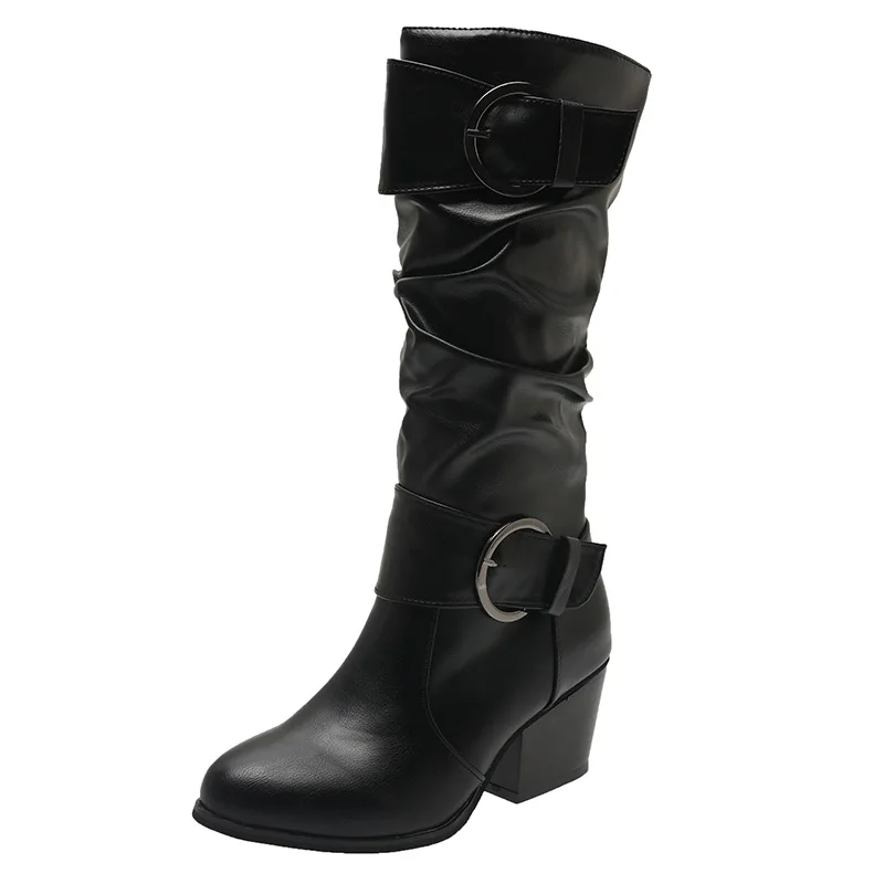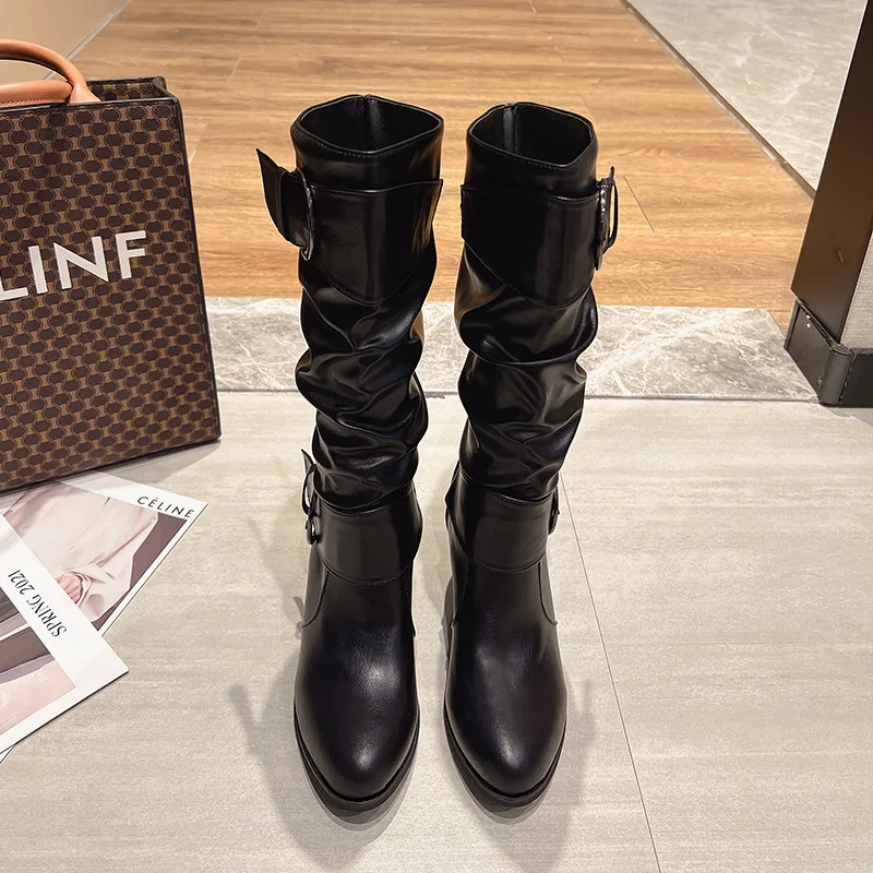 Women Boots Fashion Autumn PU Leather Boots Botas Female Stretch Black Roma Knee-Length Shoes Plus Size 35-43 Zapatos De Mujer