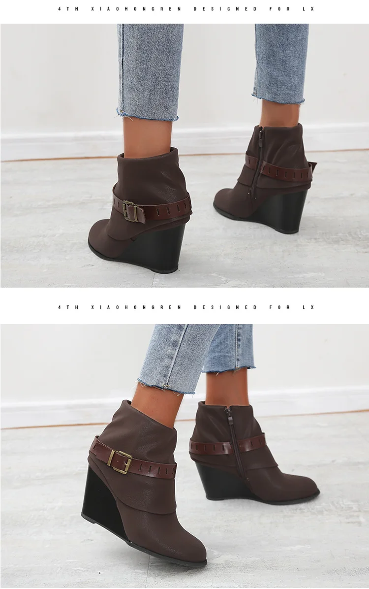 Women Boots Leather Ankle Boots Flat Shoes Autumn Winter Snow Boots Platform Zipper Punk Boots Ladies Shoes Botas Mujer 866