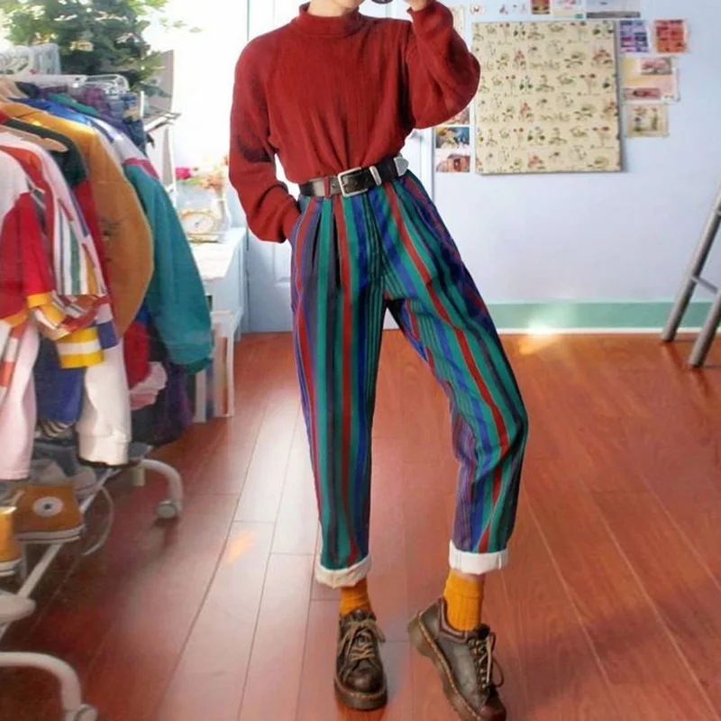Women Bottoms Pants Striped High Waist Pant SPring Autumn Streetwear Casual Y2k Pants Slim Sweatpants Loose Trousers 2021