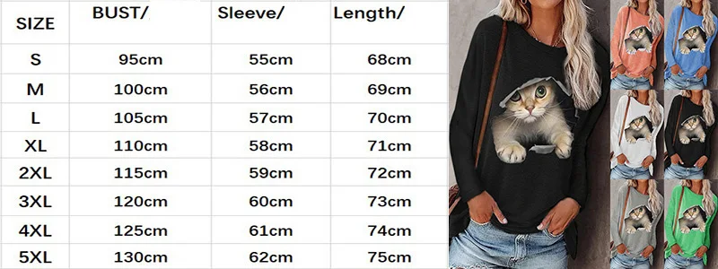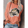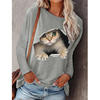 Women Casual Blouse 2021 Autumn Fashion Long-sleeved O-neck 3D Cat Face Print Ladies Office Shirts Vintage Loose Pullover Top