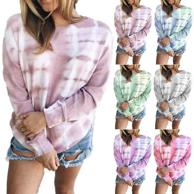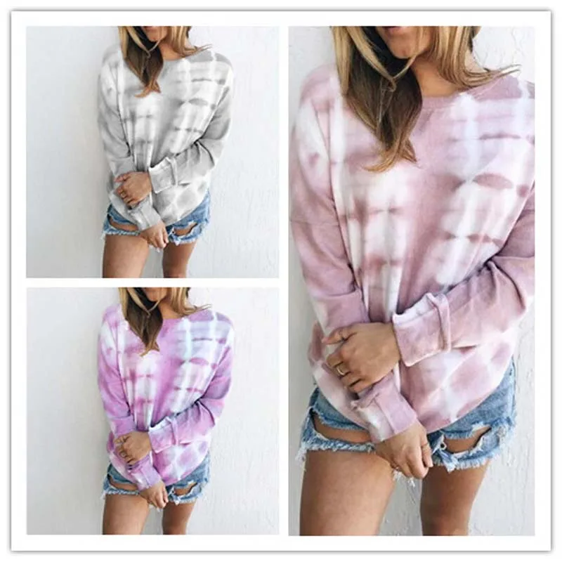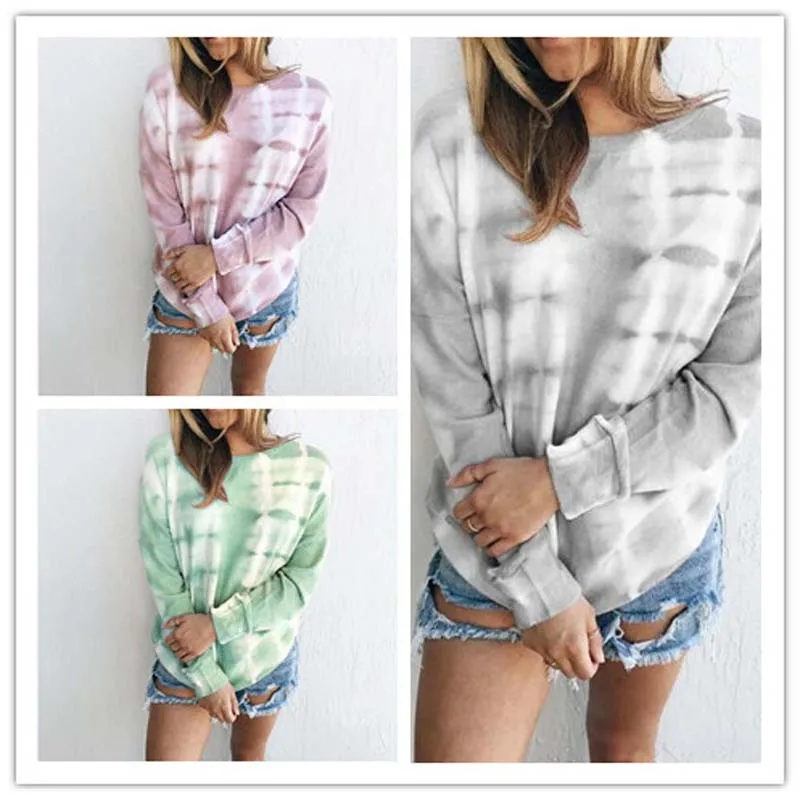 Women Casual Blouse 2021 Autumn Fashion Long-sleeved O-neck Gradient Print Lady Office Shirts Vintage Loose Pullover Street Top