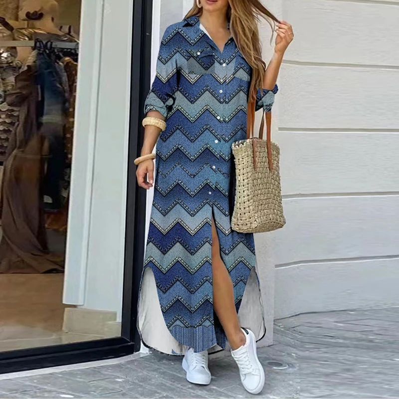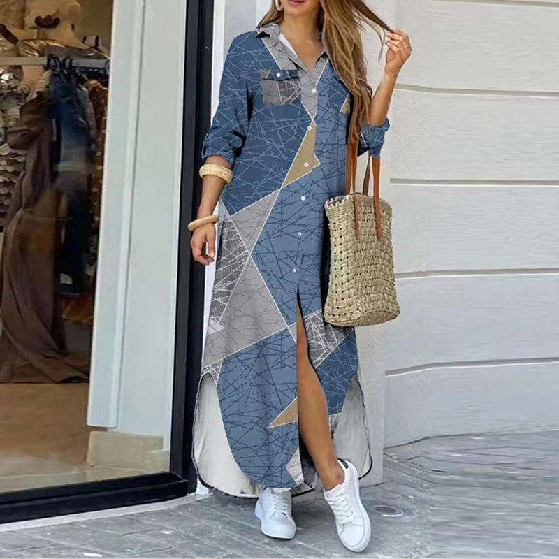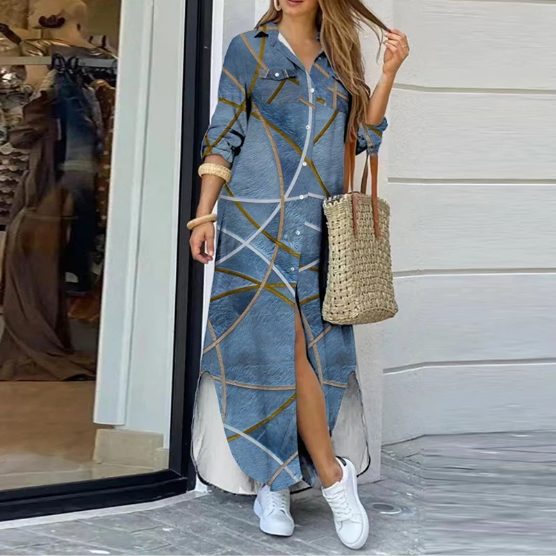 Women Casual Long Sleeve Shirt Dress Autumn Fashion Single Breasted Printing Party Dress Elegant Ladies Irregular Beach Vestidos