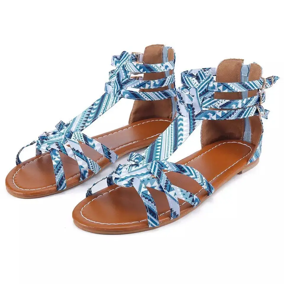 Women Casual Sandals Snake-print Leopard-print Designer Shoes Female Bohemia Colorful Summer Gladiator Flat Ankle Strap Sandals