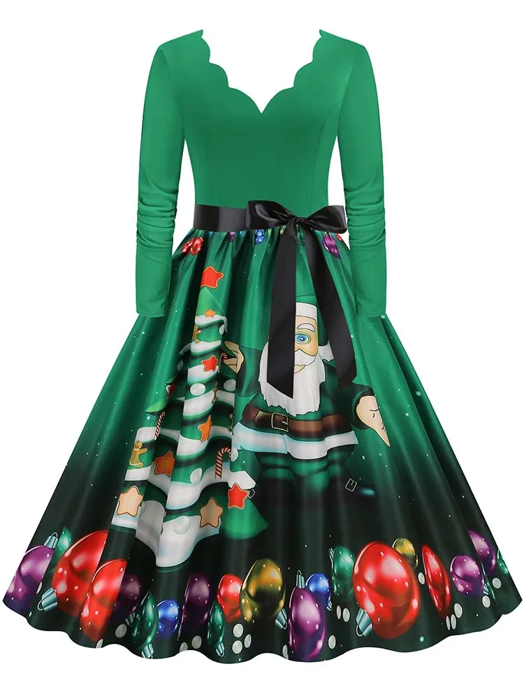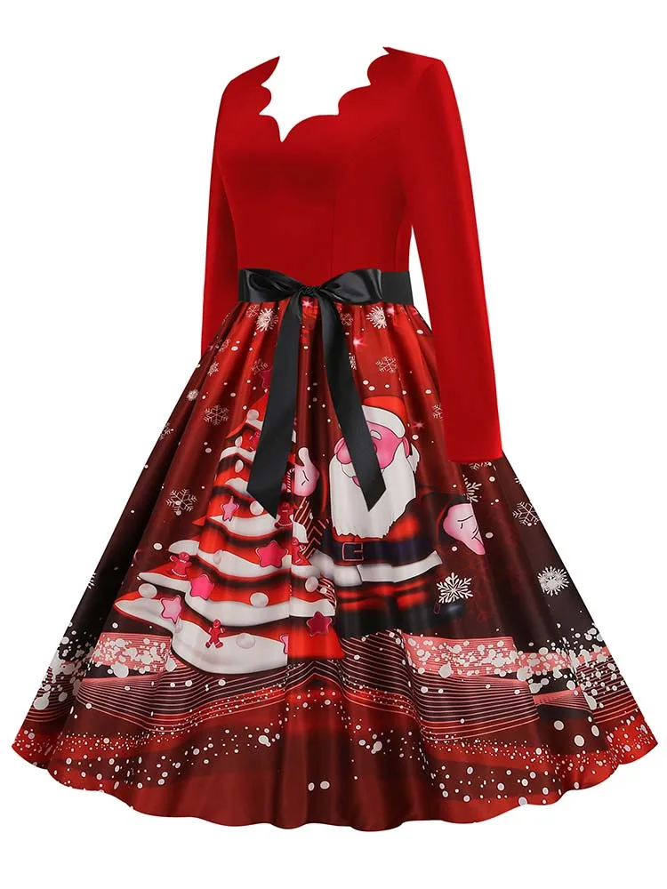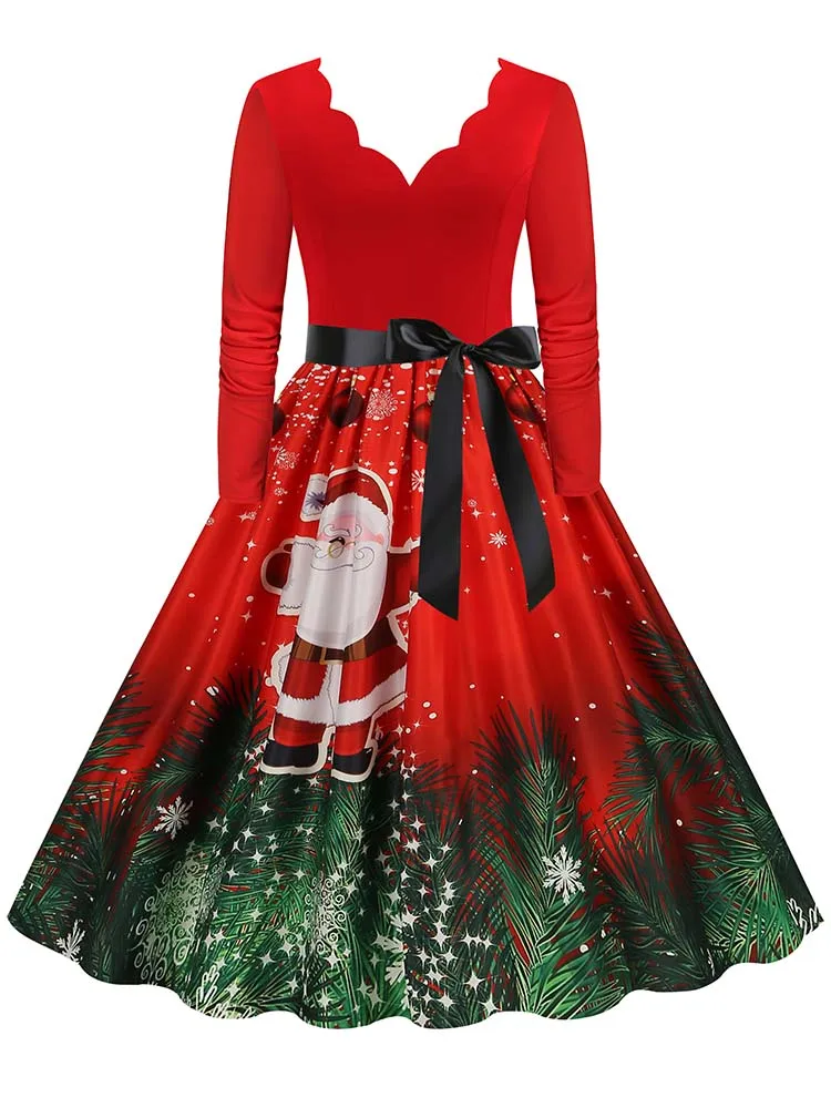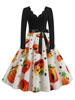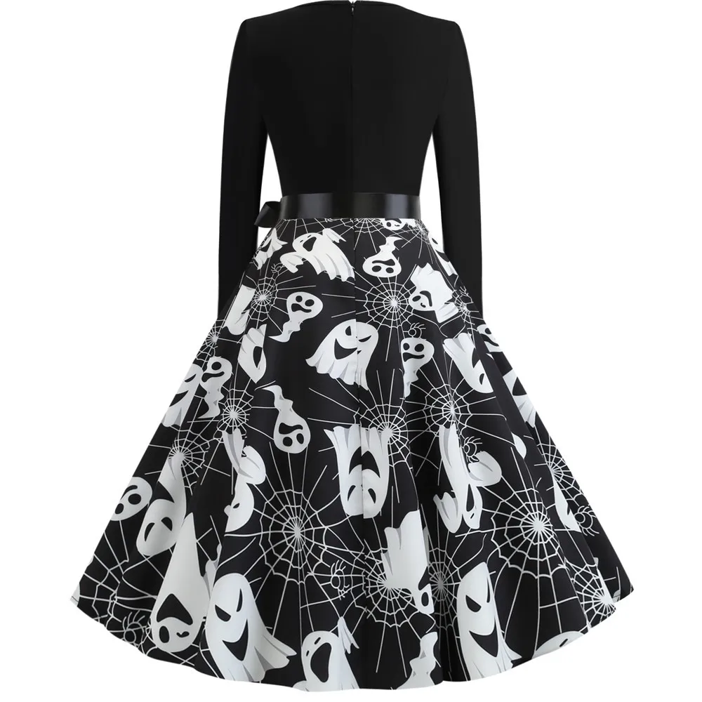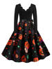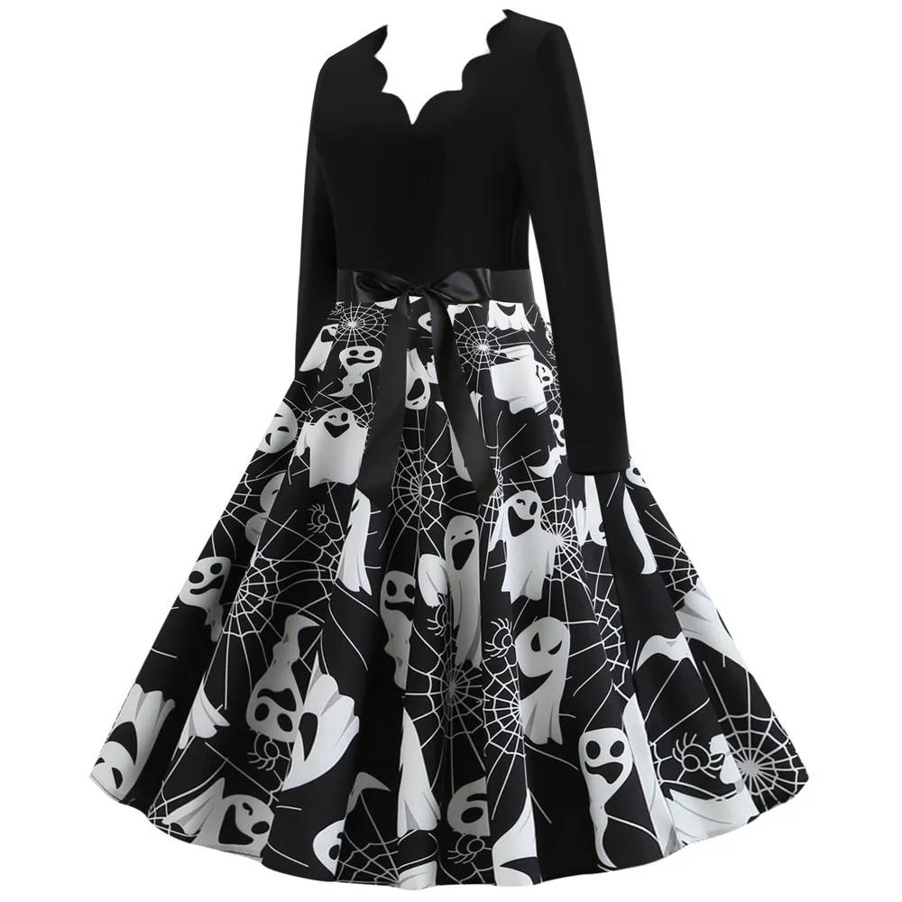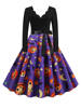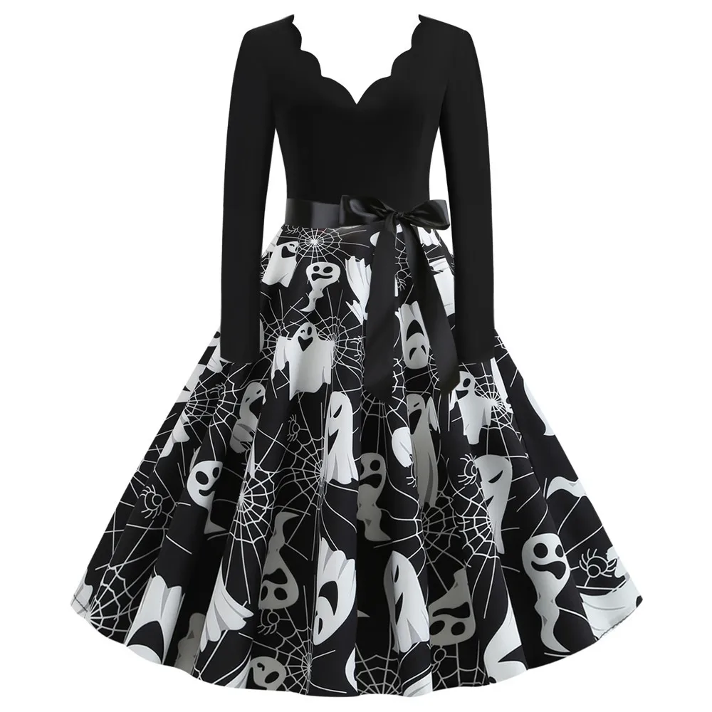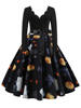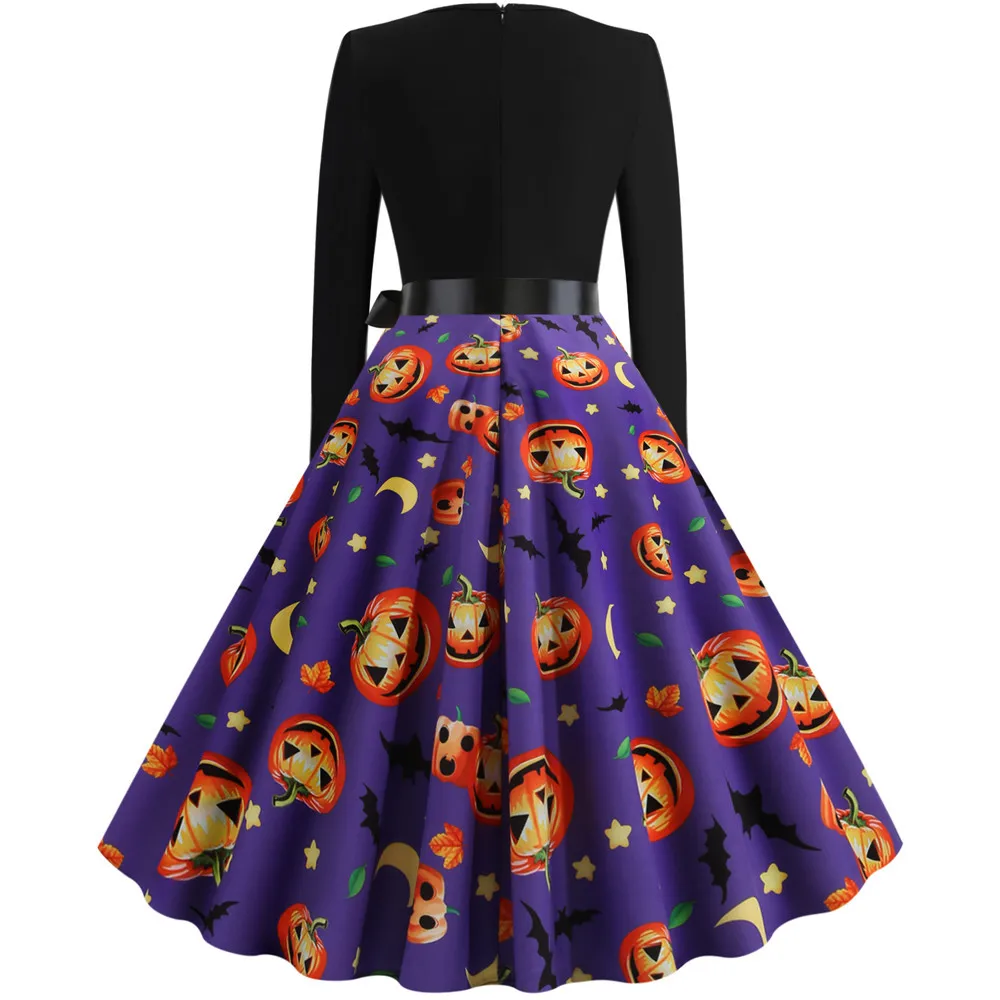 Women Christmas Dress Winter Long Sleeve V Neck Pumpkin Print Halloween Costume Party Dresses Casual Vintage S~3XL Clothing