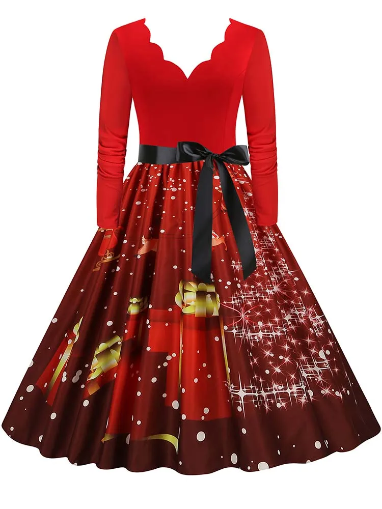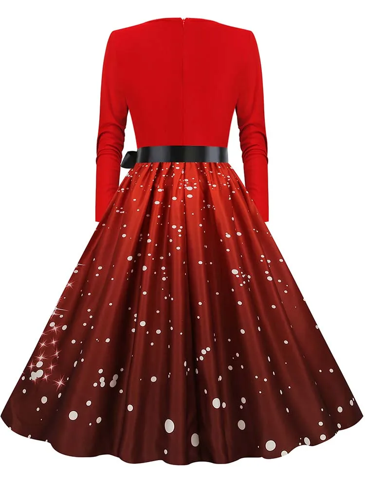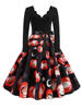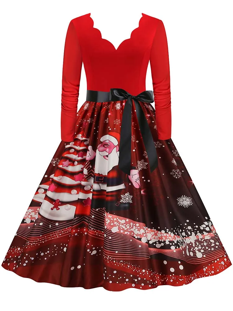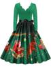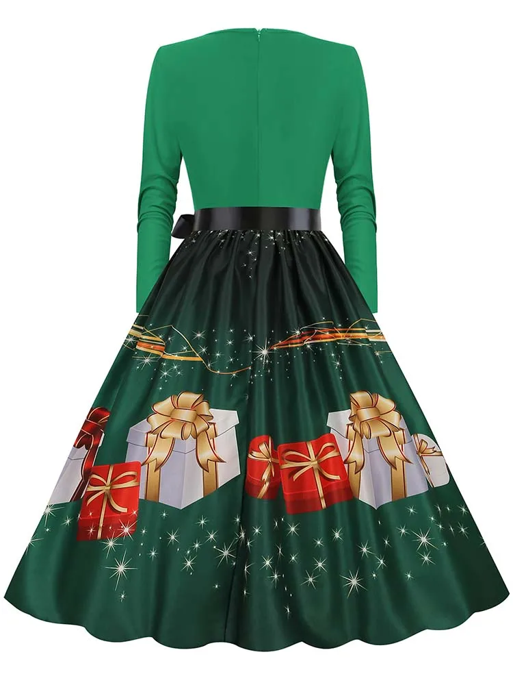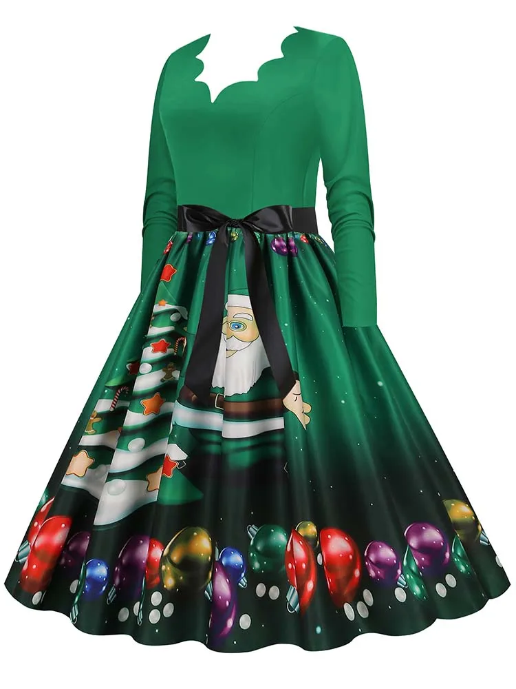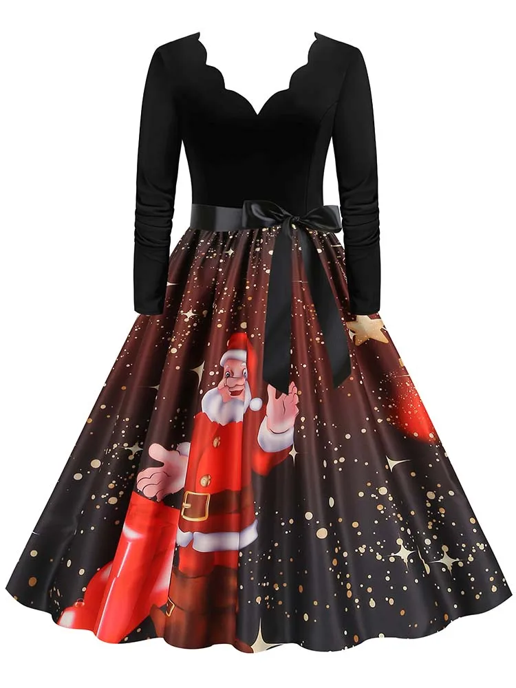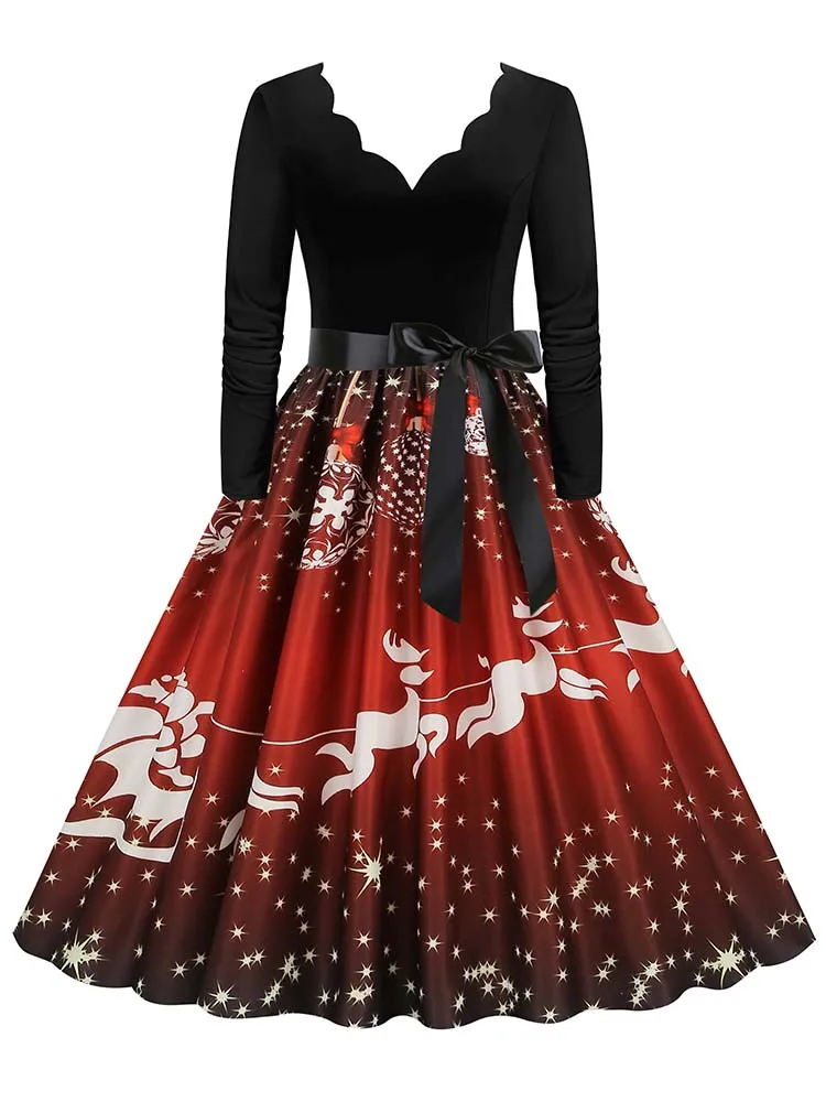 Women Christmas Dress Winter Long Sleeve V Neck Pumpkin Print Halloween Costume Party Dresses Casual Vintage S~3XL Clothing
