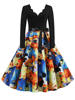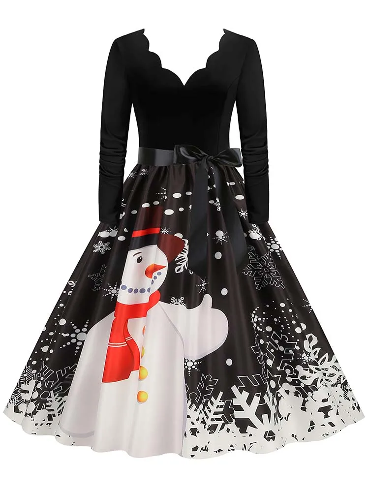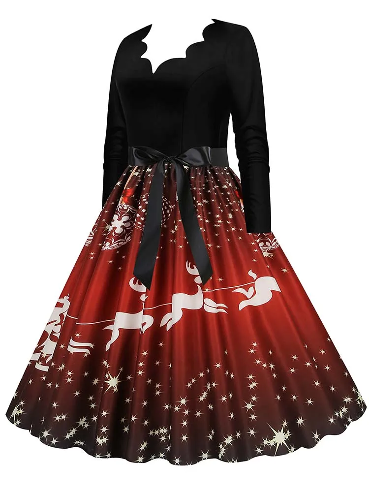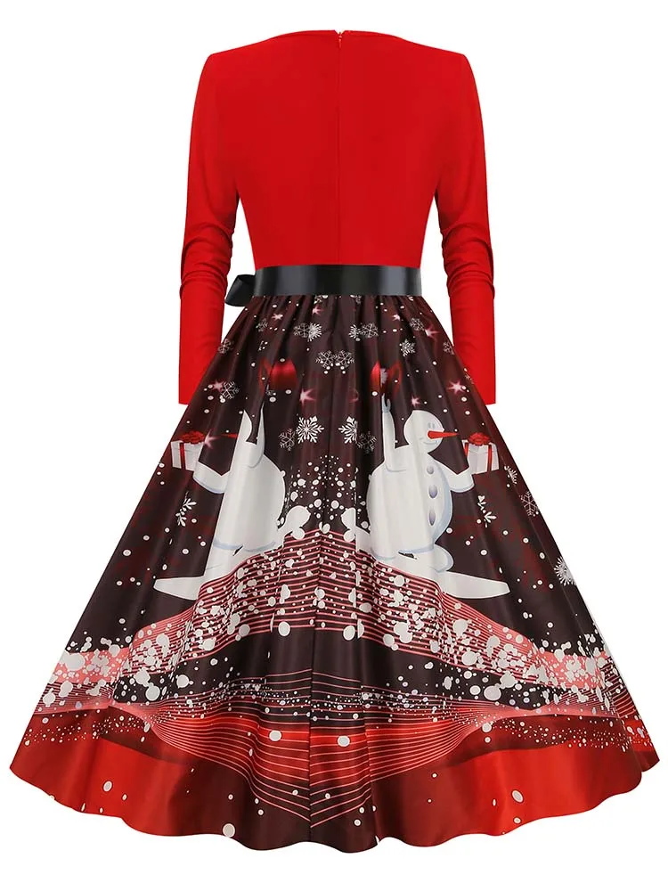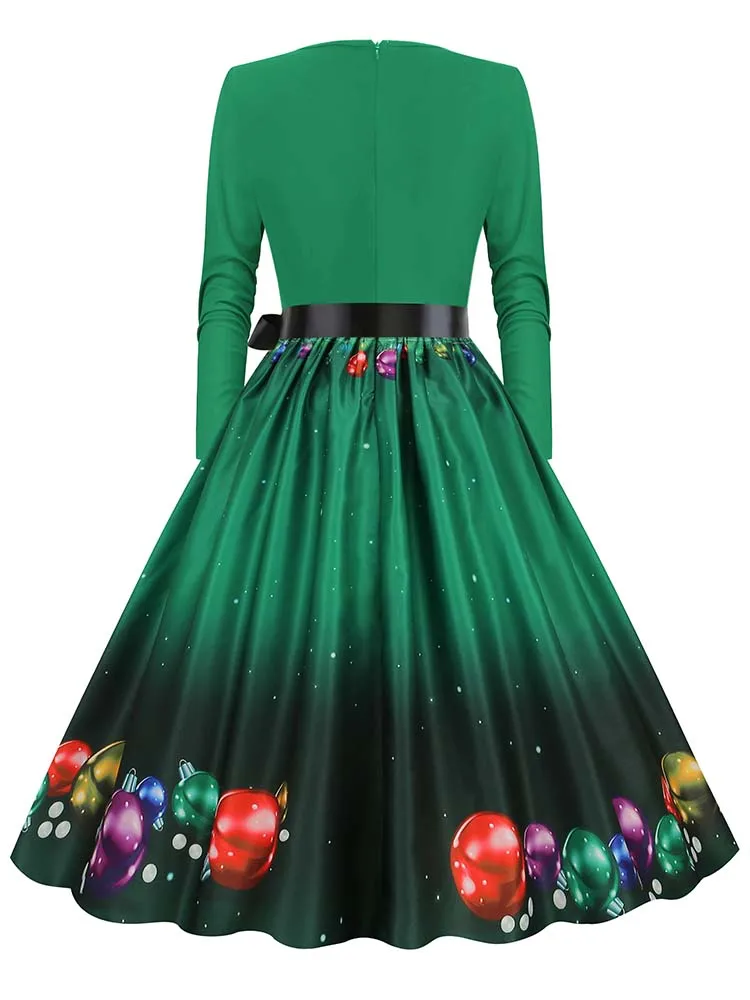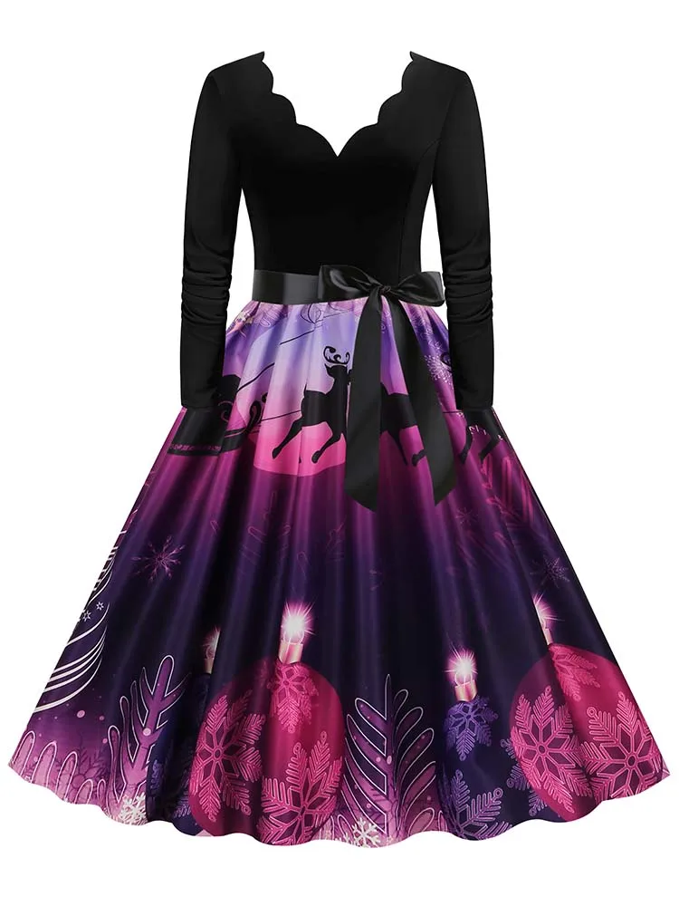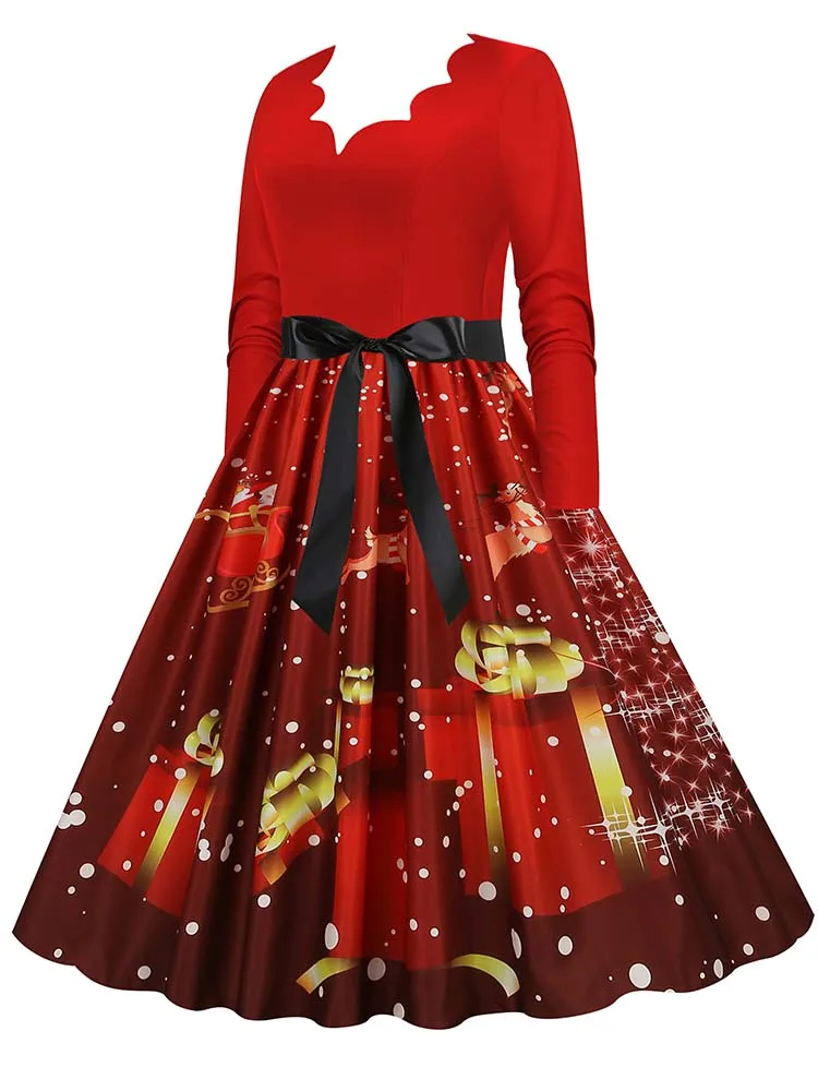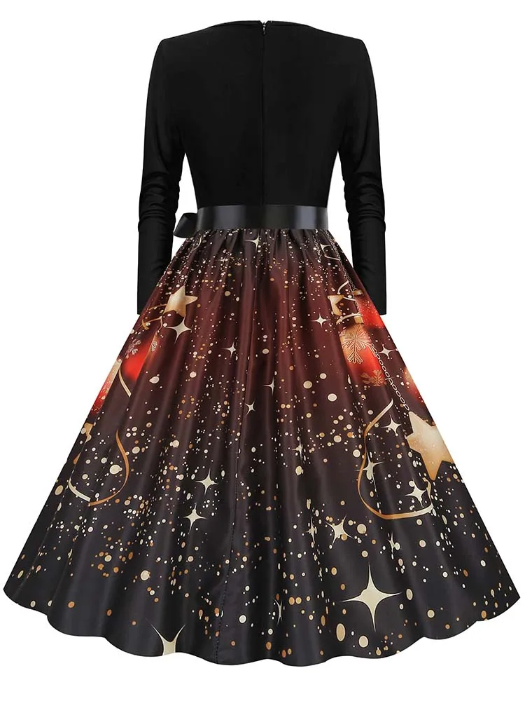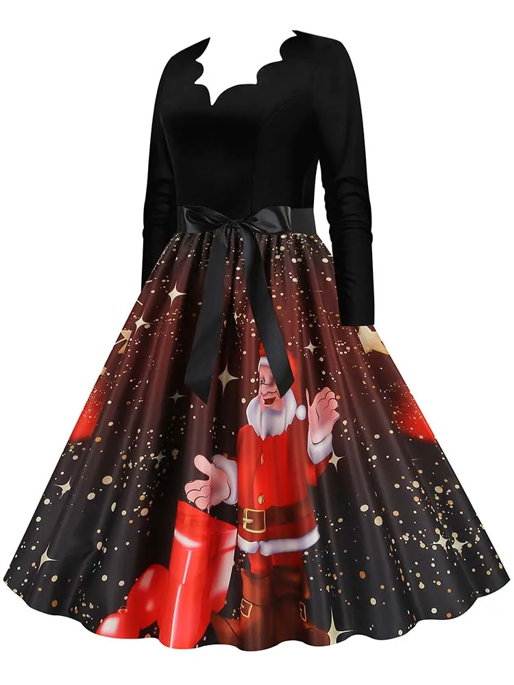 Women Christmas Dress Winter Long Sleeve V Neck Pumpkin Print Halloween Costume Party Dresses Casual Vintage S~3XL Clothing