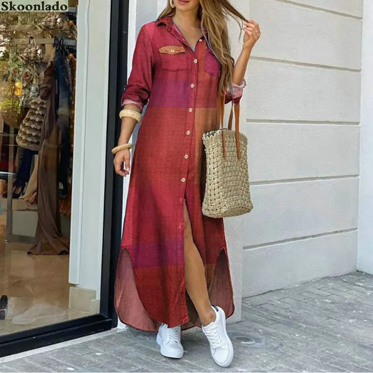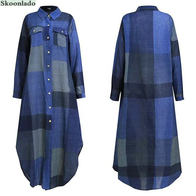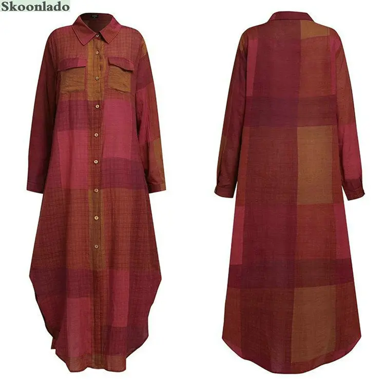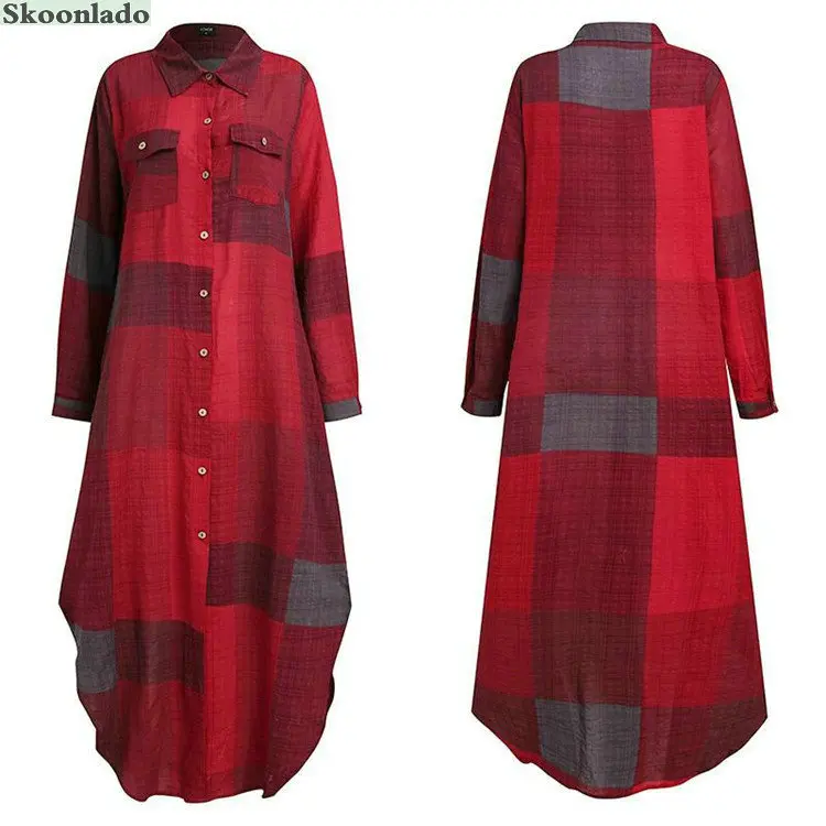 women classic plaid long dress with bottom good quality women long dresses elegant fashion female clothes healthy linen material