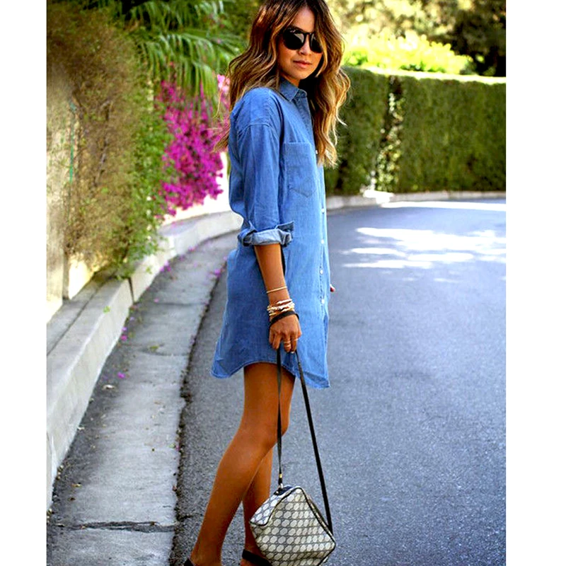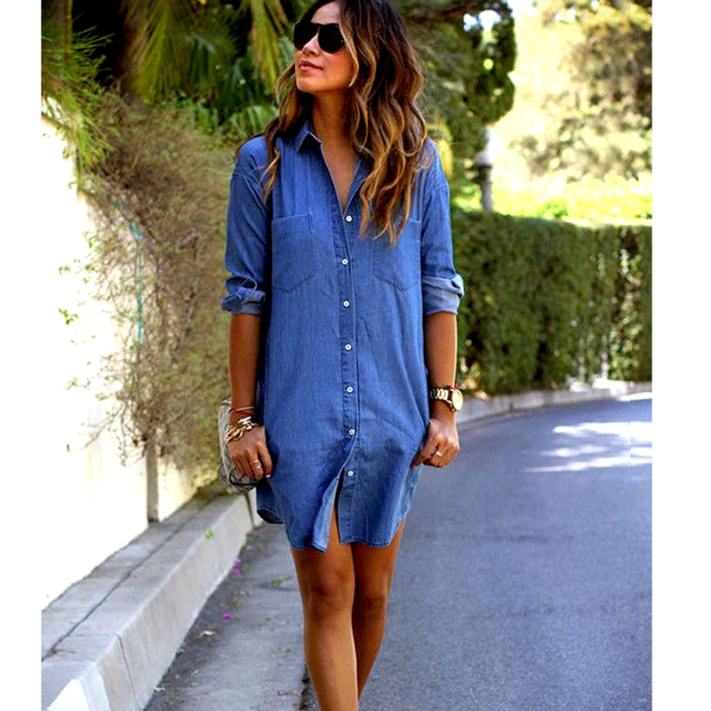 Women Denim Dress Button Spring Autumn Long Sleeve Casual Mini Button Pockets Loose New Fashion Daily Girls Wear Hot Clothing