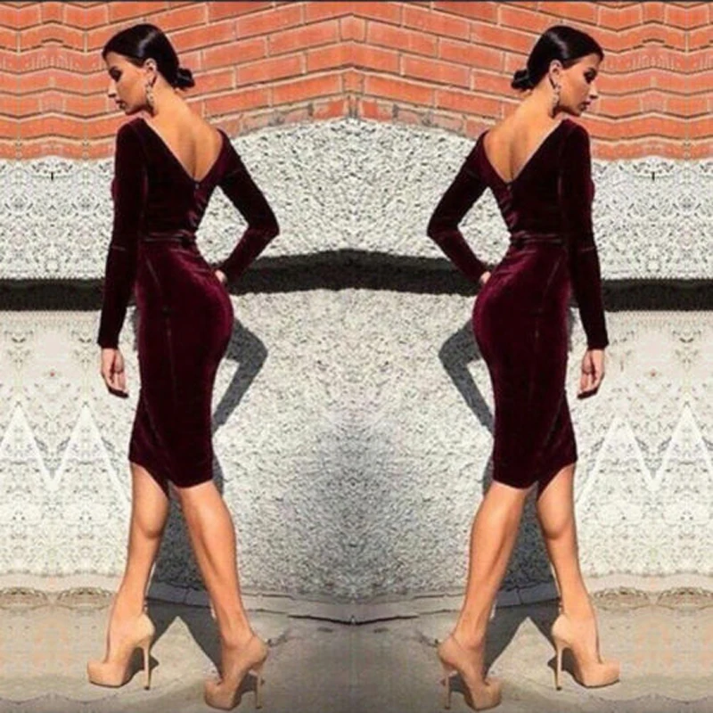 Women Dress Female Hot Sale Fashion Long Sleeve High Waist Backless Evening Party Velvet Bandage Bodycon Autumn Pencil Clothing