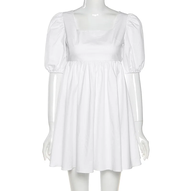 Women Dresses 2020 Summer New Women's Vintage Style Puff Sleeve Princess Dress Sexy Square Collar Bacckless Slim Bandage Dress