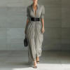 Women Dresses 2025 Retro Shirt Collar Belted Slim Pleated Long Dress Spring Autumn Single Breasted Long Sleeve Fashionable Dress