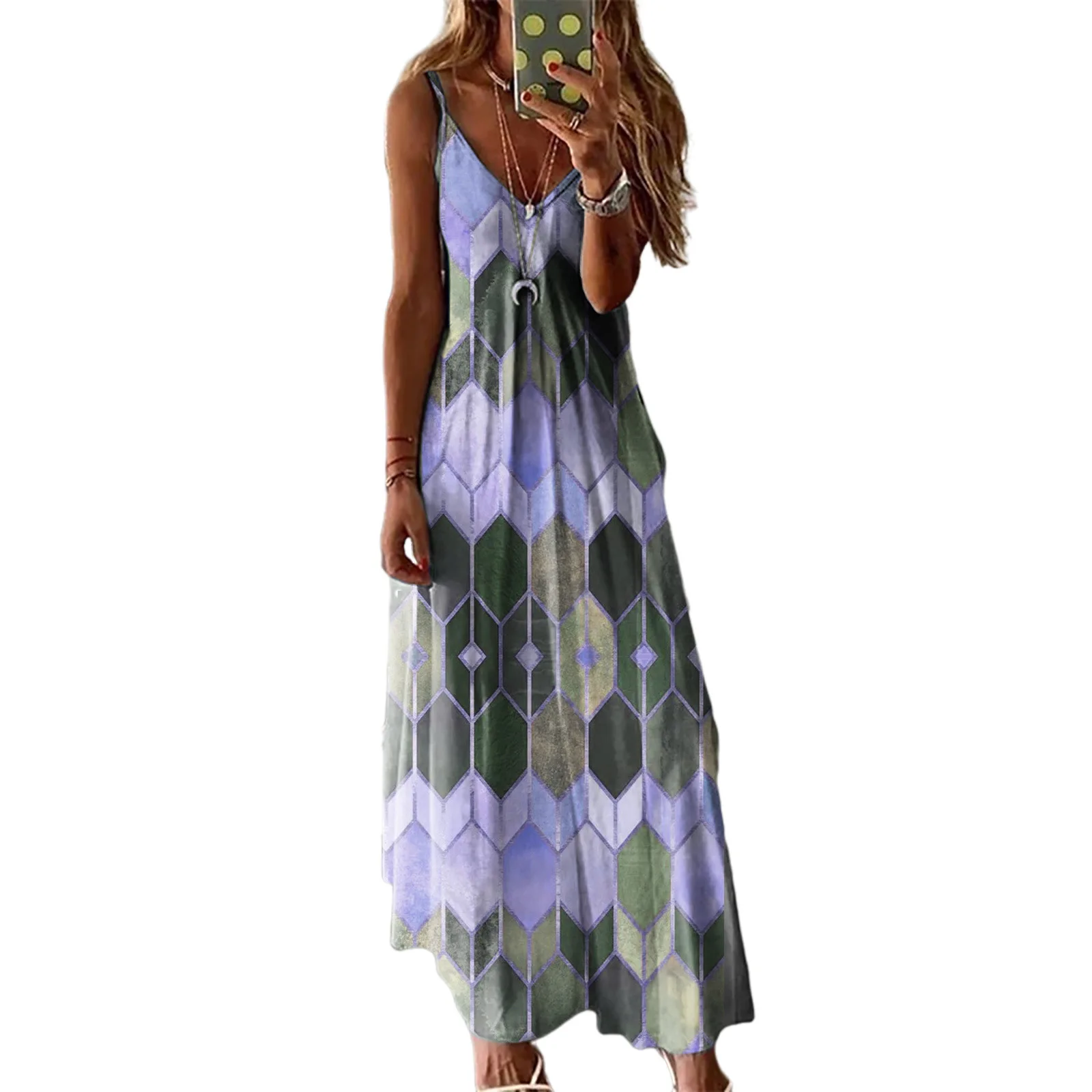 Women Dresses Ladies Sleeveless V-Neck Camisole A-Line Camisole Casual Printed Long Dress for Women 2021 Fashion