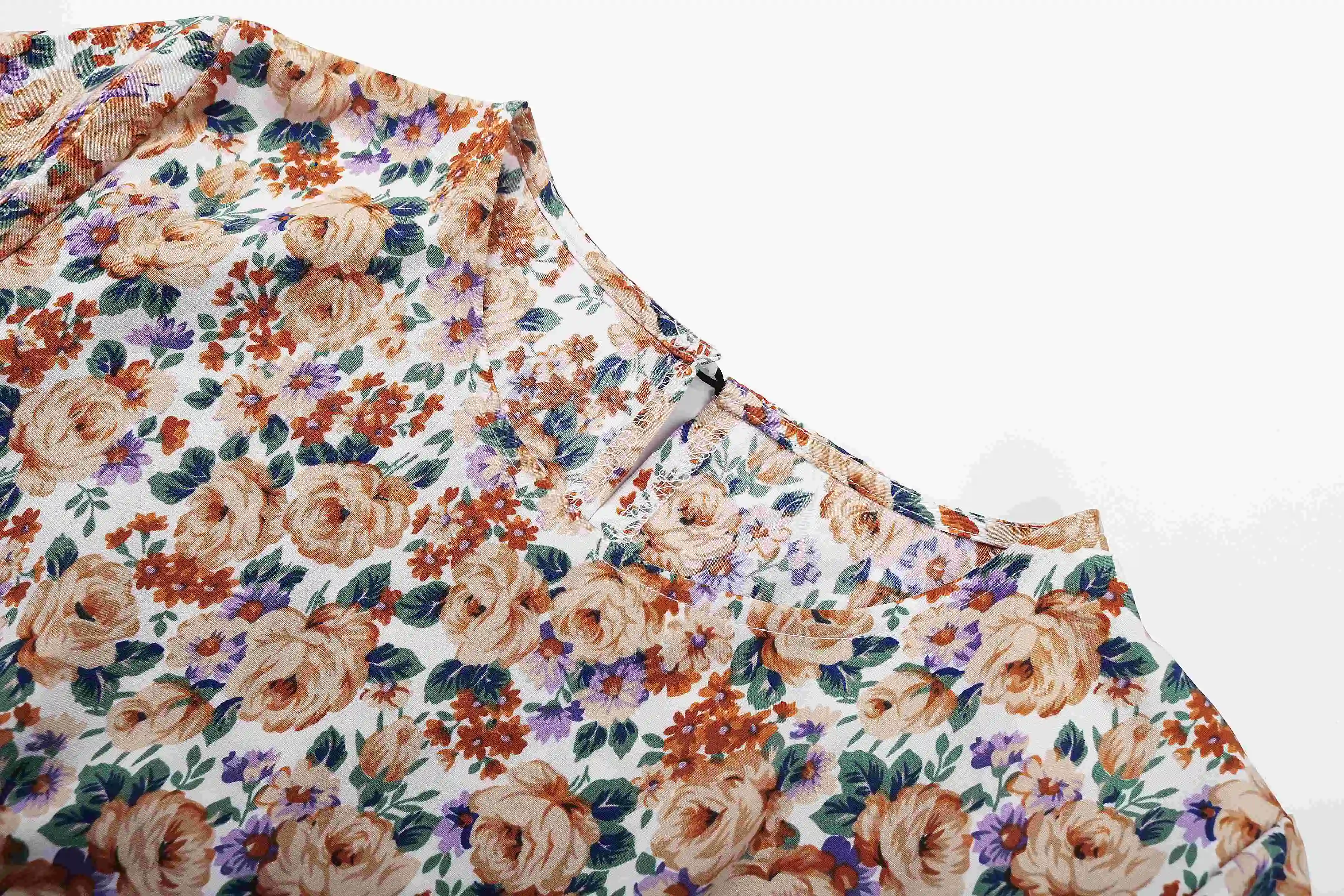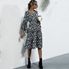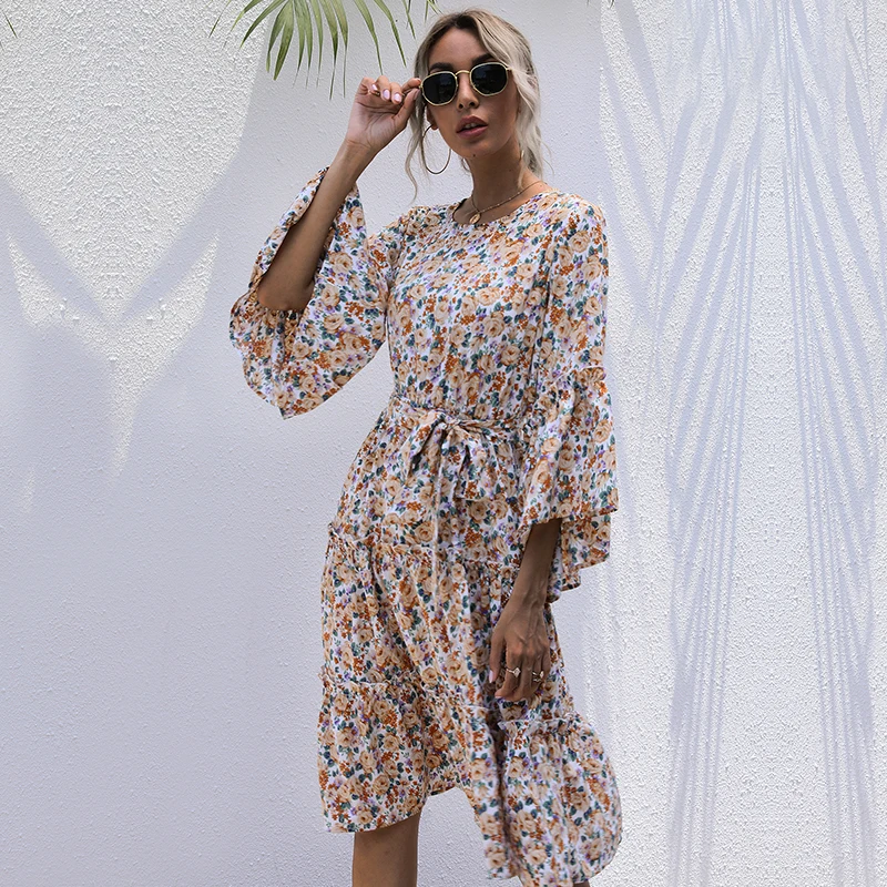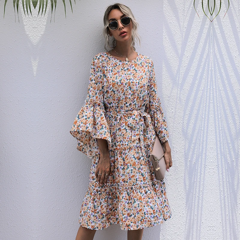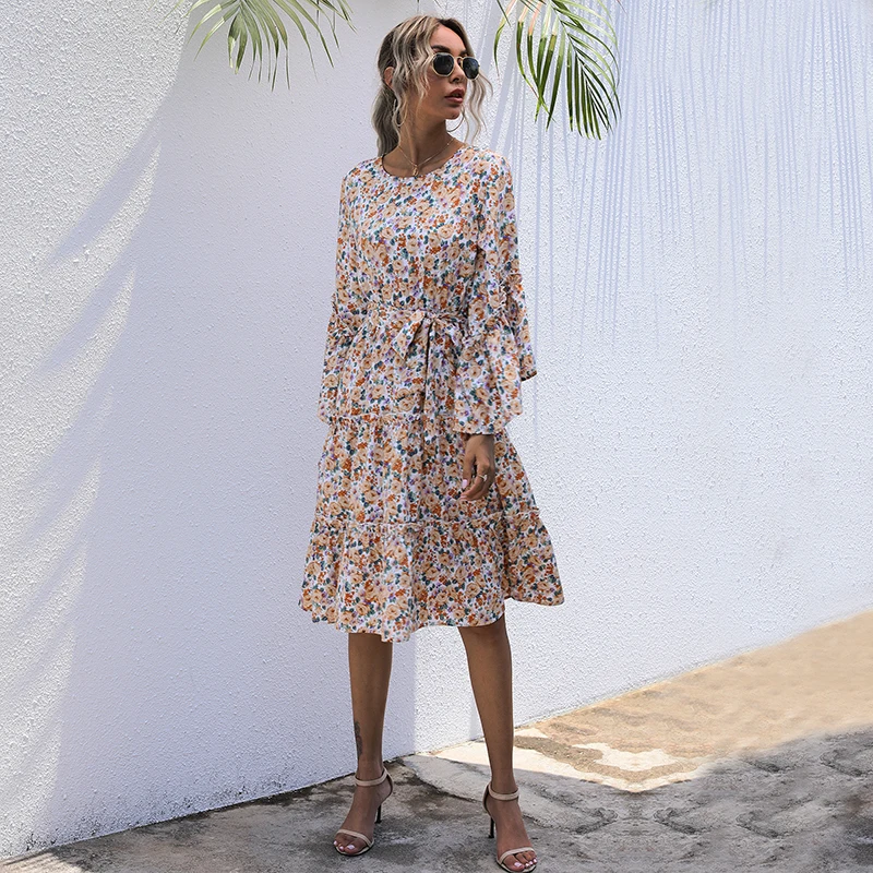 Women Elegant Cascade Ruffled Midi Dress Autumn O Neck Commute OL Shirt Dress Female Casual Holiday Dress New Floral Dress