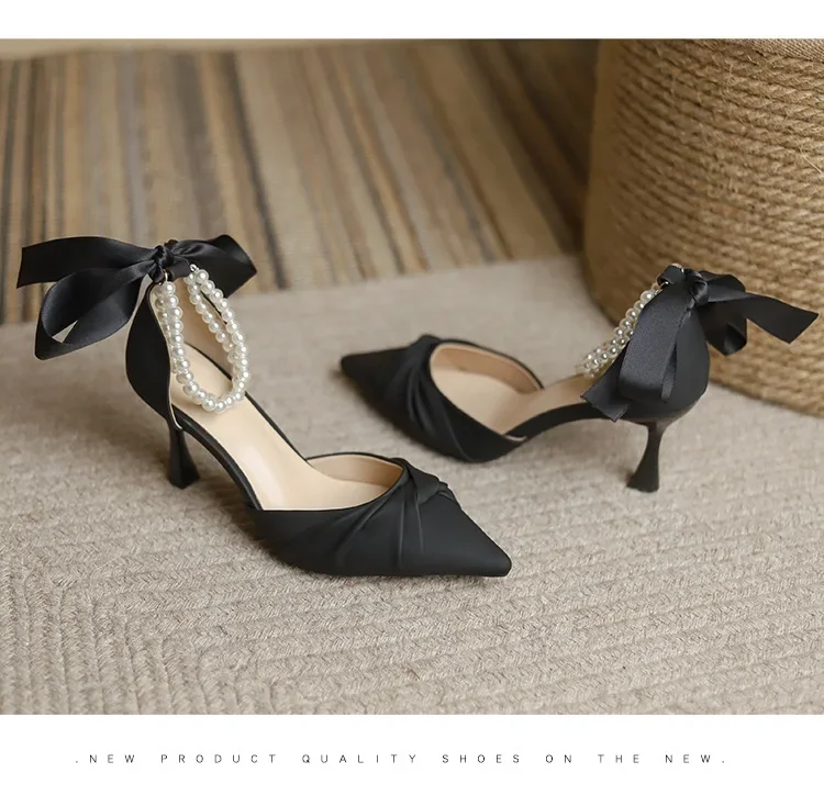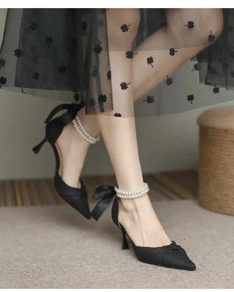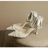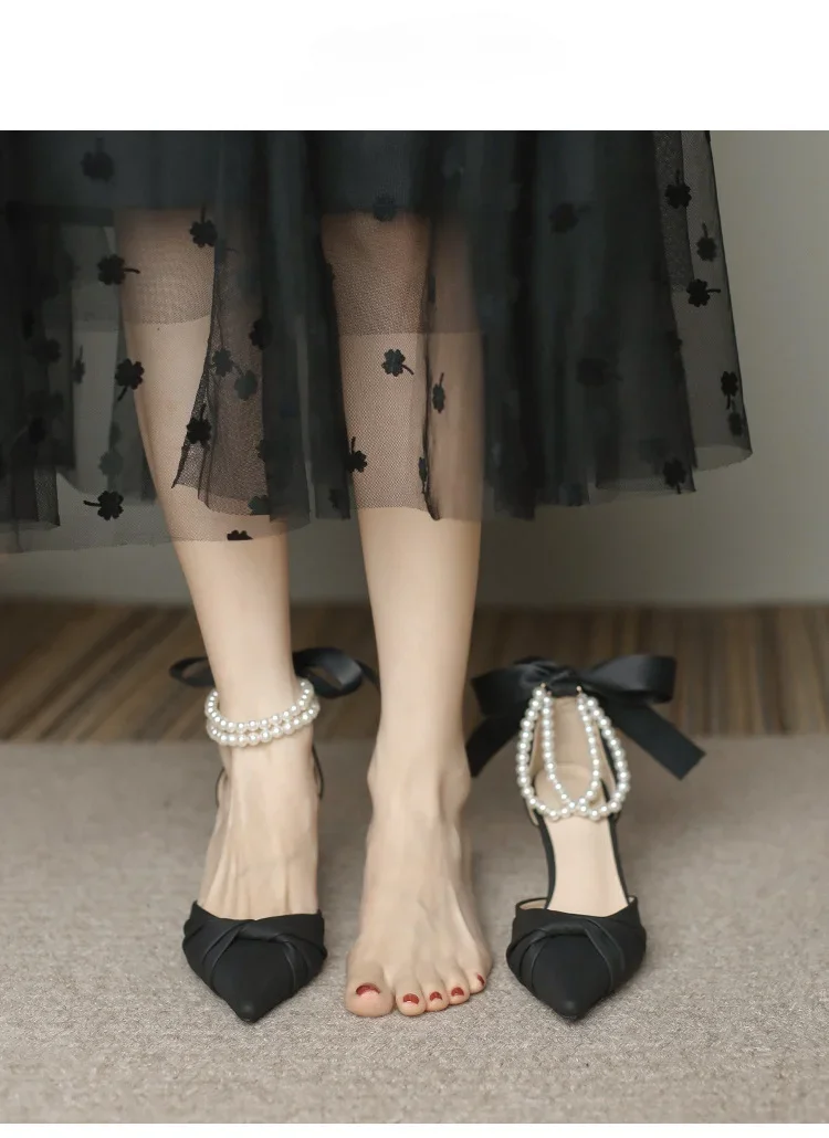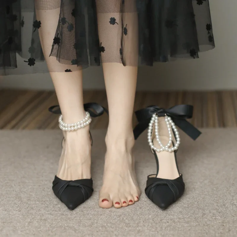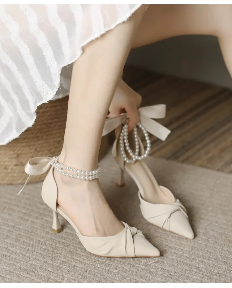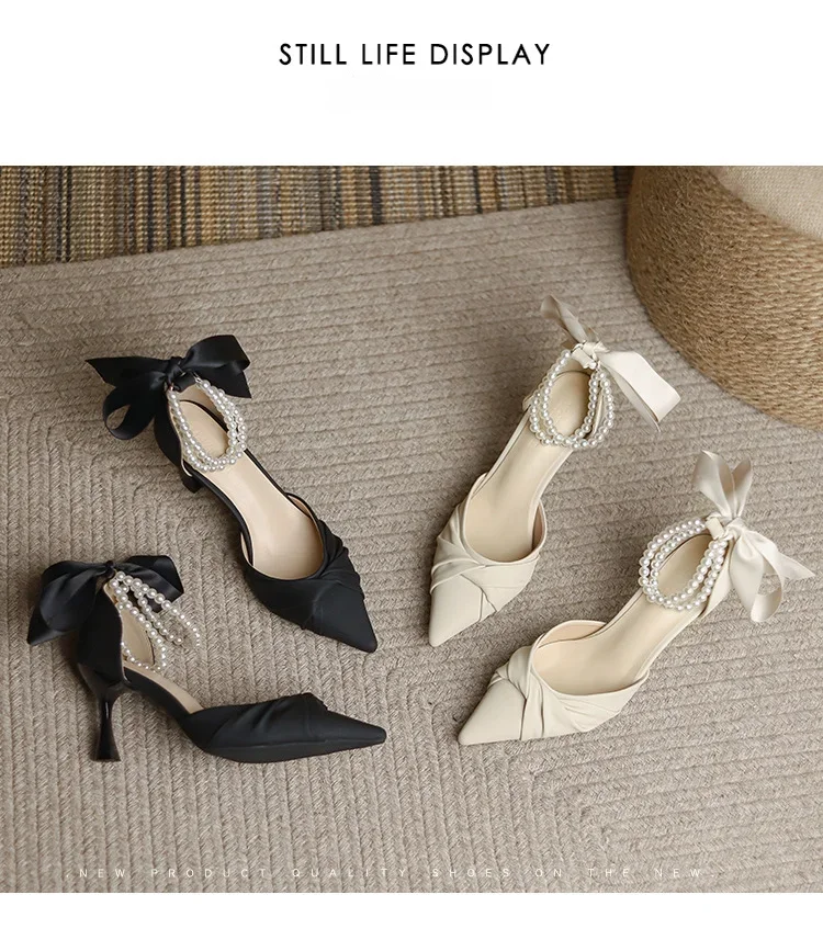 Women Elegant White High Heels Sandals Chunky Platform Pearl Ankle Straps Pumps Woman Lace Bowtie Luxury Party Shoes