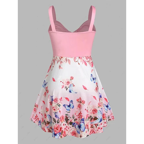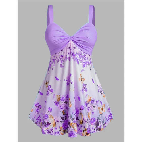 Women Fashion Butterfly Printed Tank Top Summer Casual V Neck Sleeveless Tees Loose Empire Waist Curved Hem Camis Vest Dress