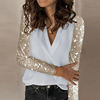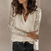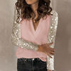 Women Fashion Patchwork Sequins Blouse Shirts 2022 Autumn Casual Long Sleeve Pullover Tops Ladies Elegant Loose Blusa Streetwear