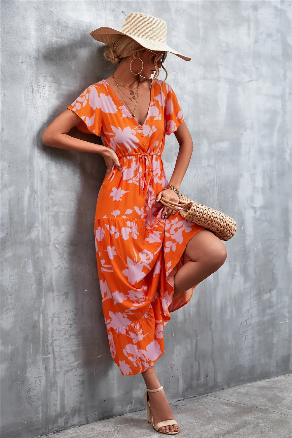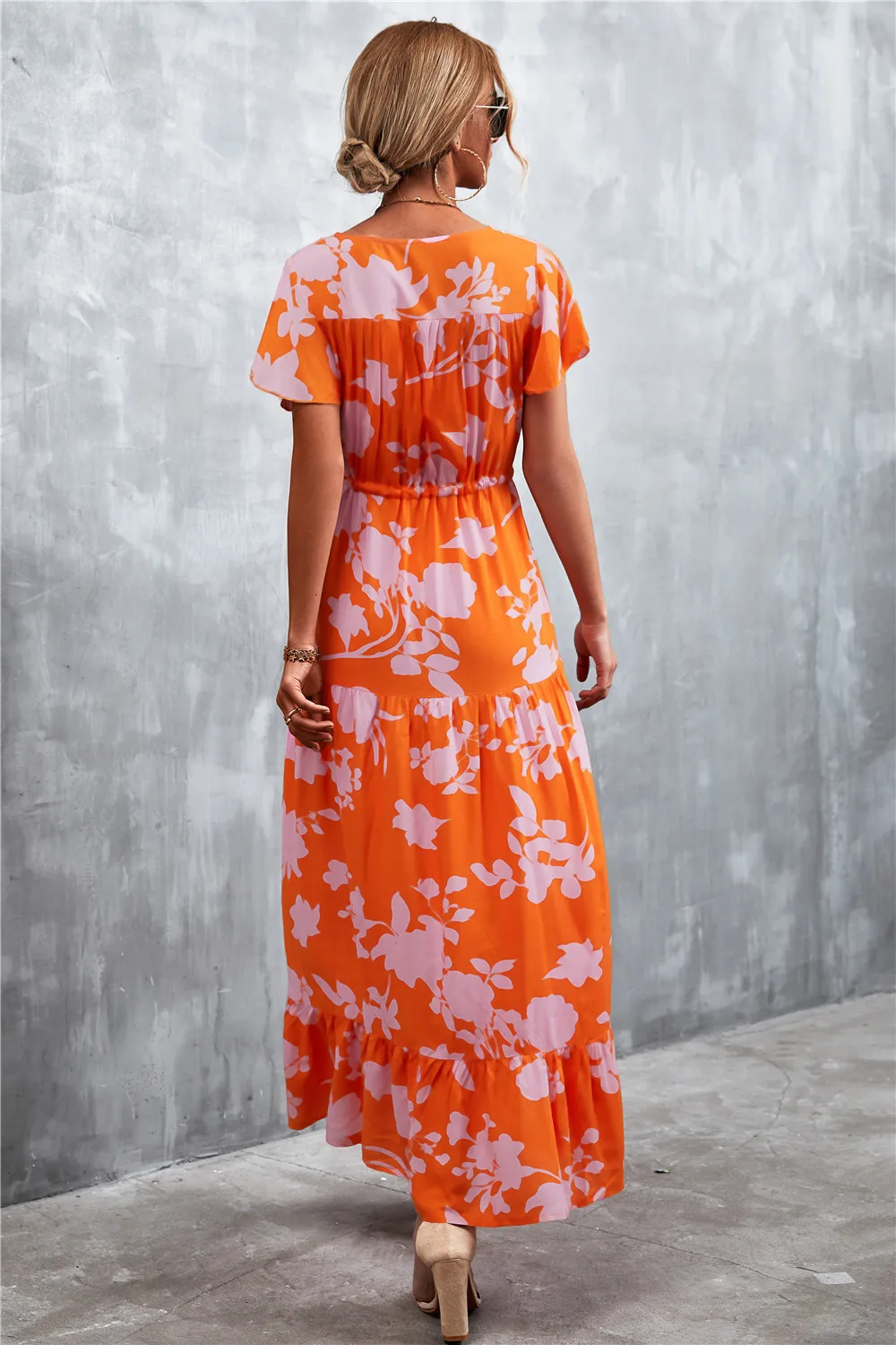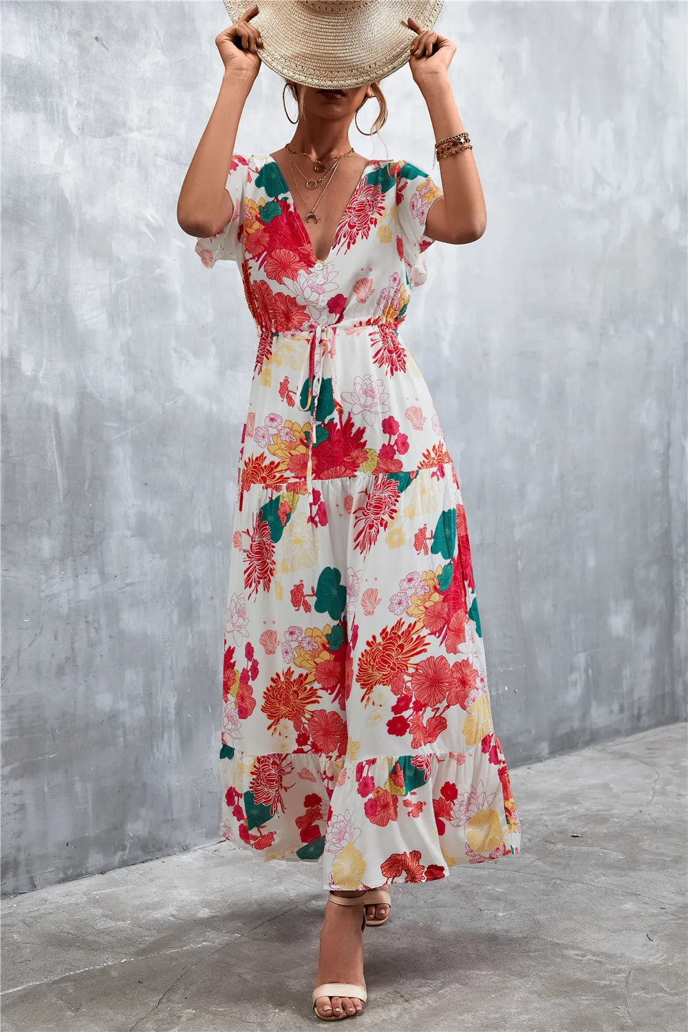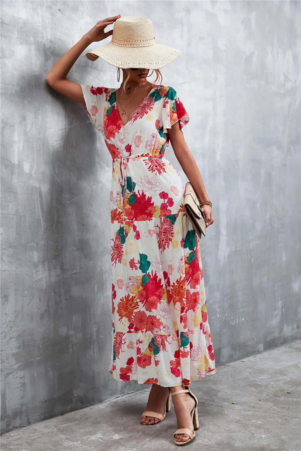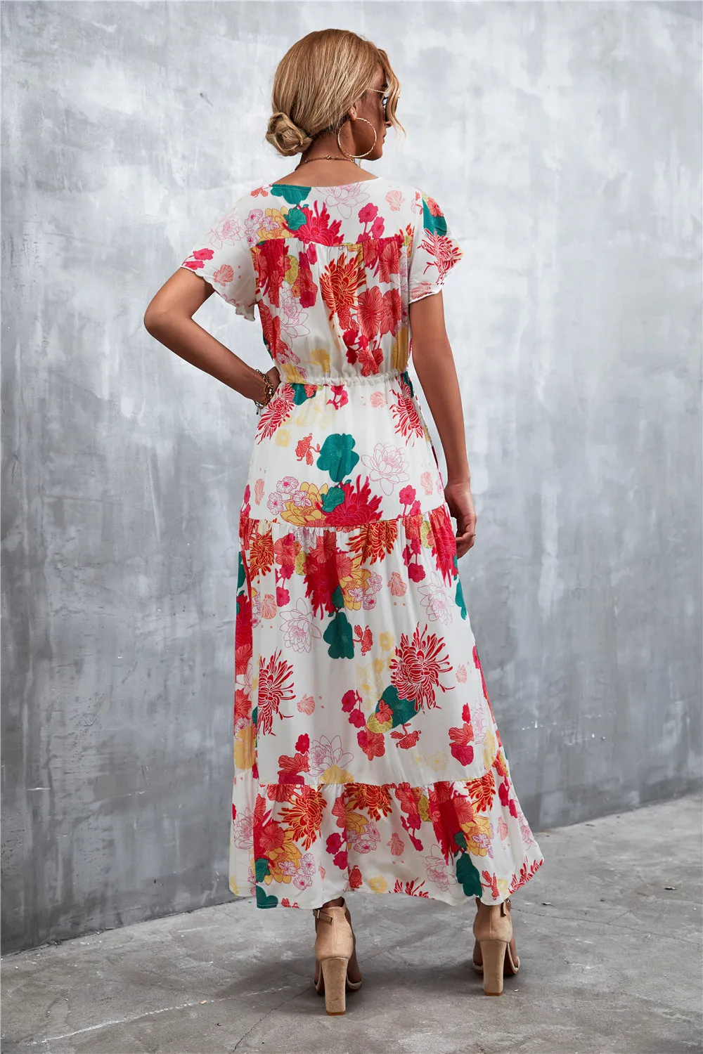 Women Floral Print Short Sleeve Beach Bohemian Maxi Dress Robe Ladies V-neck Boho Dresses Vestidos Ropa De Mujer 2022 Fashion