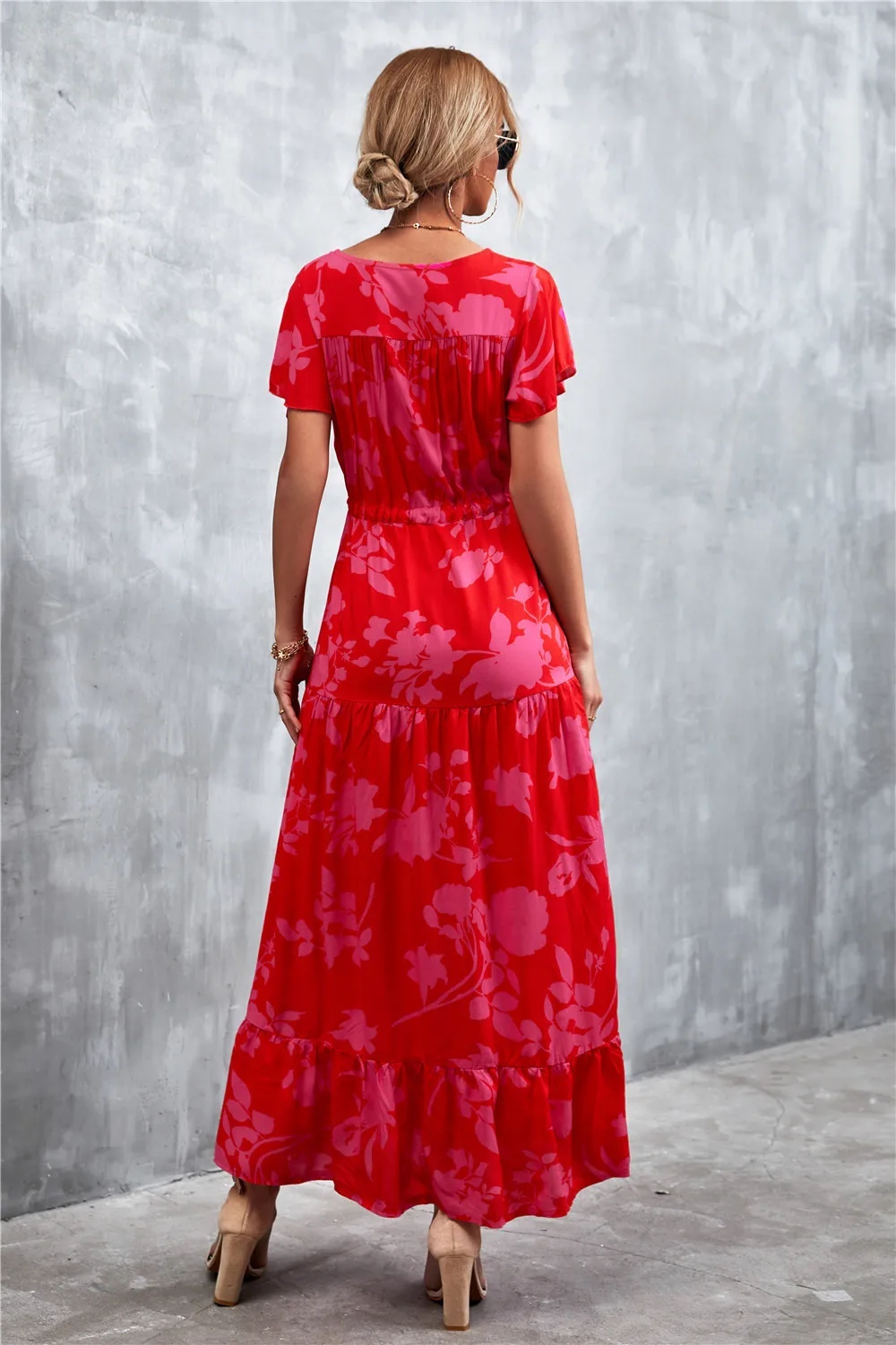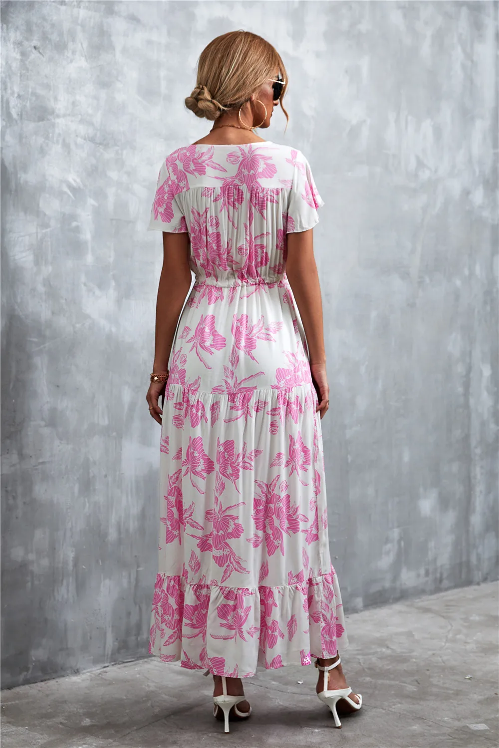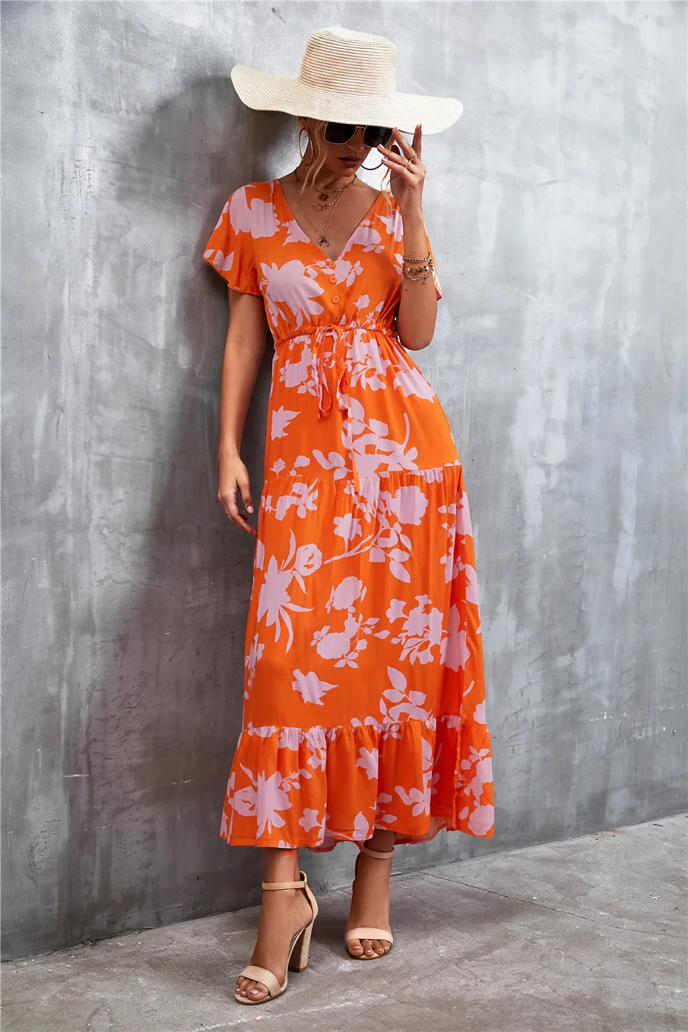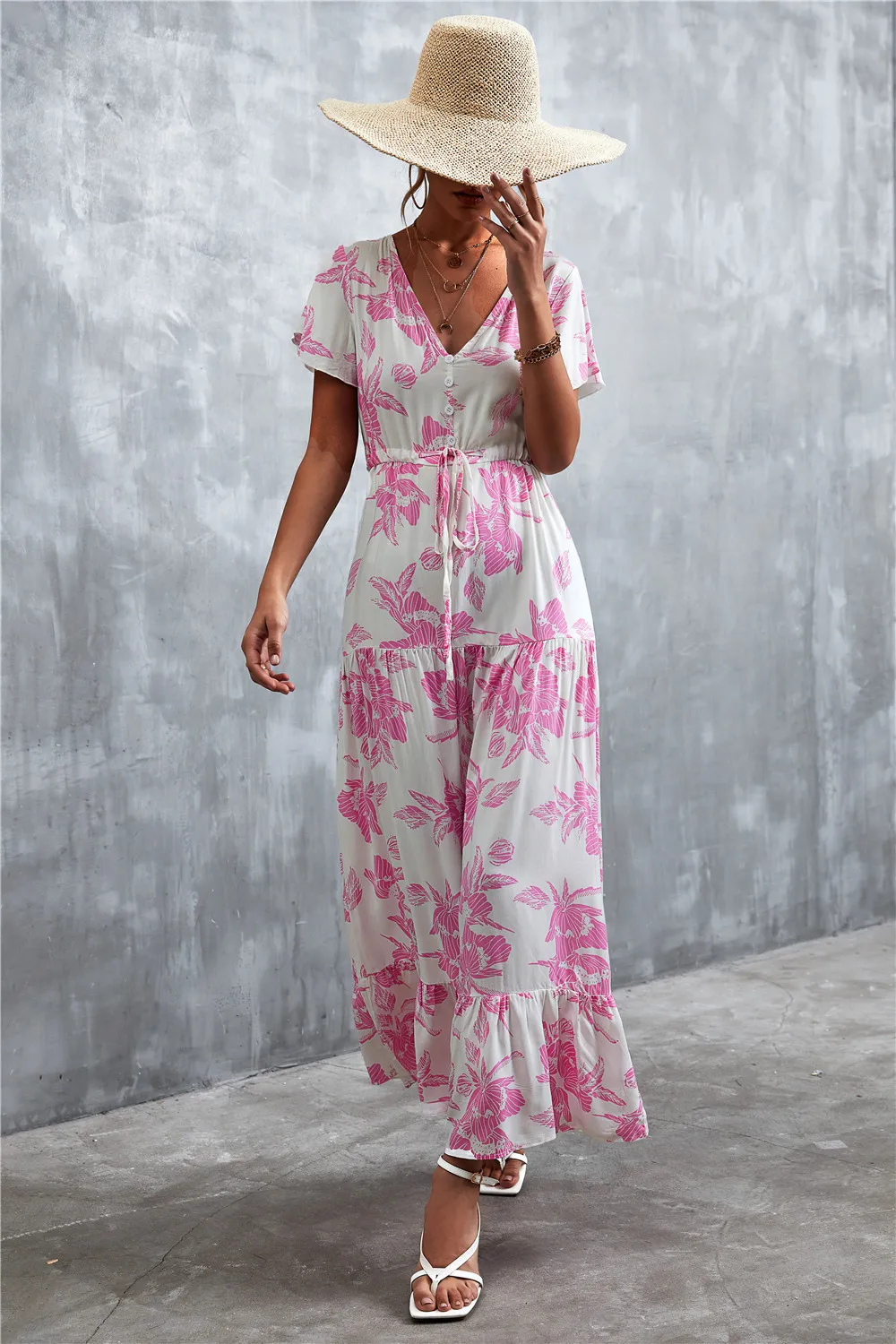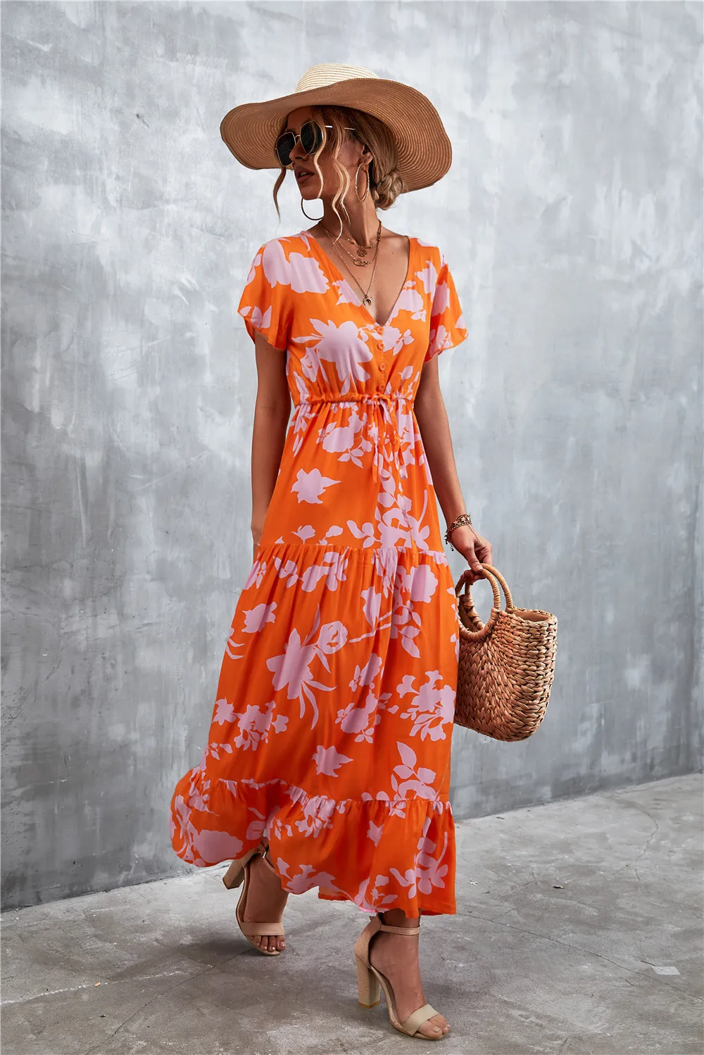 Women Floral Print Short Sleeve Beach Bohemian Maxi Dress Robe Ladies V-neck Boho Dresses Vestidos Ropa De Mujer 2022 Fashion
