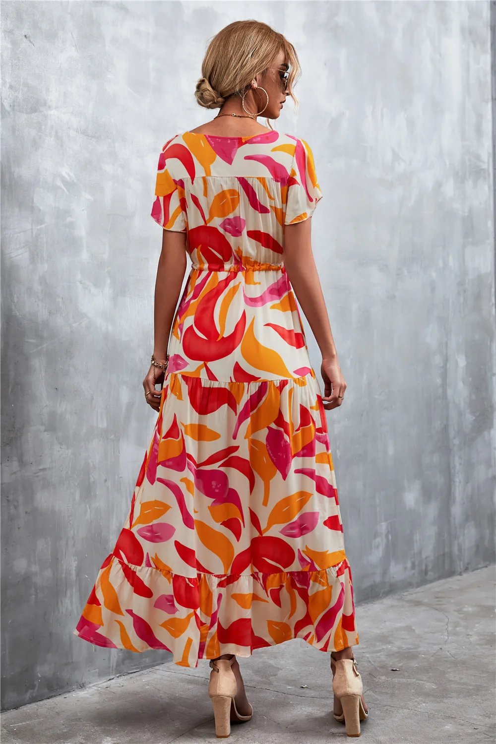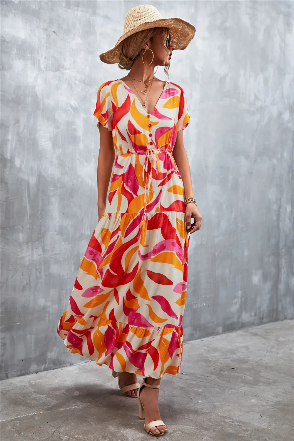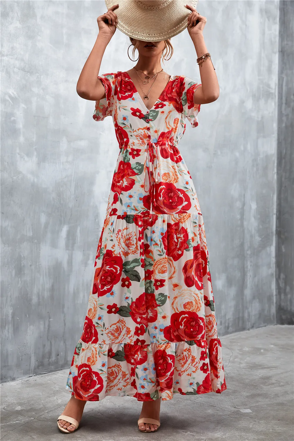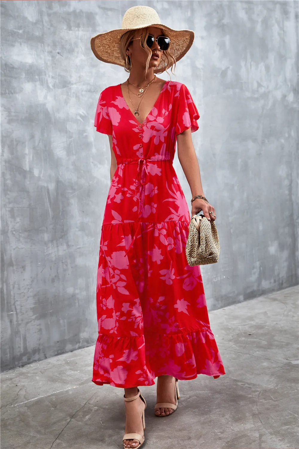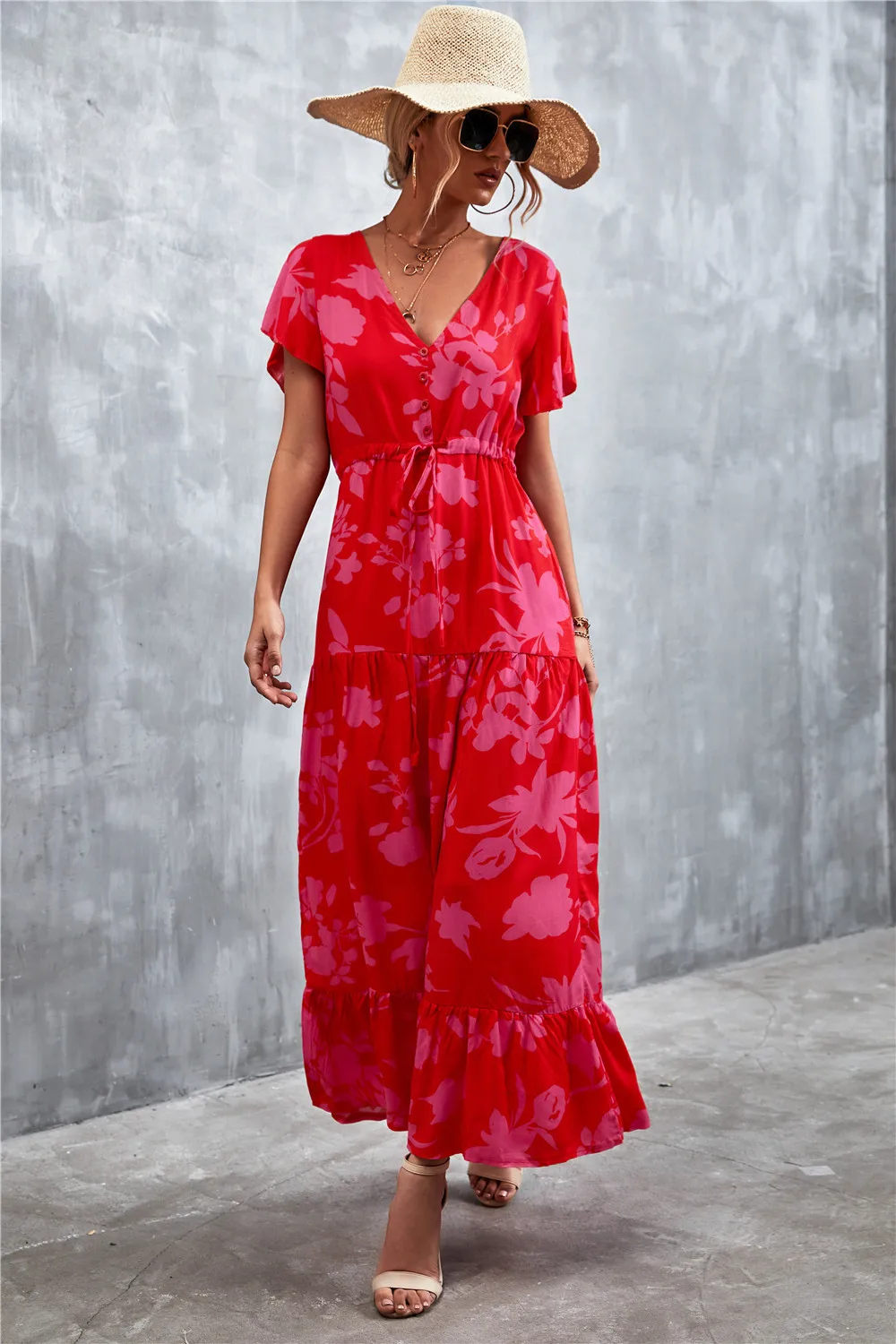 Women Floral Print Short Sleeve Beach Bohemian Maxi Dress Robe Ladies V-neck Boho Dresses Vestidos Ropa De Mujer 2022 Fashion