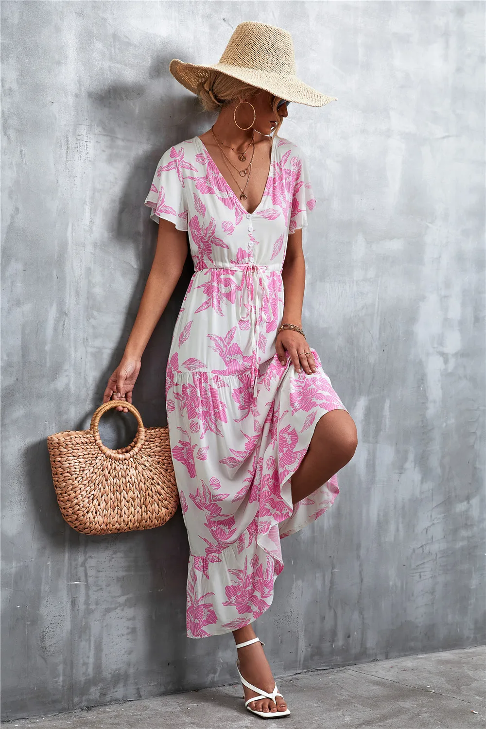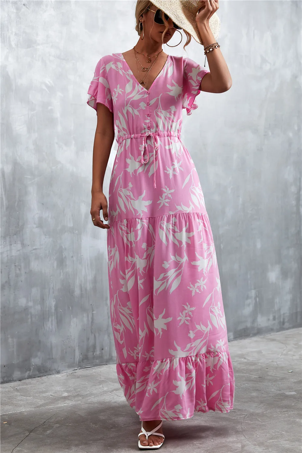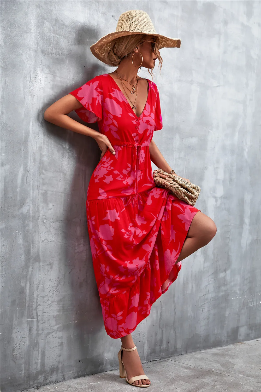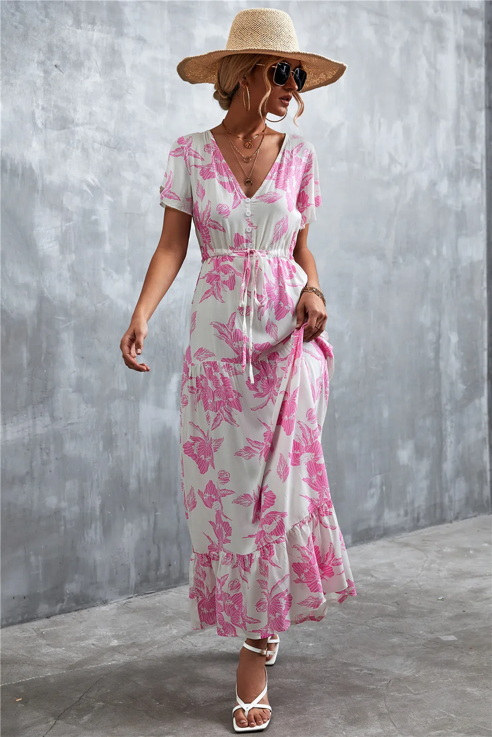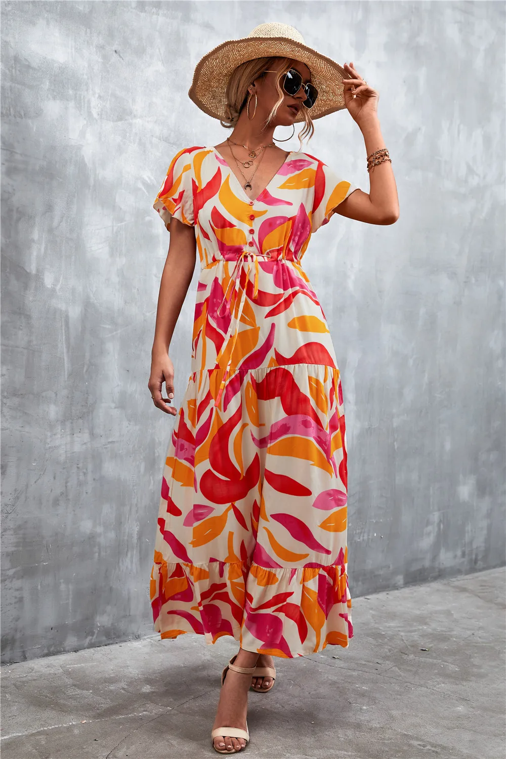 Women Floral Print Short Sleeve Beach Bohemian Maxi Dress Robe Ladies V-neck Boho Dresses Vestidos Ropa De Mujer 2022 Fashion