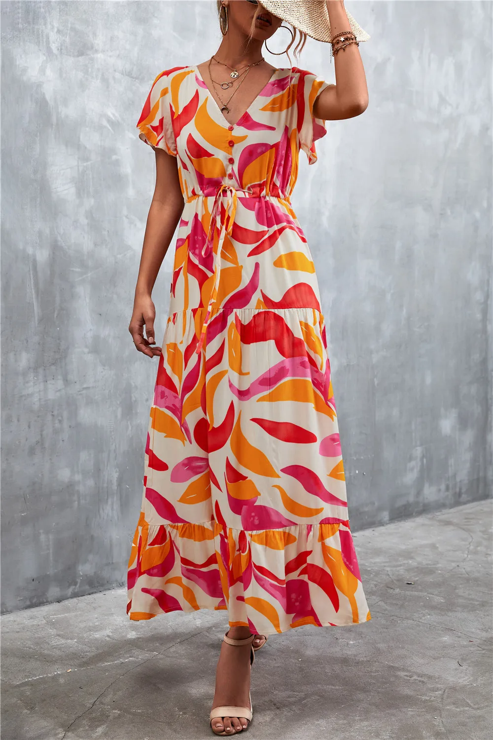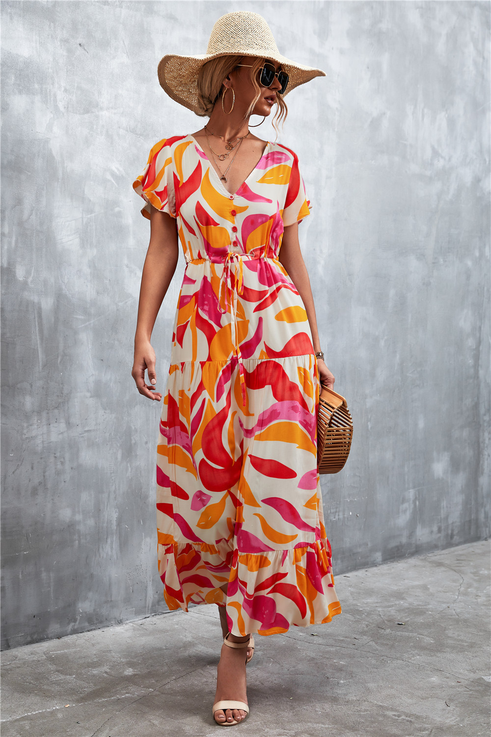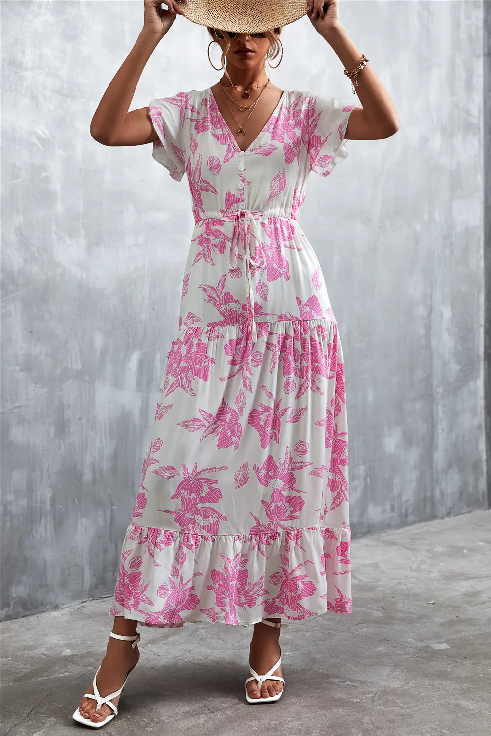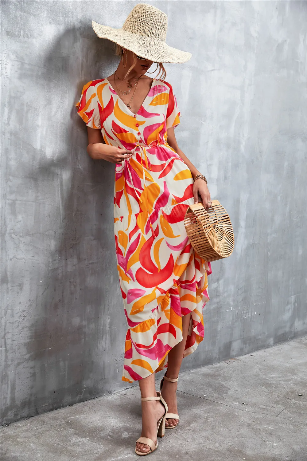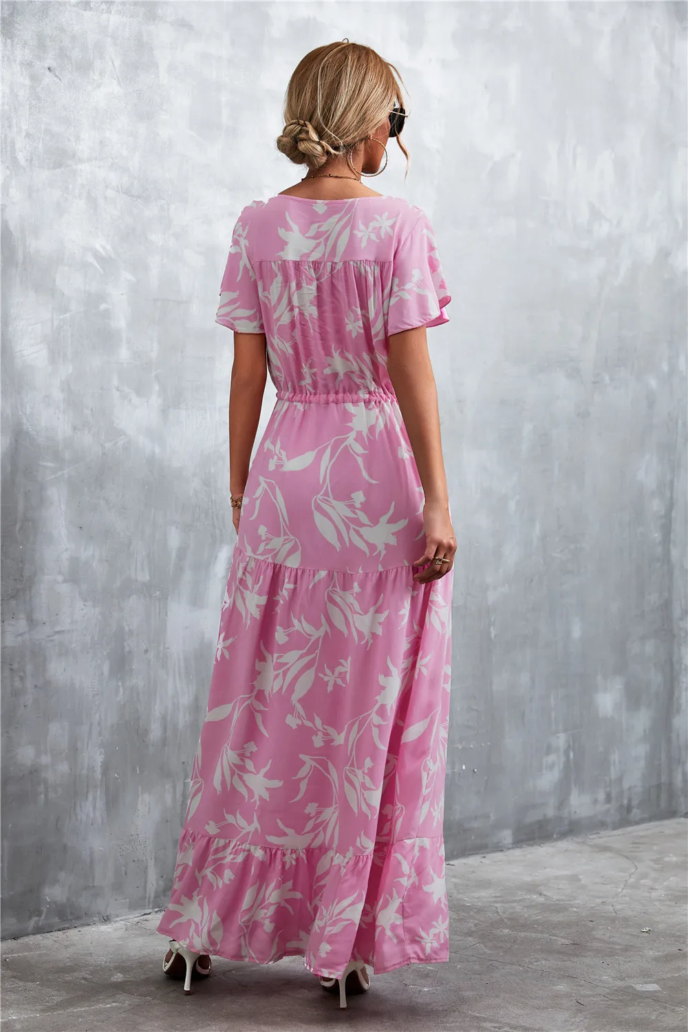 Women Floral Print Short Sleeve Beach Bohemian Maxi Dress Robe Ladies V-neck Boho Dresses Vestidos Ropa De Mujer 2022 Fashion