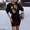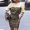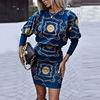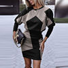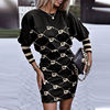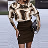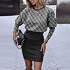 Women Geometric Print A-line Mini Dress Spring Autumn O-neck Bodyclineon Dresses Elegant Office Lady Lantern Sleeve Slim Vestido