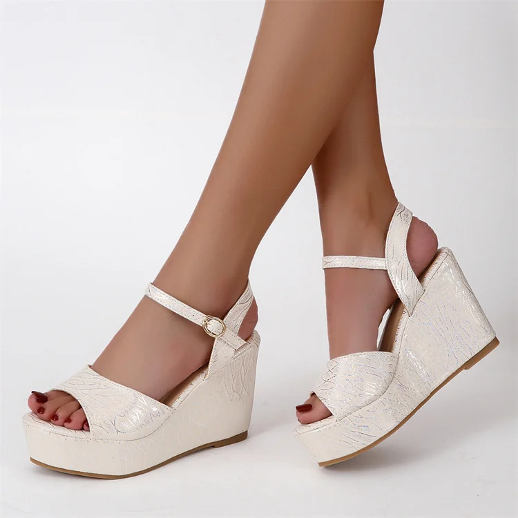 Women Hemp Rope knitted Casual Wedges Sandals High Heel Retro Silk Floral Peep Toe Women's Shoes Metal Chain Cross Buckle Sandal