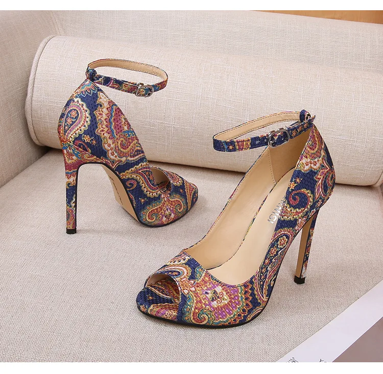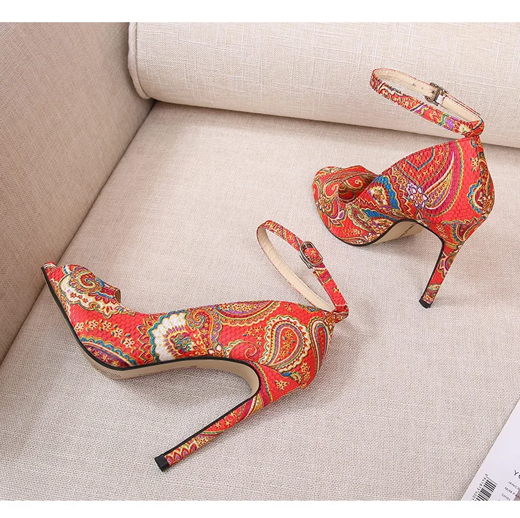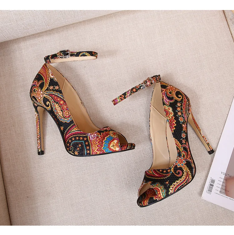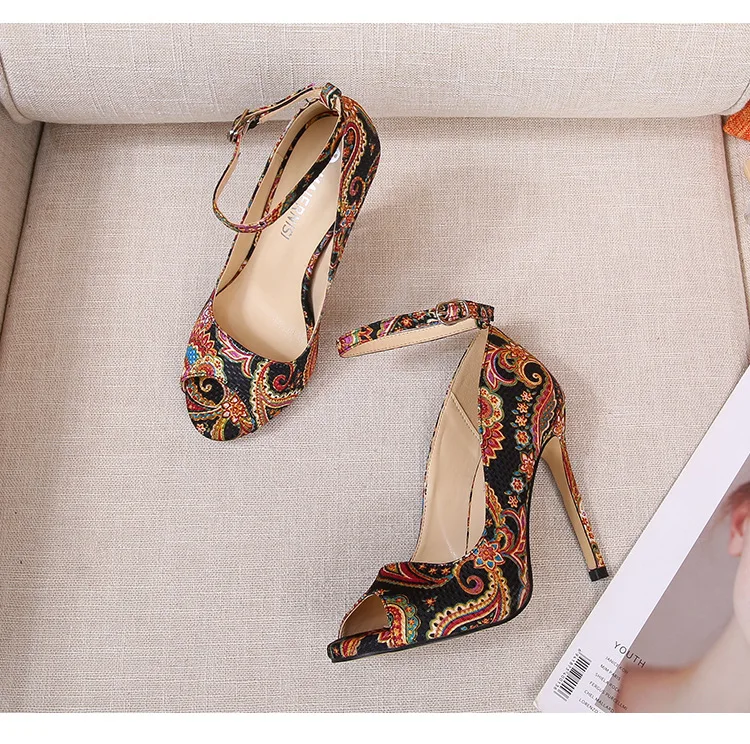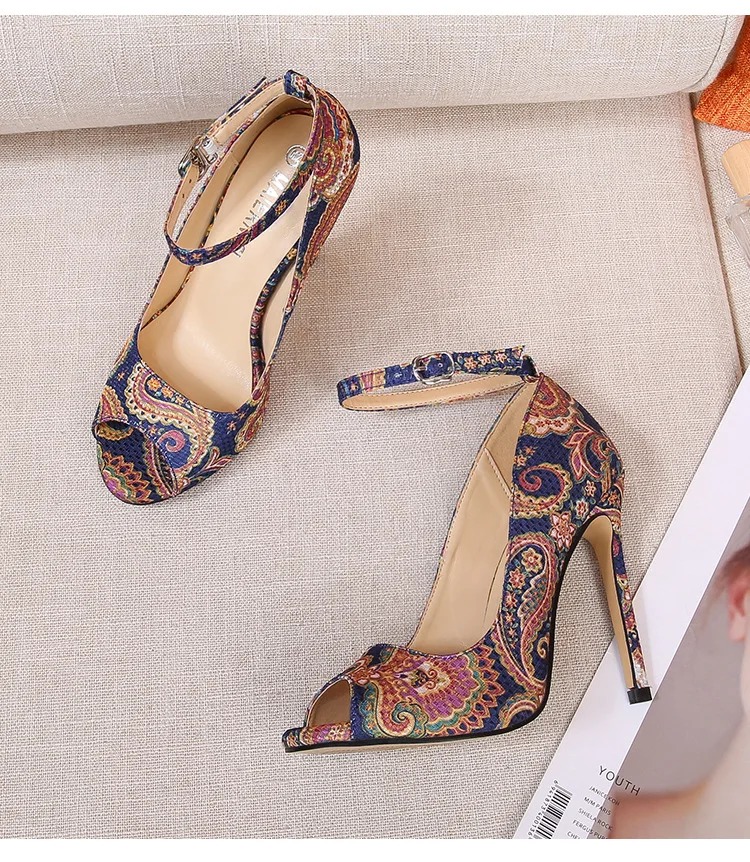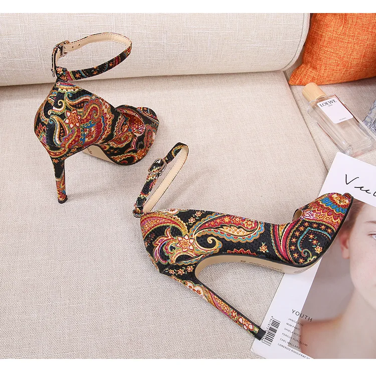Women High Heels Stiletto Sandals Platform Sandals for Women’s 2021 New High Quality Retro Printing High Heels Zapatos De Mujer