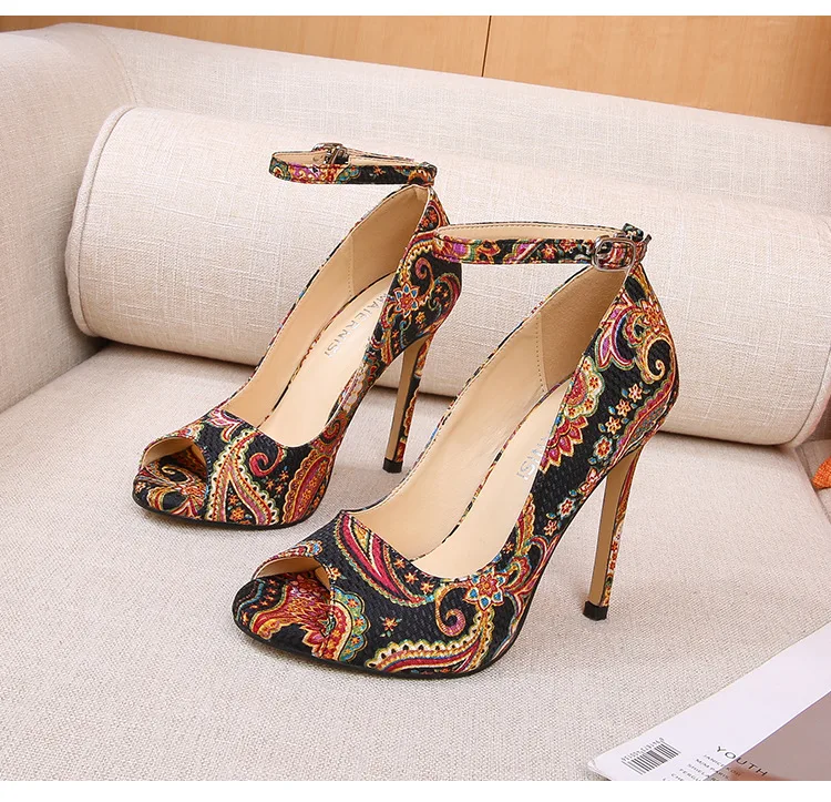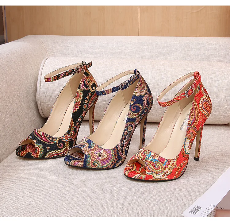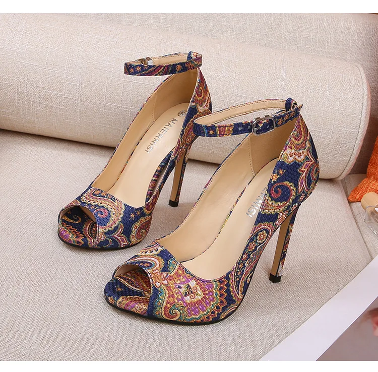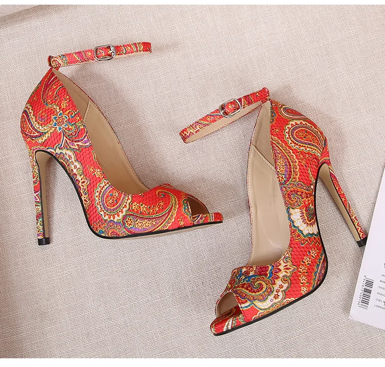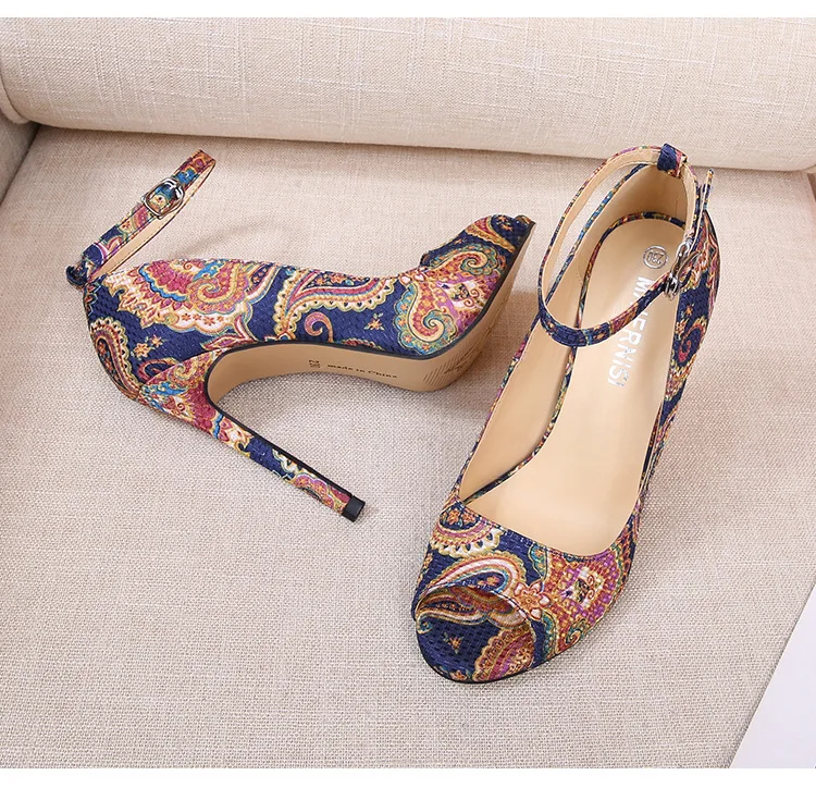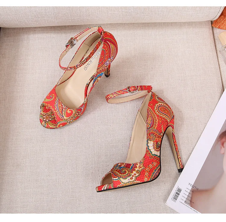 Women High Heels Stiletto Sandals Platform Sandals for Women’s 2021 New High Quality Retro Printing High Heels Zapatos De Mujer