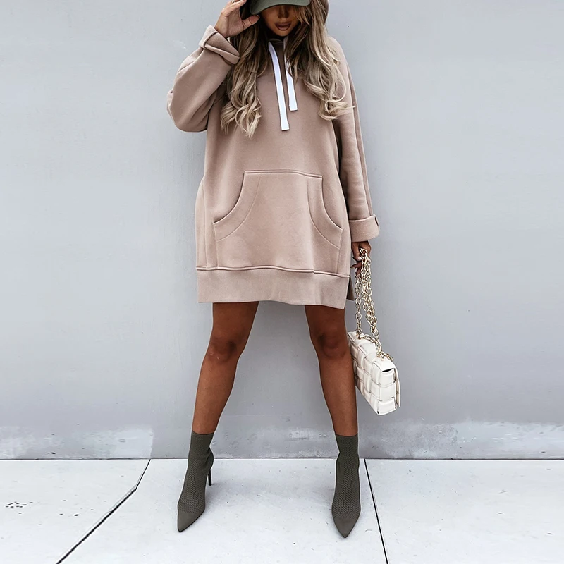 Women Hooded Sweatshirts 2021 Autumn Fashion Long Sleeve Drawstring Pullover Tops Vintage Solid Casual Loose Ladies Warm Blouse