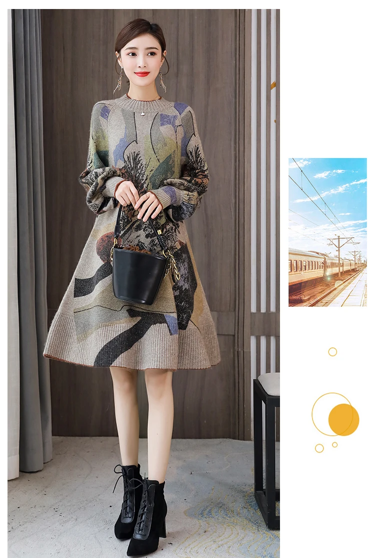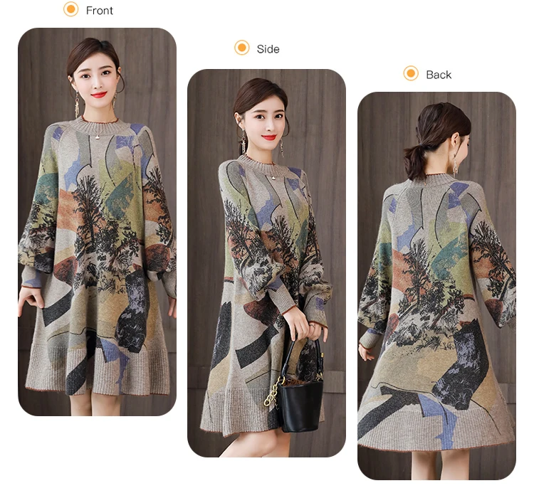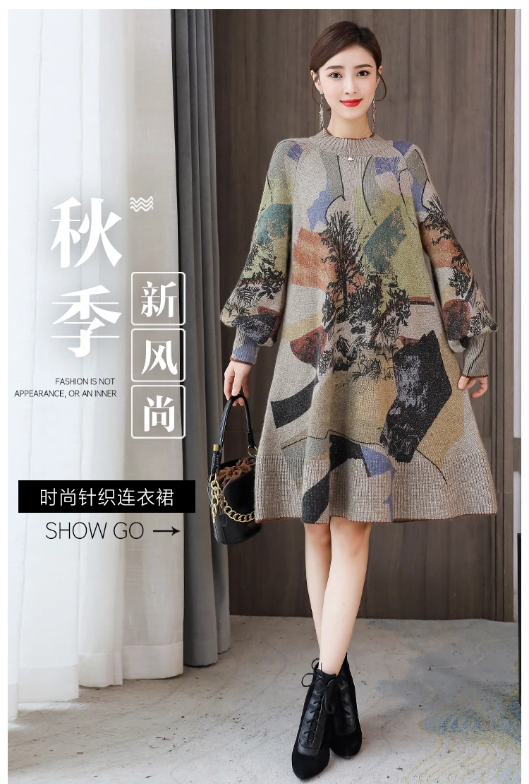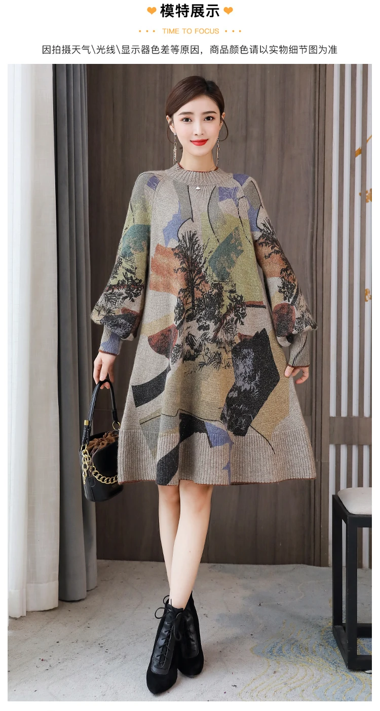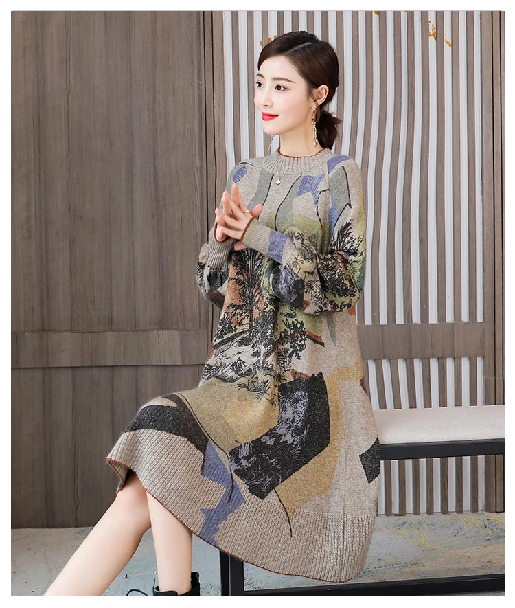 Women Korean Vintage Casual Midi Dress Autumn Winter Knitted Cotton Thick Warm Top Sweaters 2022 Elegant Bodycon Wool Sweaters