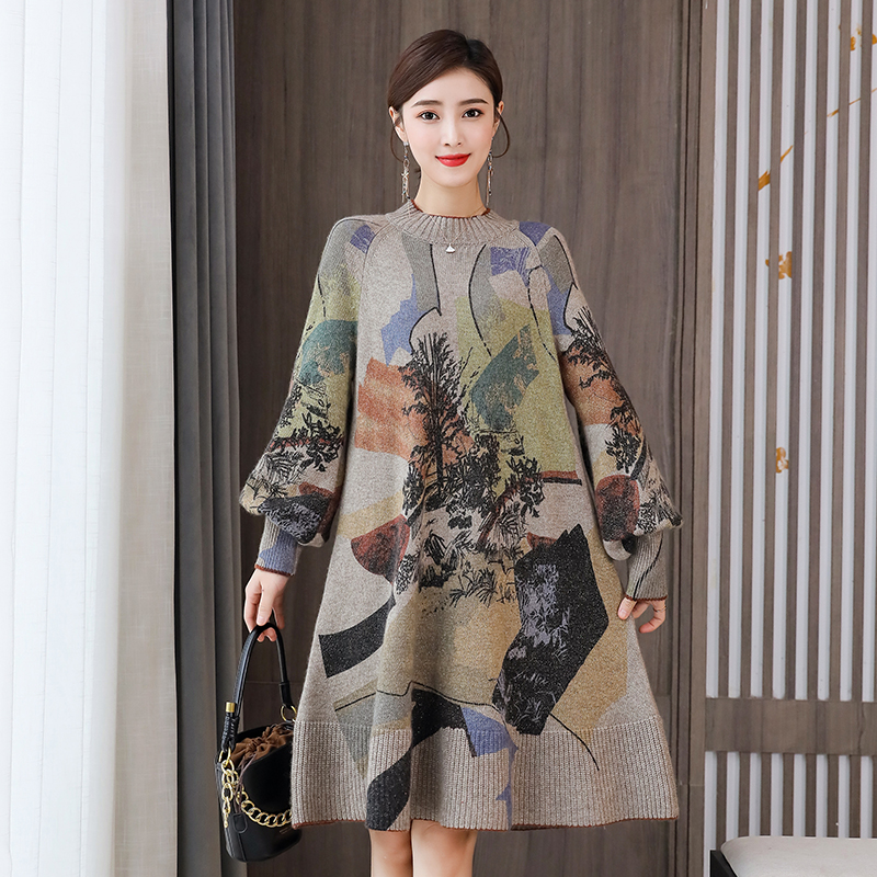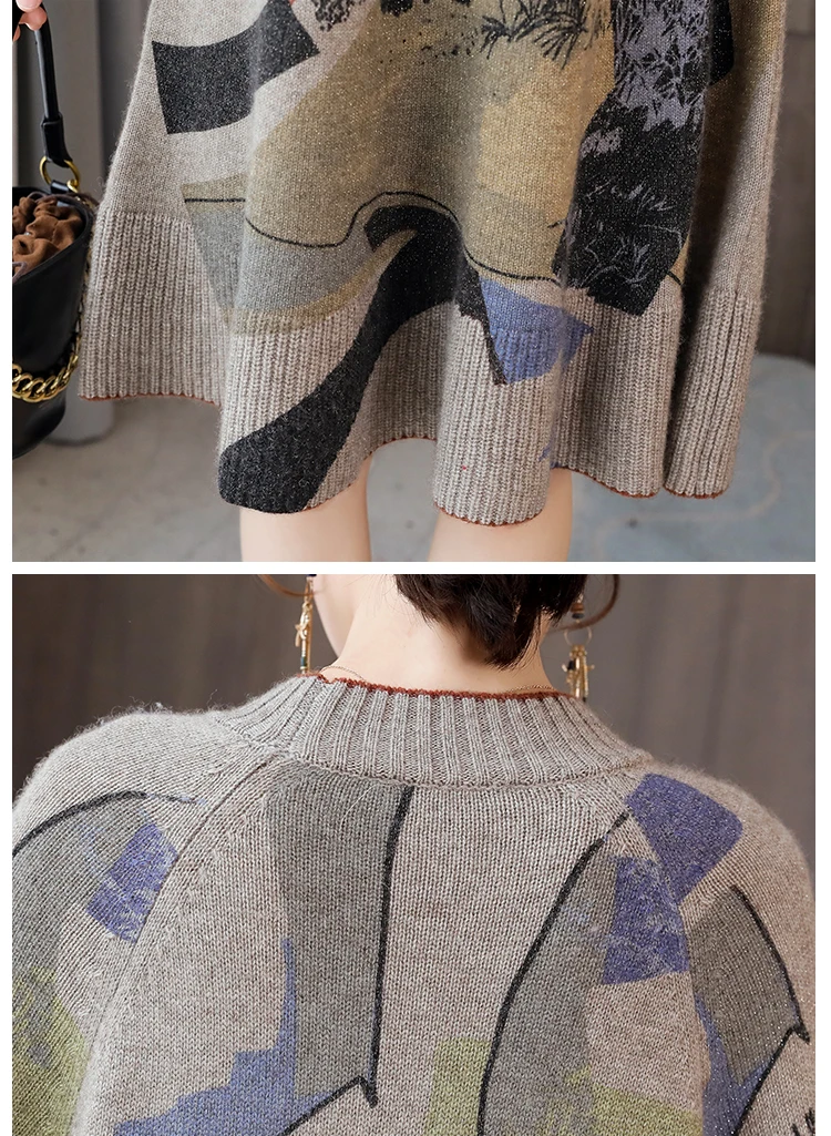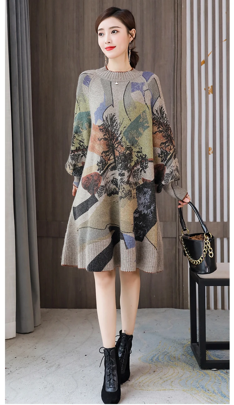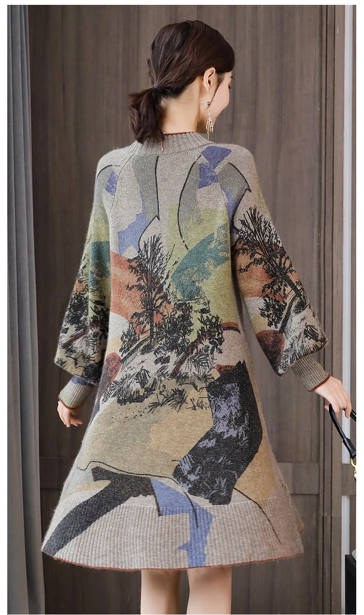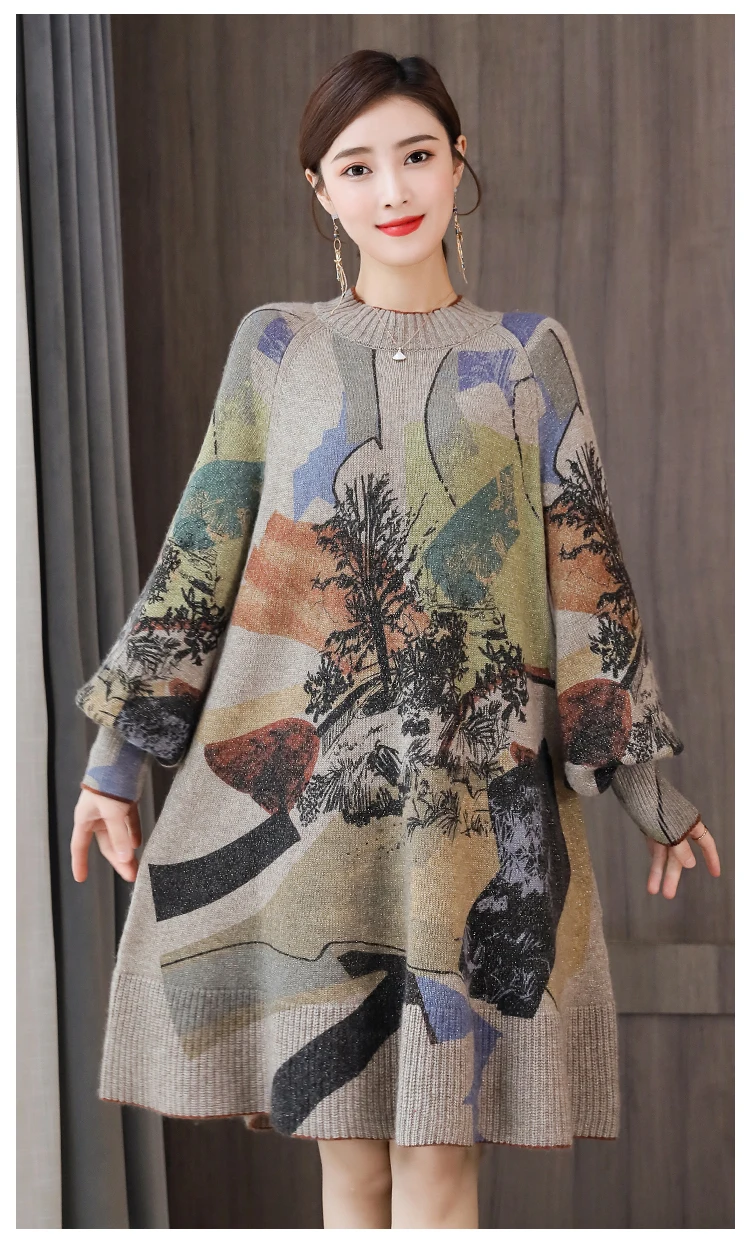 Women Korean Vintage Casual Midi Dress Autumn Winter Knitted Cotton Thick Warm Top Sweaters 2022 Elegant Bodycon Wool Sweaters