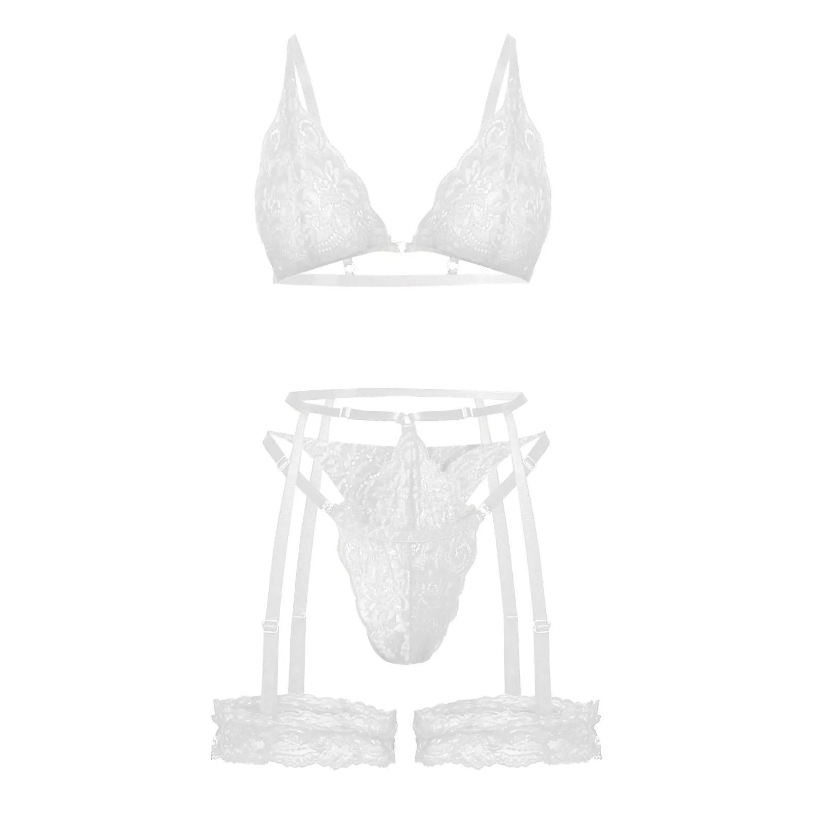 Women Lace Lingerie Set Sexy Three Pieces Underwear Push Up Bra Thong With Garter Sexy Lingerie Set Women luxury Exotic Clothing