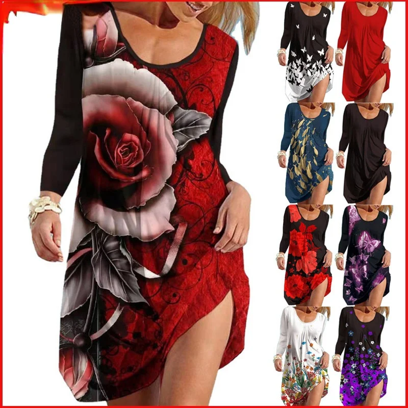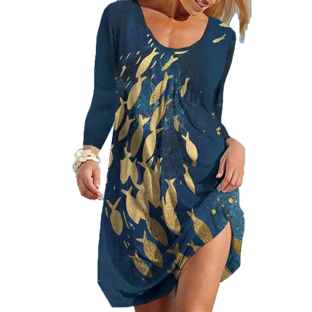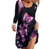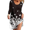 Women Long Sleeve Dress 2021 Autumn Fashion Casual O-neck Butterfly Printed Ladies Elegant Dress Vintage Loose Beach Dress