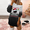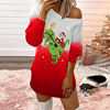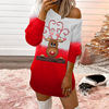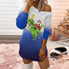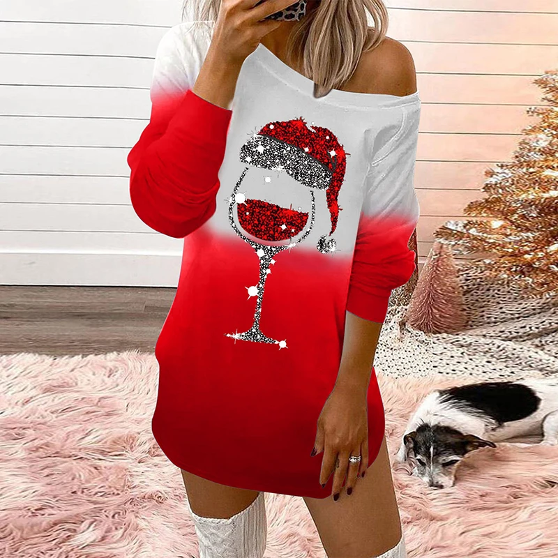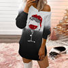 Women Loose Dress Autumn Fashion Slash-neck Long-sleeved Ladies Party Dresses Vintage Christmas Printed Casual Female Mini Dress