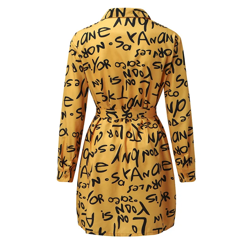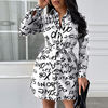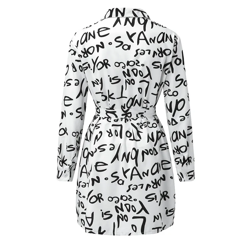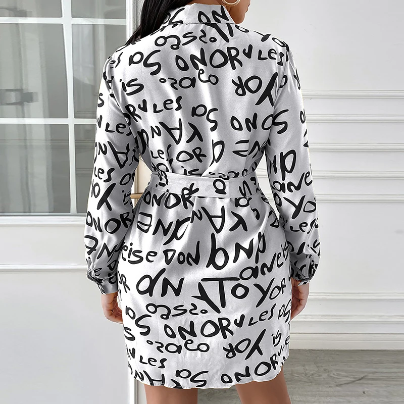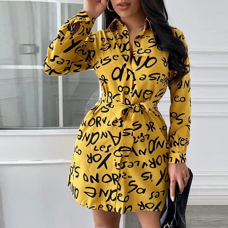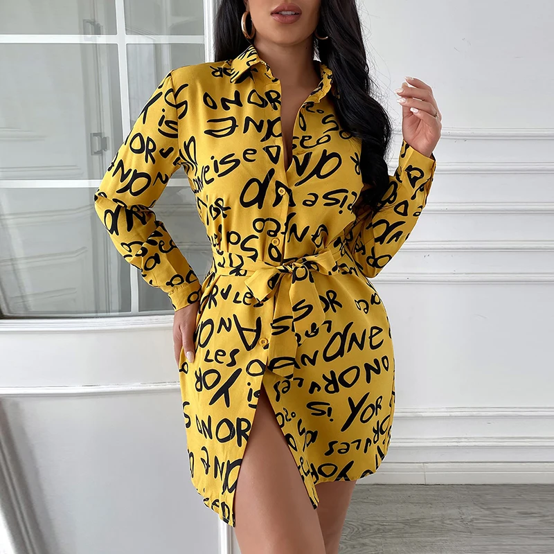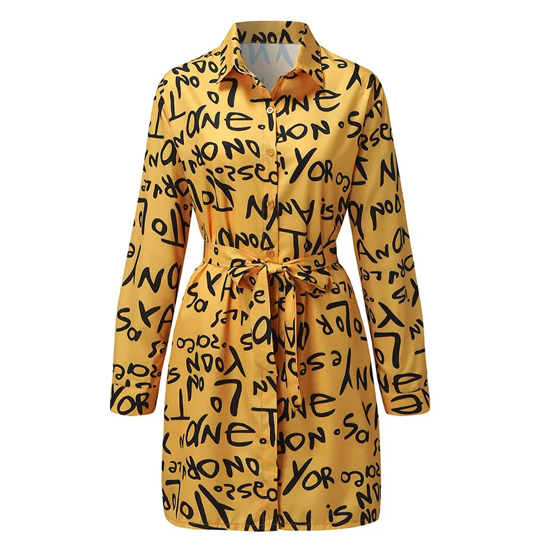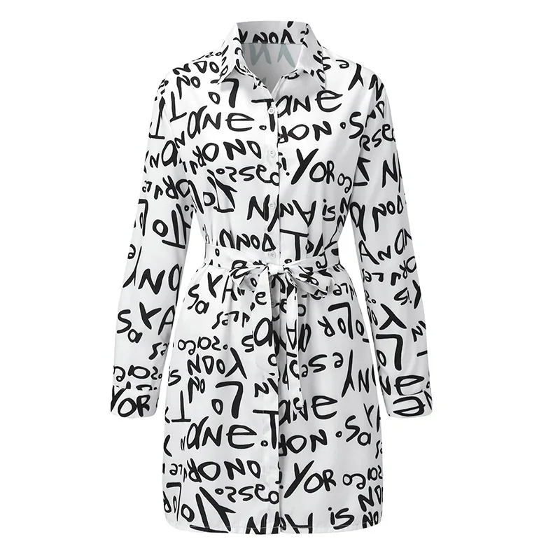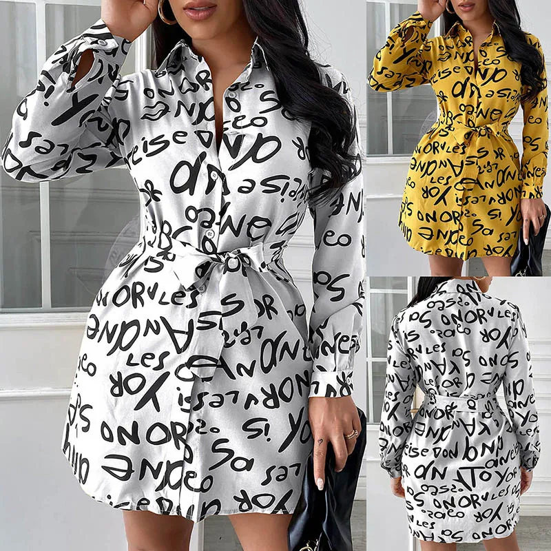 Women Loose Dress New Fashion Turn-down Collar Single Breasted Lace-up Shirt Dress Vintage Solid Long-sleeved Lady Party Dresses