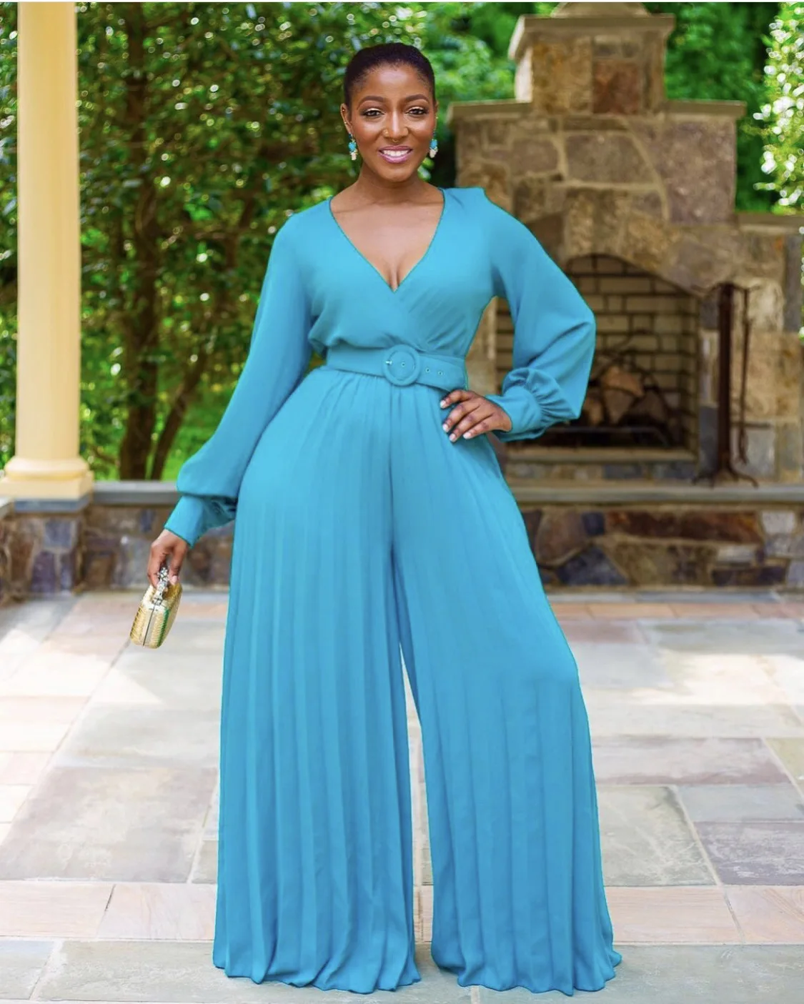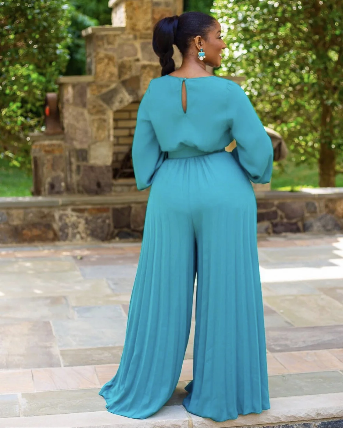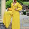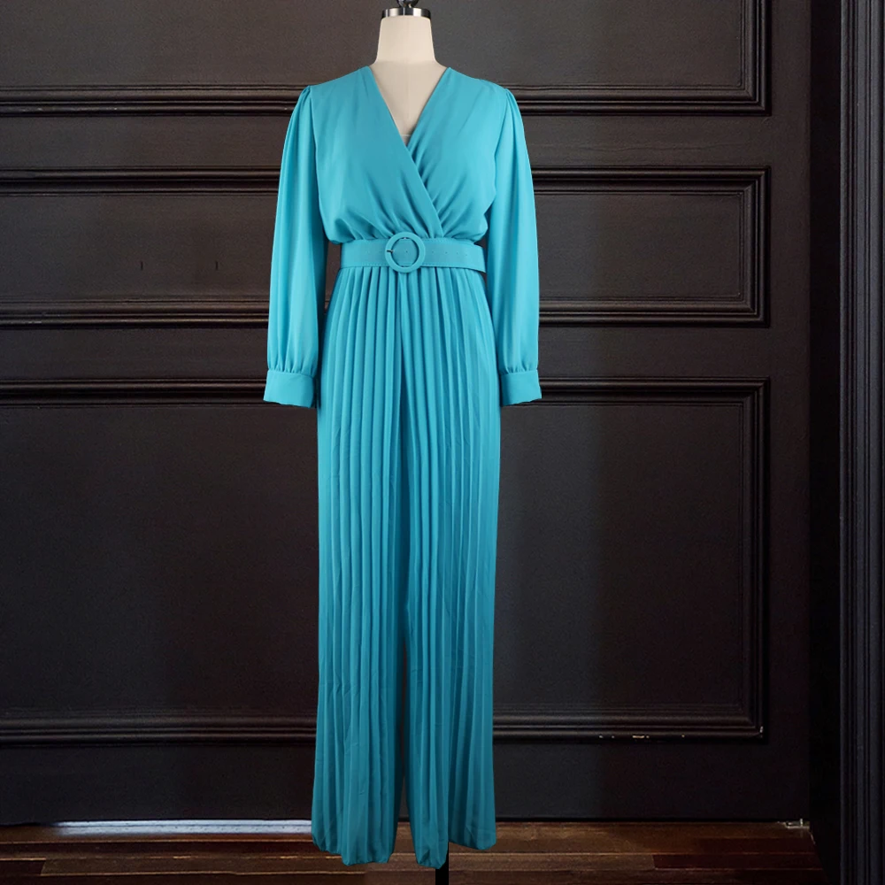 Women Loose Jumpsuit Long Sleeve V Neck Wide Leg Pants New Elegant Office Ladies Work Wear Hight Waist Spring Summer Female 2021