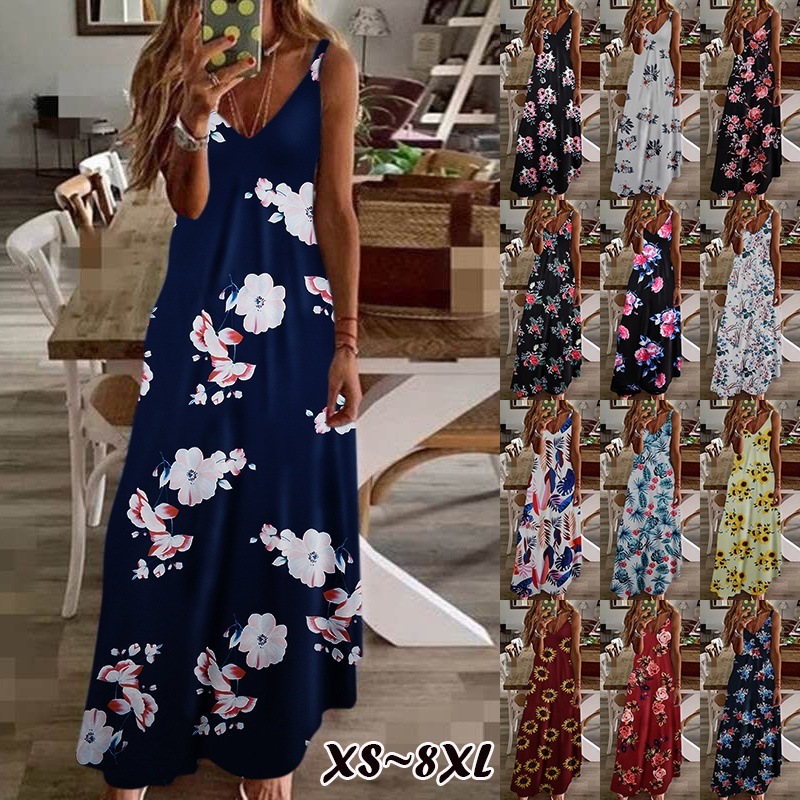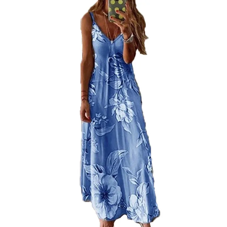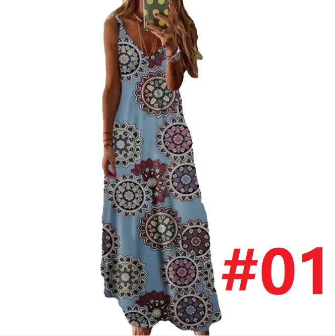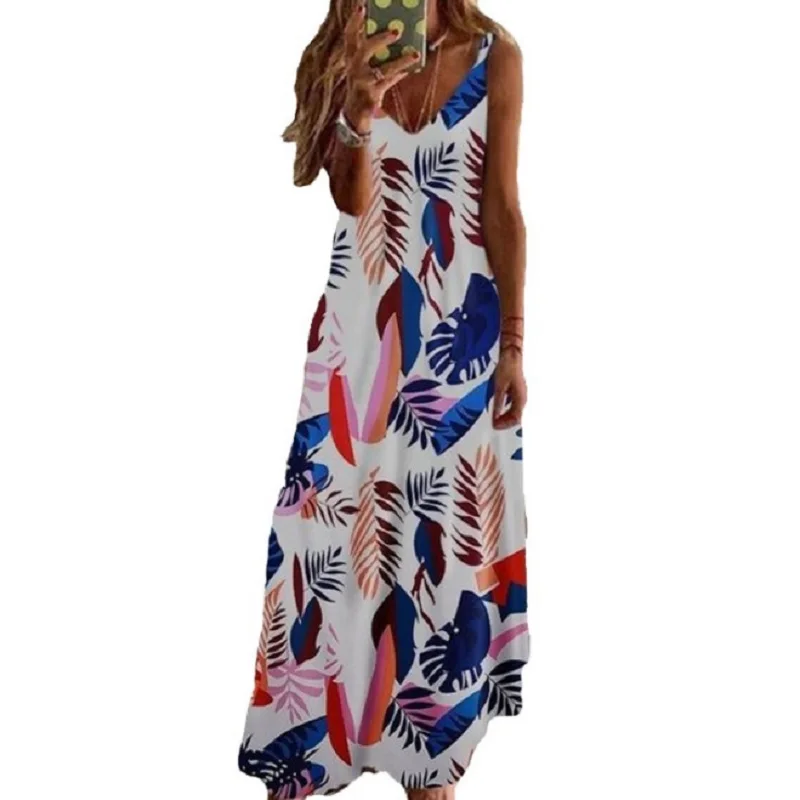 Women Maxi Dress Summer Casual Sexy Boho Printed Long Dress Sleeveless V-Neck Women Clothes 2021 Streetwear Dress Loose Vestidos