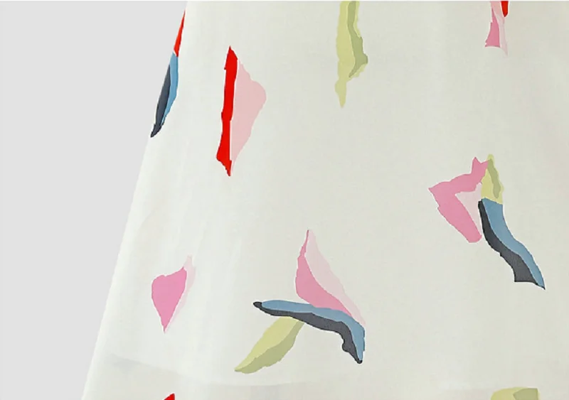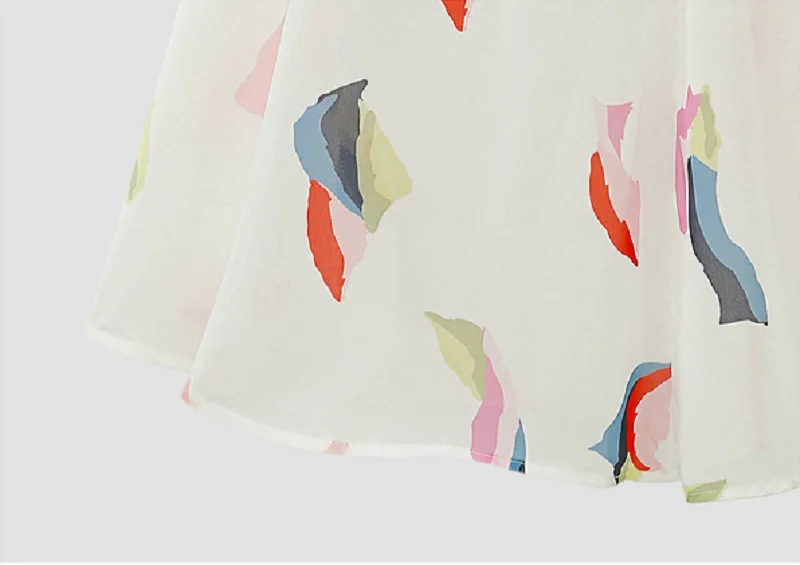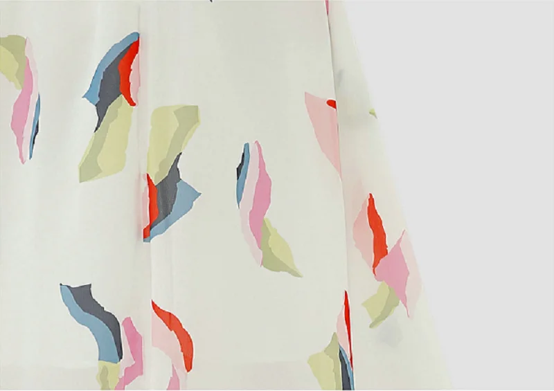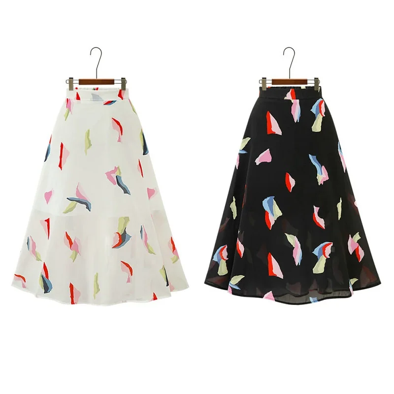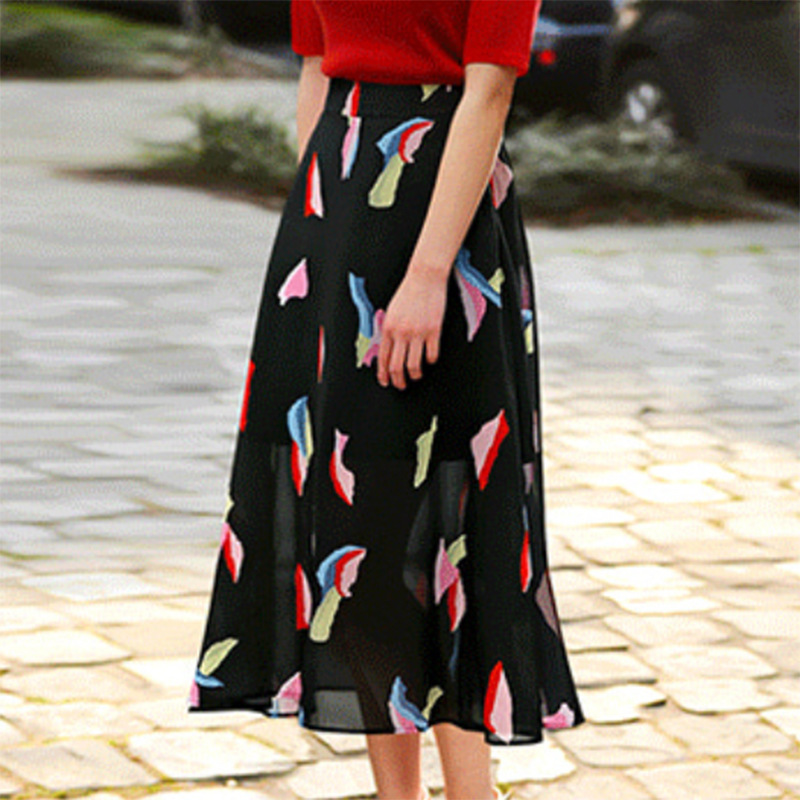 Women New Summer European American Elegant Painting Floral Gauze Chiffon A-line Mid-Length Big Swing Skirt Female Clothing