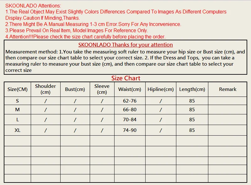 SizeWaistSkirt length