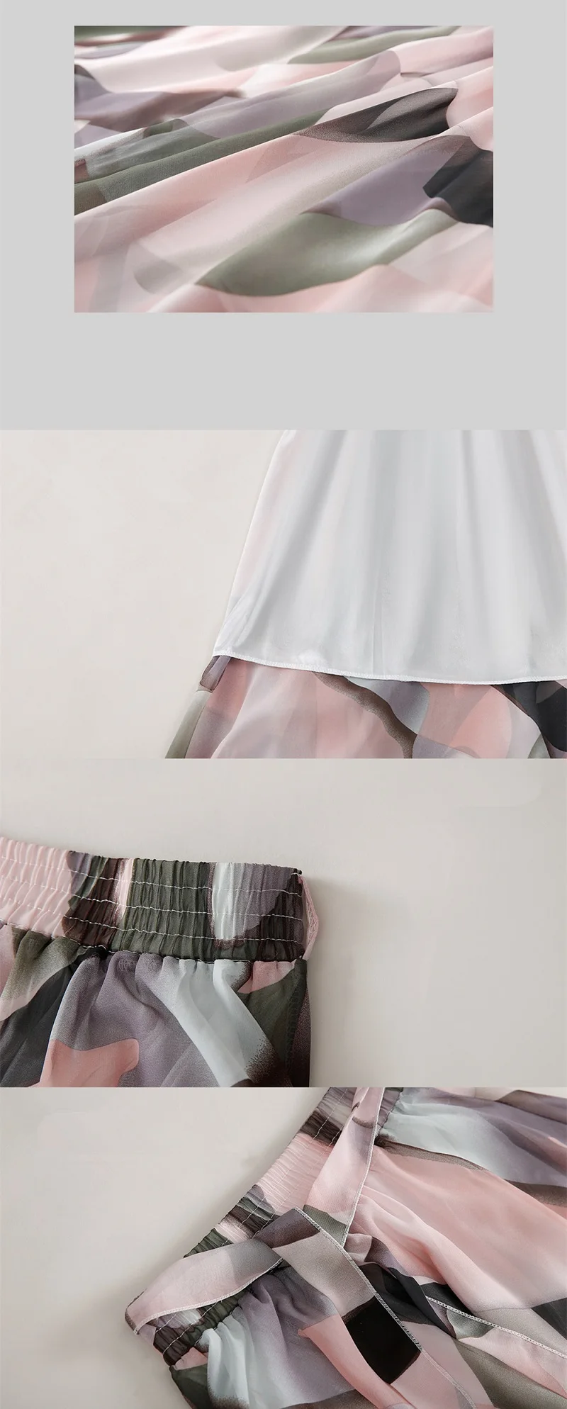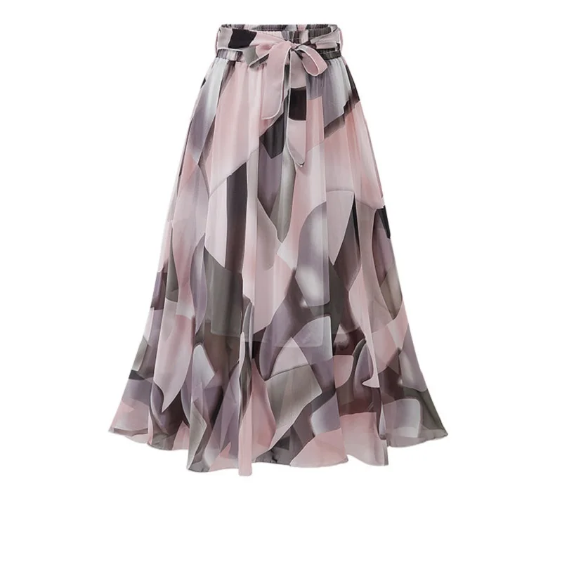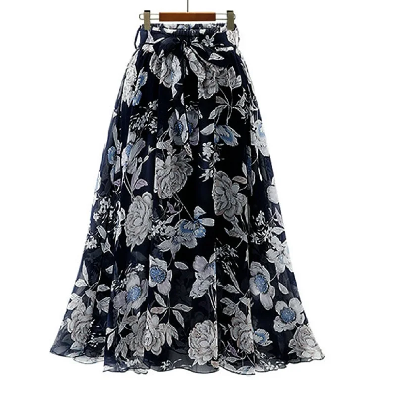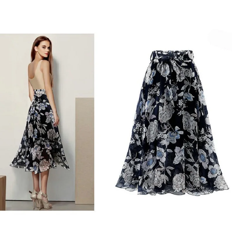 Women New Summer European American Floral Chiffon Medium Length Printed Large Pendulum Bohemian Travel Holiday Long Skirt Female