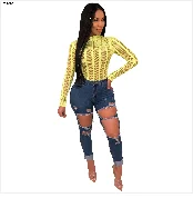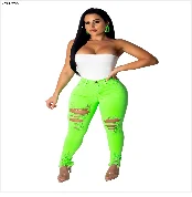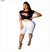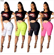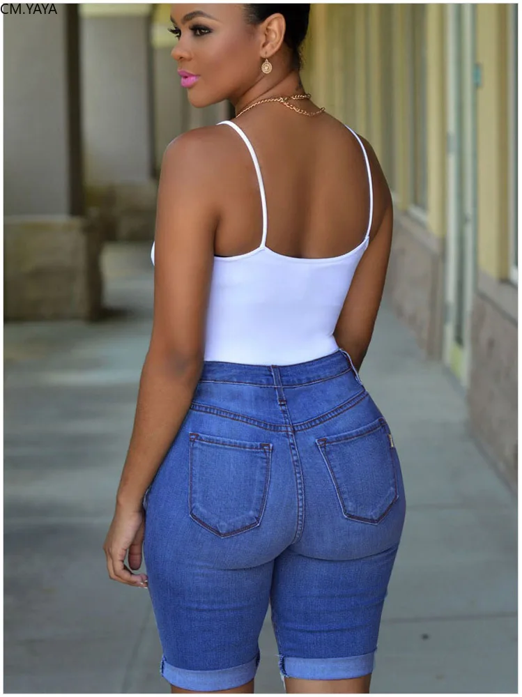 Women New Winter Hole Ripped High Waist Casual Zipper Fly Knee Length Jeans High Streetwear Denim Shorts Fashion Pants