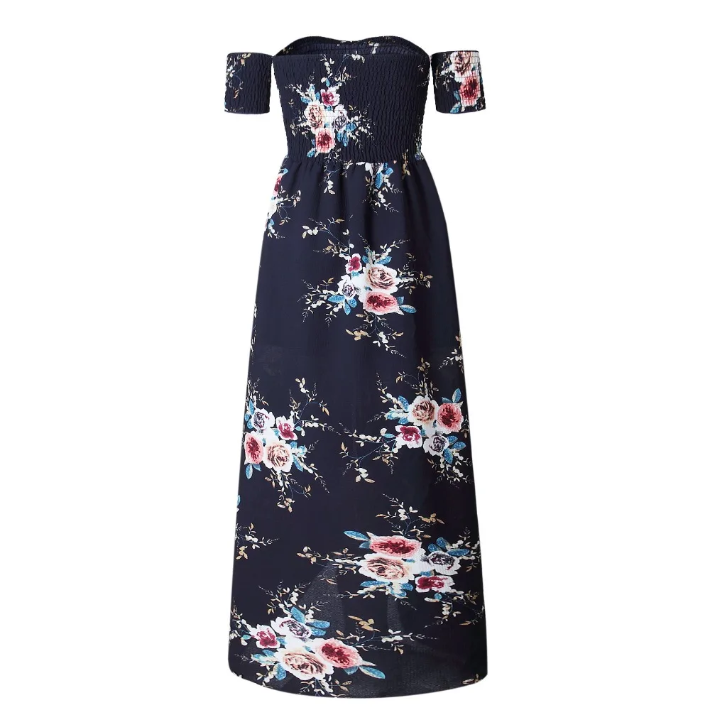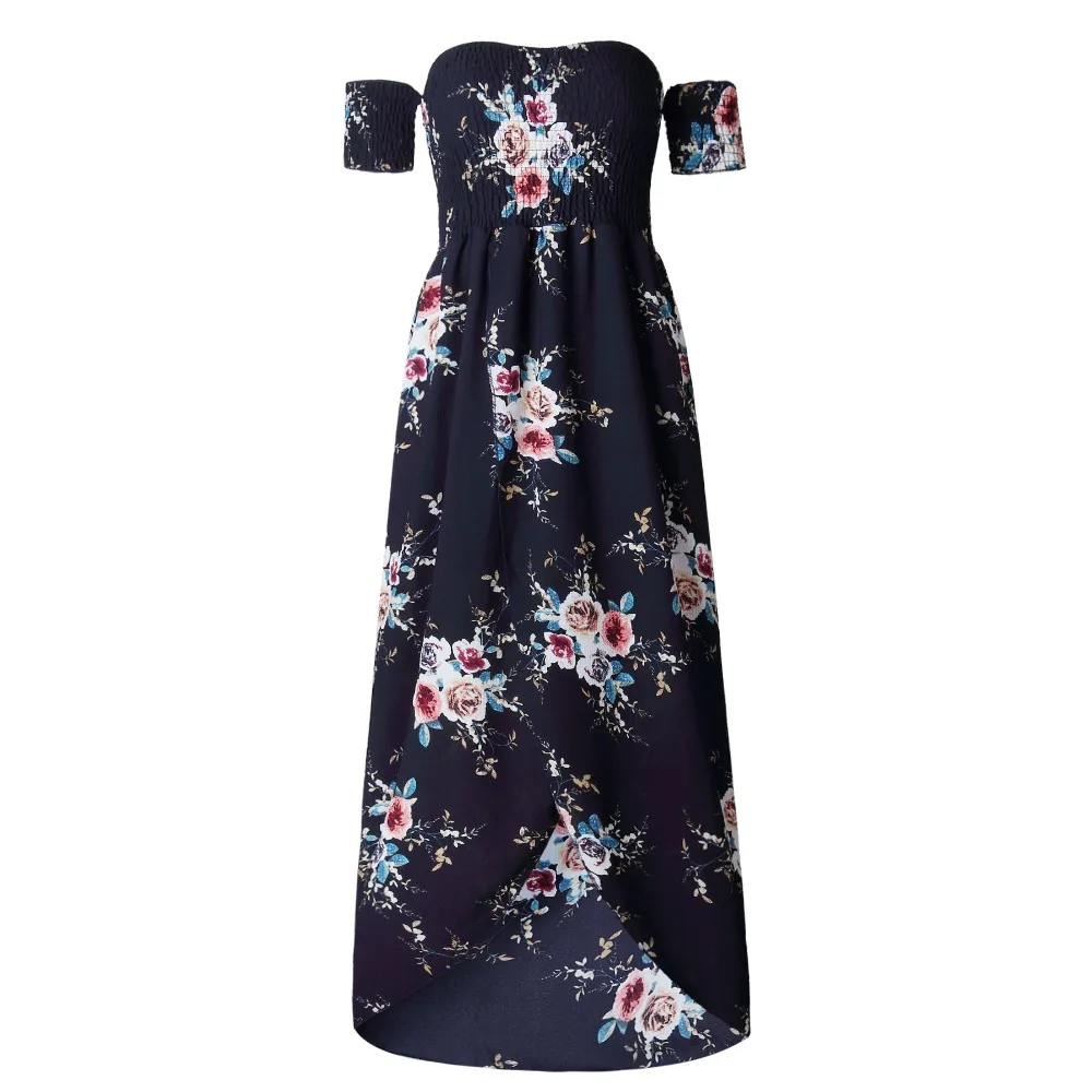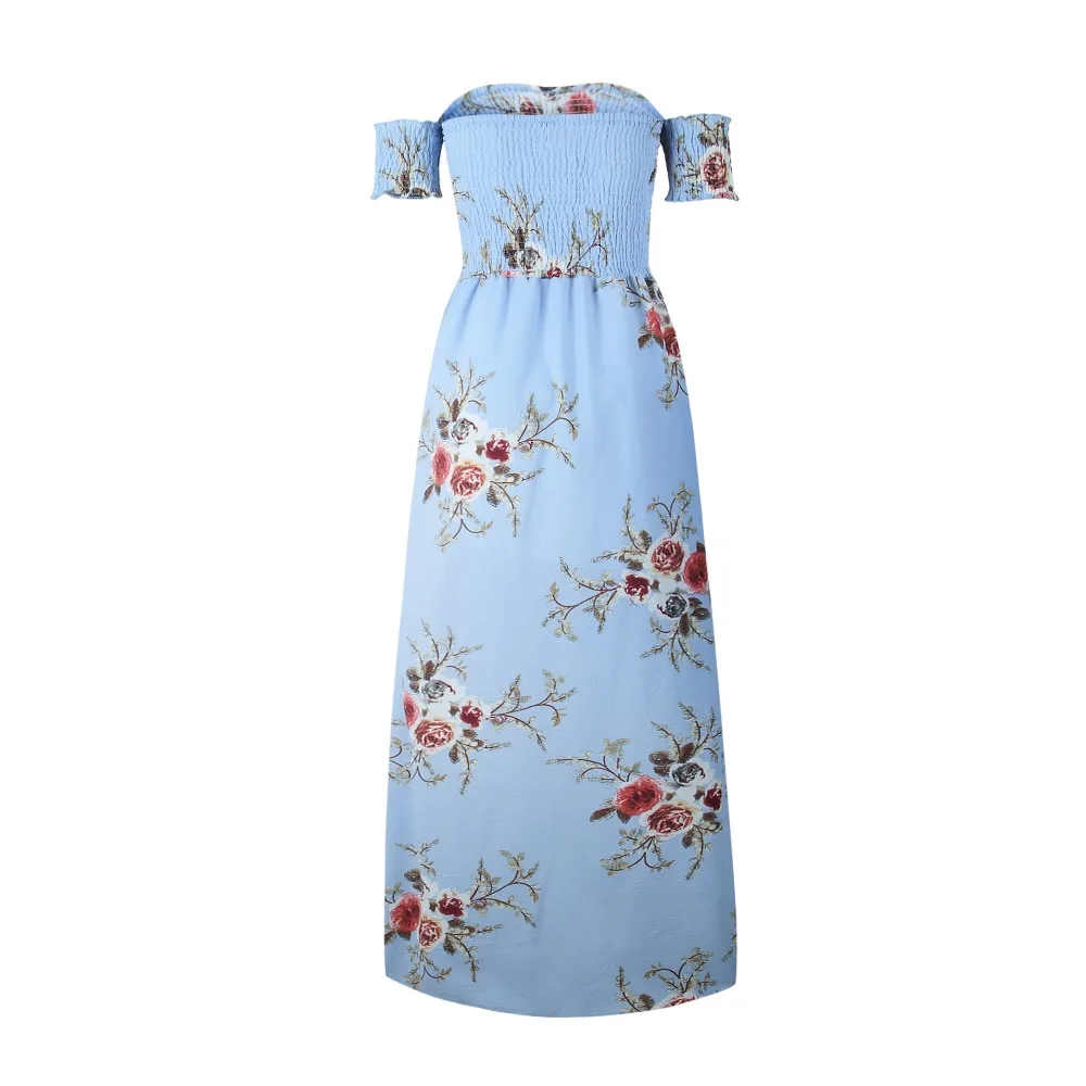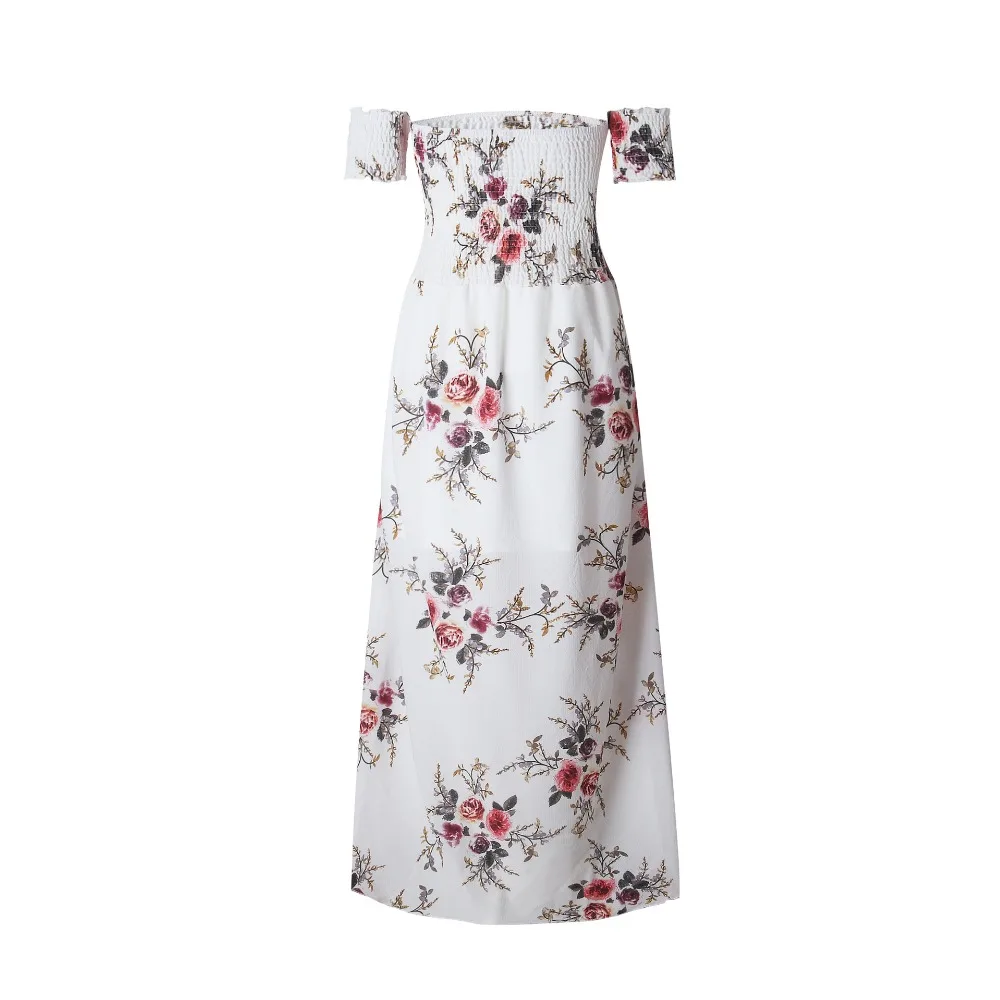 Women Off Shoulder Floral Print Boho Dress Women Beach Summer Dresses Ladies Strapless Long Maxi Dress Vestidos Female XS-5XL