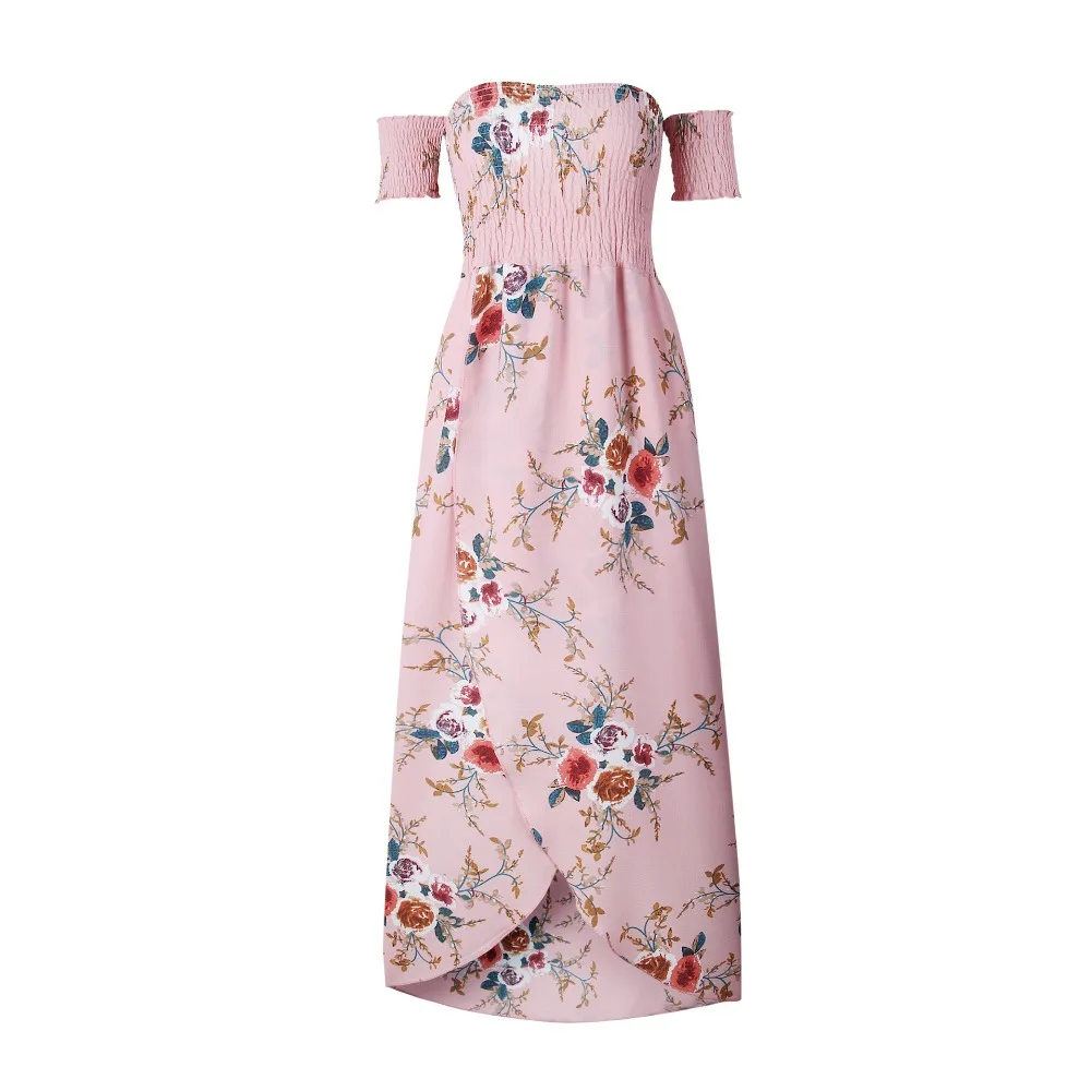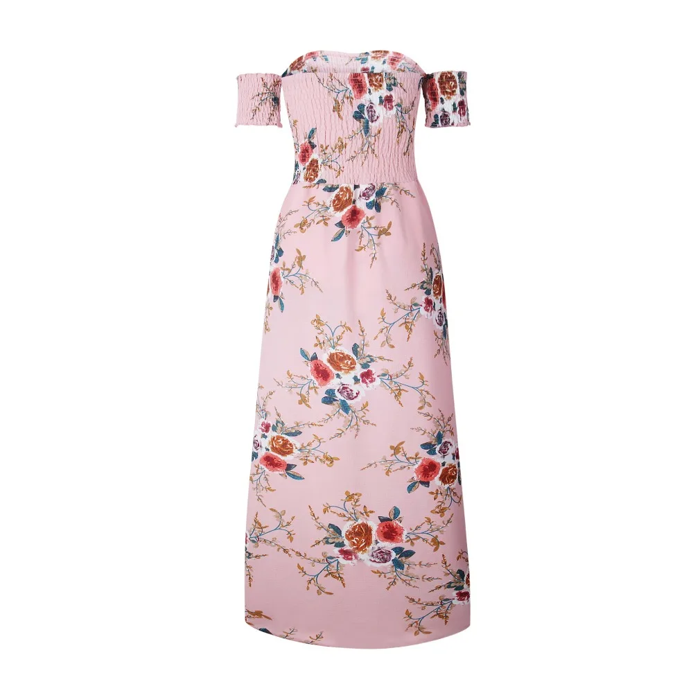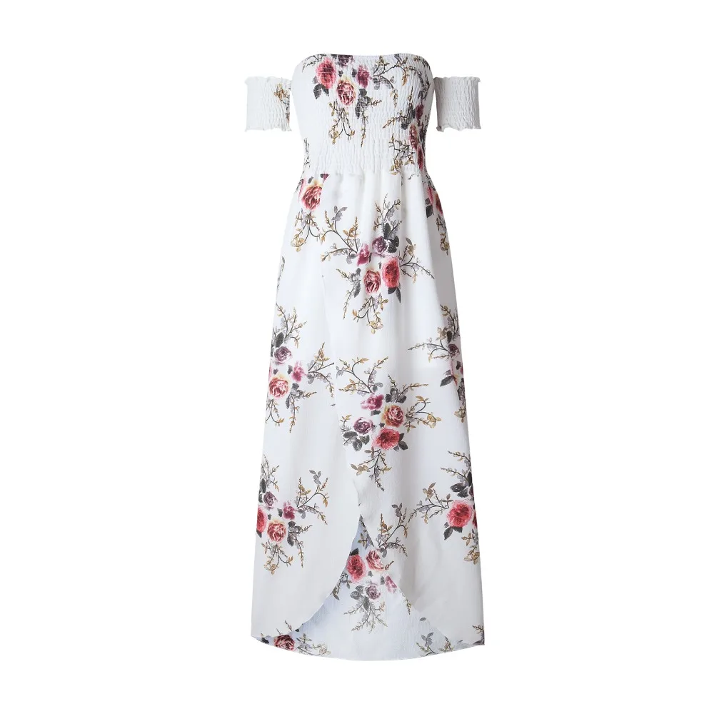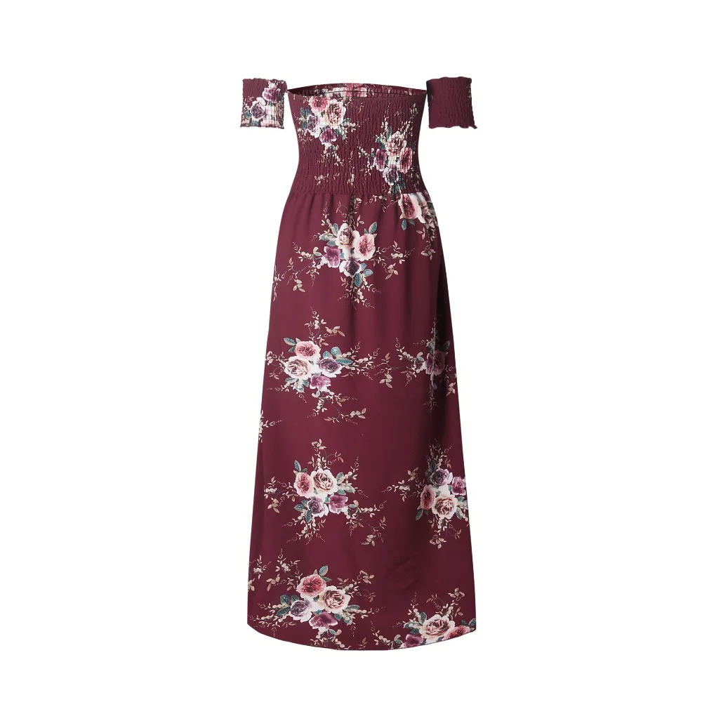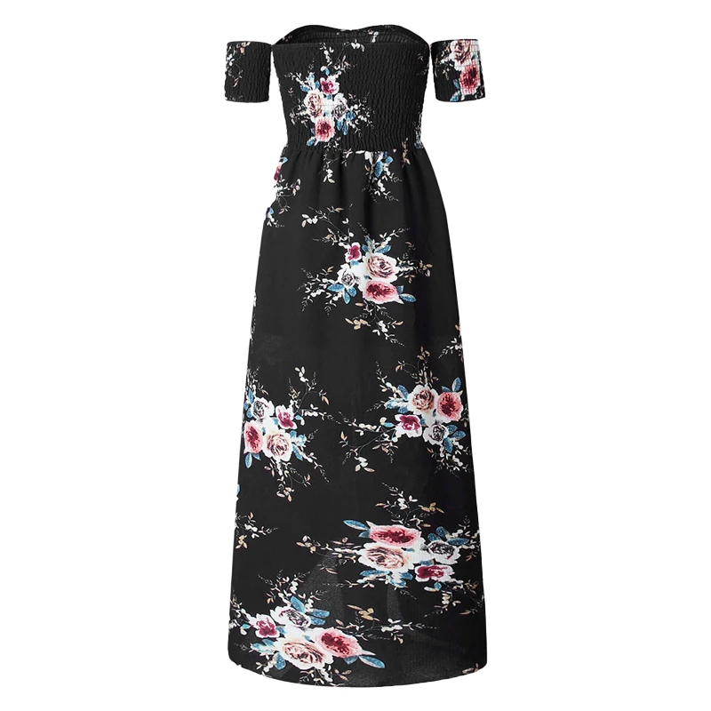 Women Off Shoulder Floral Print Boho Dress Women Beach Summer Dresses Ladies Strapless Long Maxi Dress Vestidos Female XS-5XL