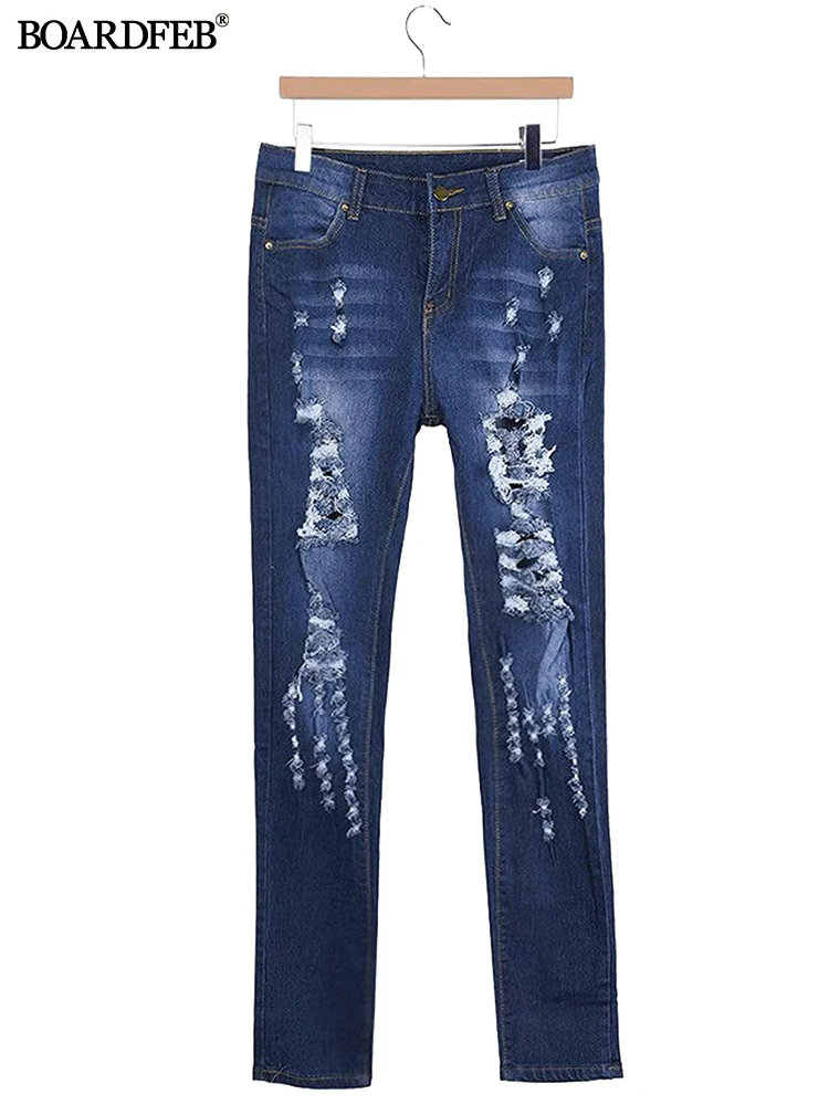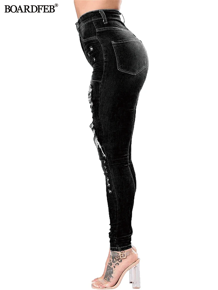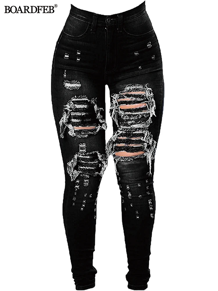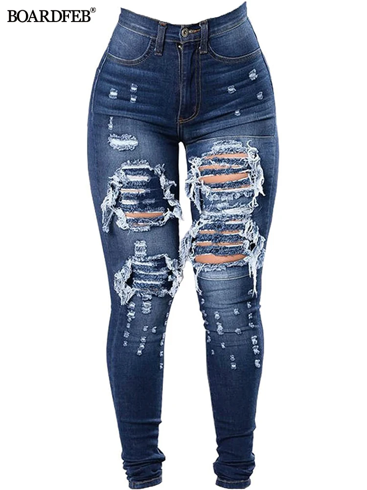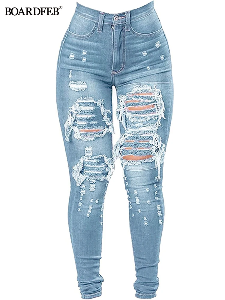 Women Ripped Jeans High Waist Stretch Skinny Slim Fit Female Pencil Y2K Pants Destroyed Denim Pants Ladies Casual Hole Trousers