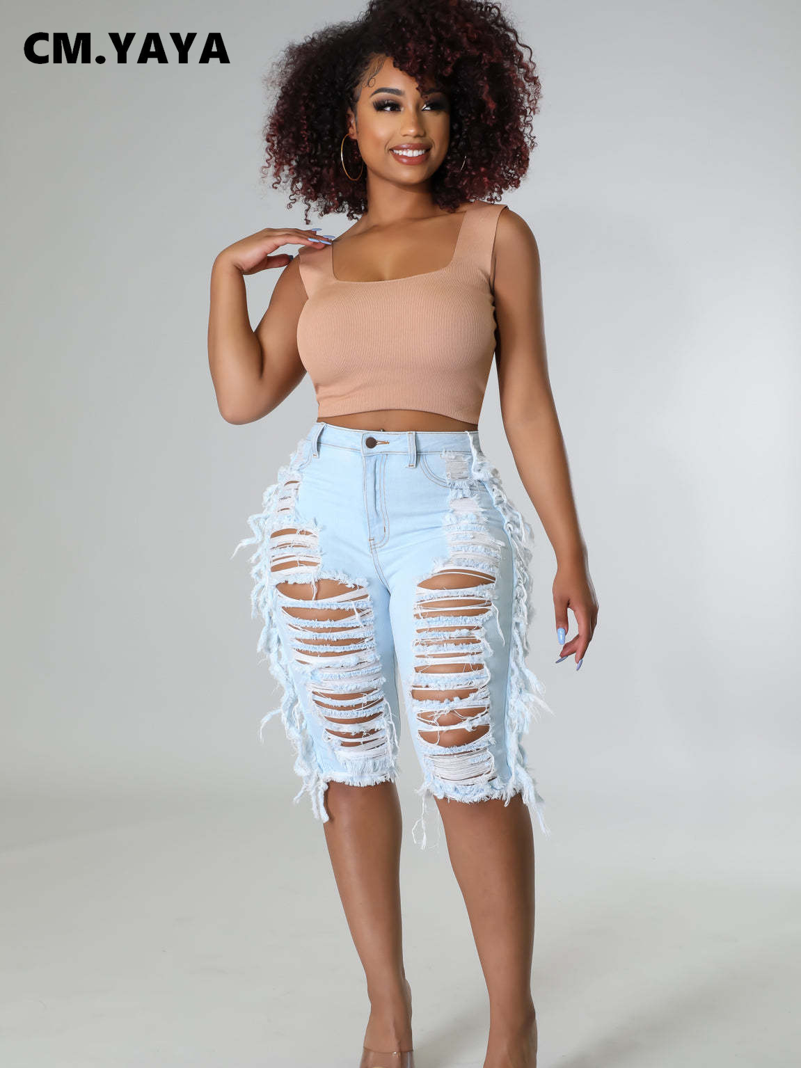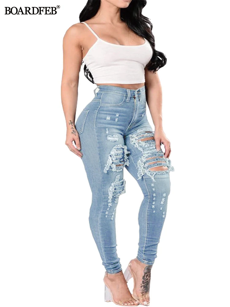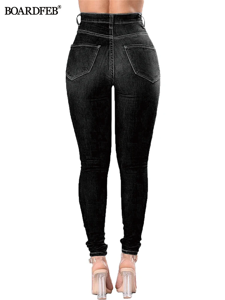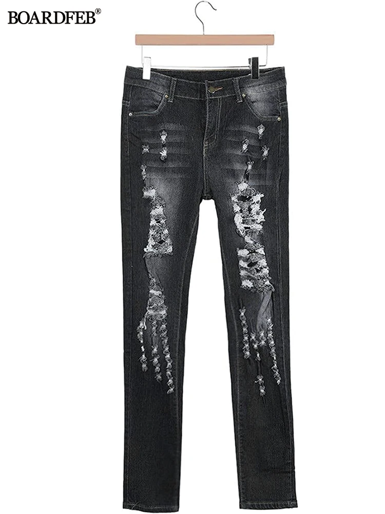 Women Ripped Jeans High Waist Stretch Skinny Slim Fit Female Pencil Y2K Pants Destroyed Denim Pants Ladies Casual Hole Trousers