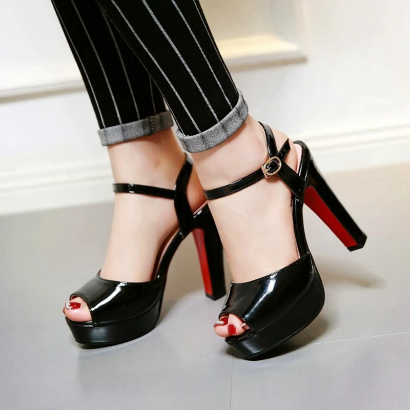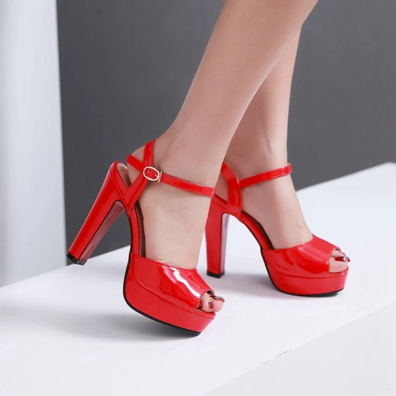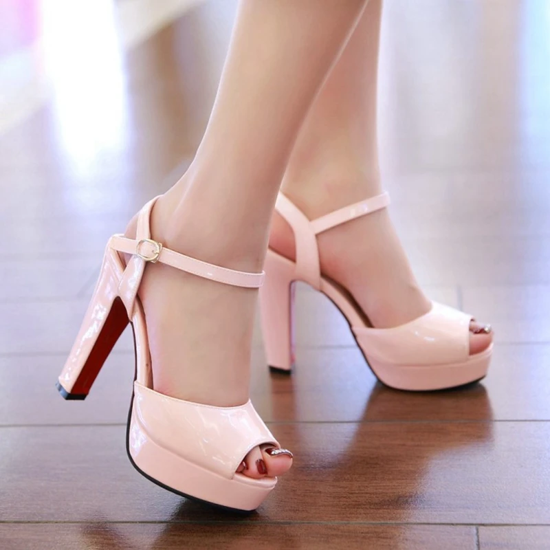 Women Sandals Summer Patent leather 12CM High Heel platform Fish Mouth toe Sexy Party Wedding Shoes pumps Sandalias Mujer 18-1