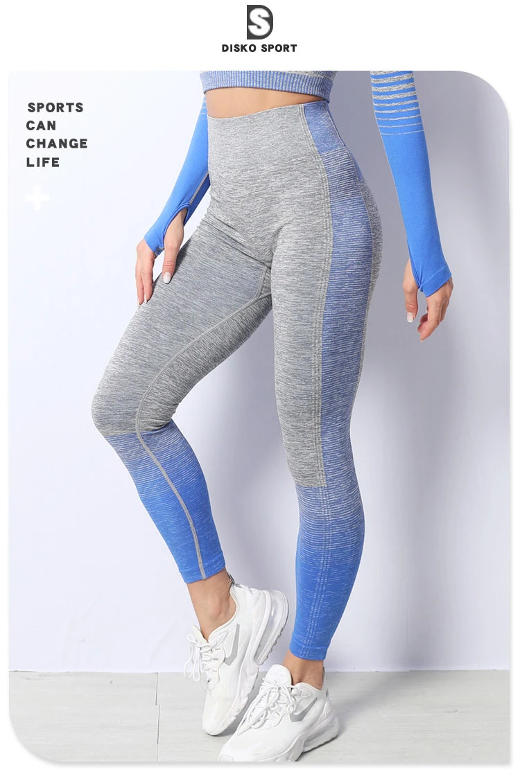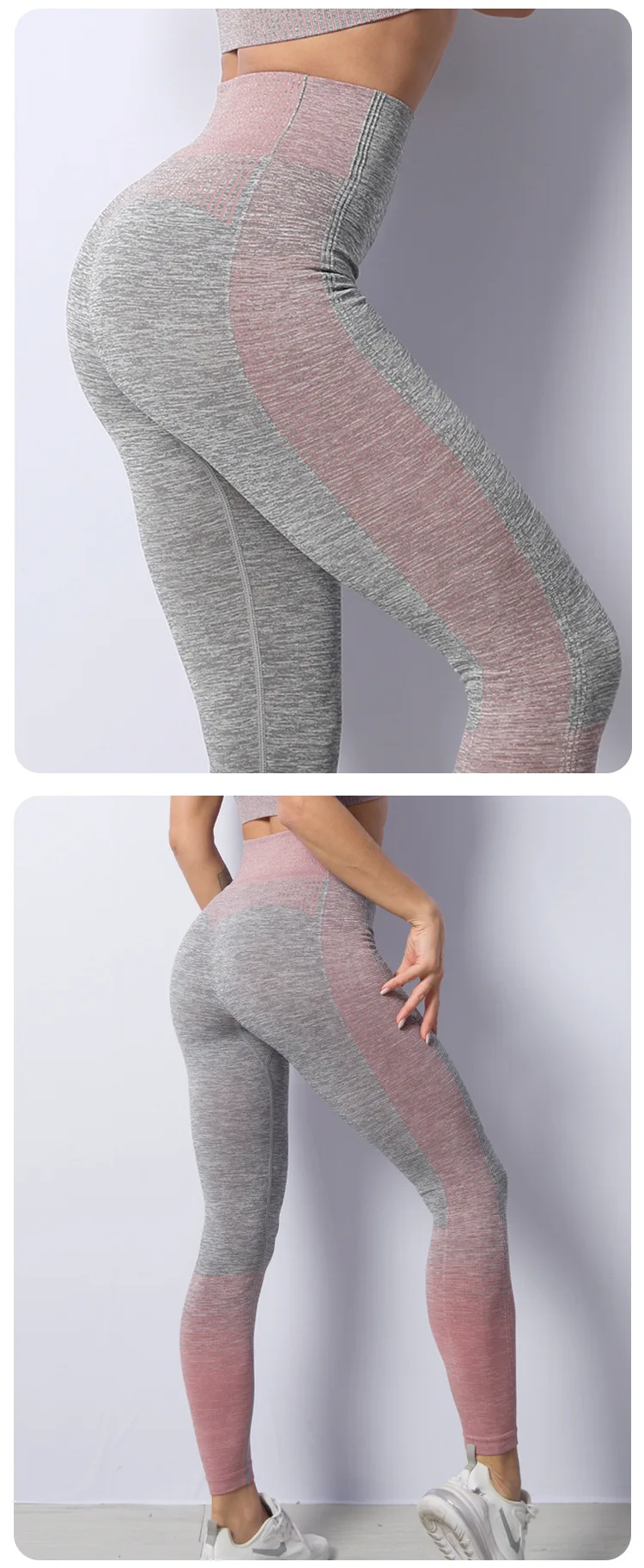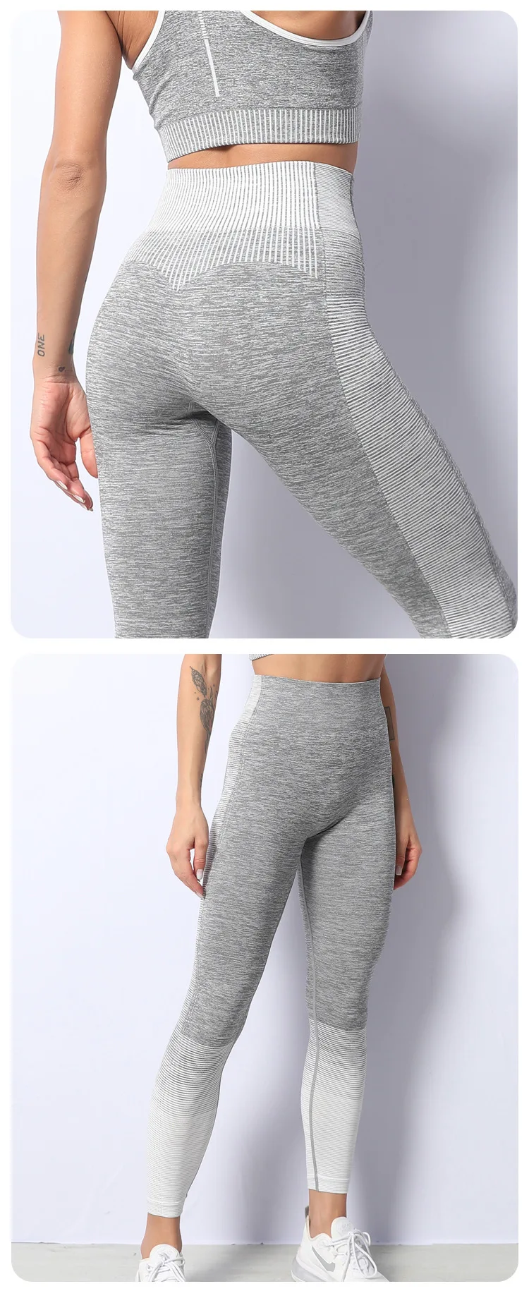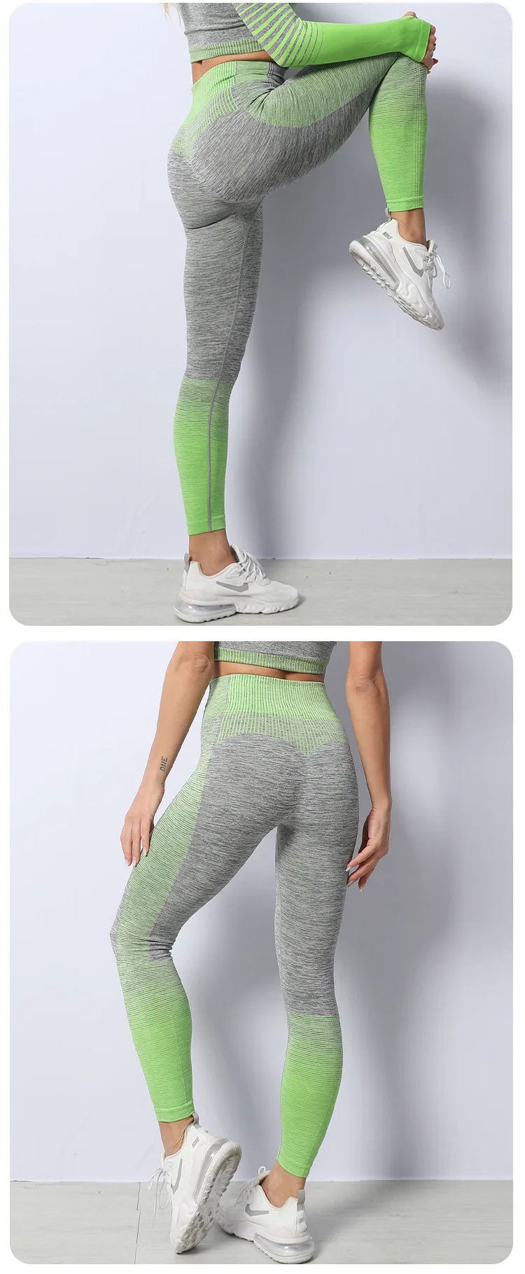 Women Seamless Leggings High Waist Stretchy Yoga Pants Fitness Leggings Gradient Color Stitching Gym Work Out Tights